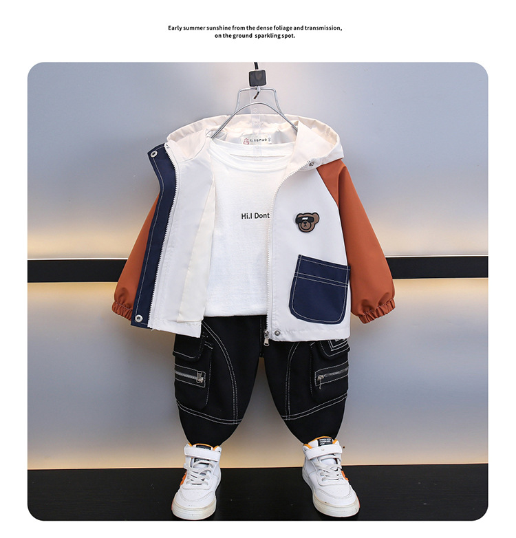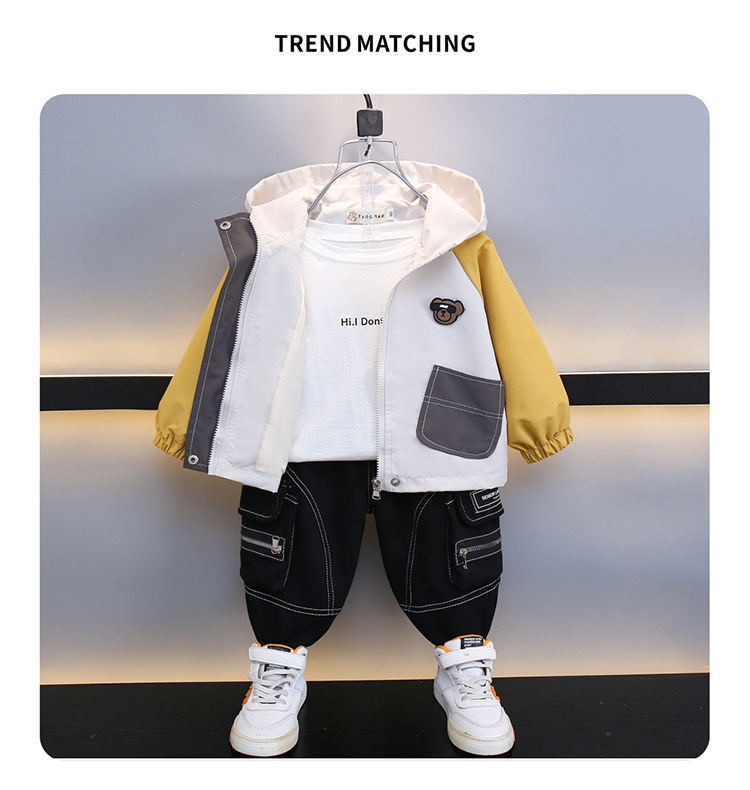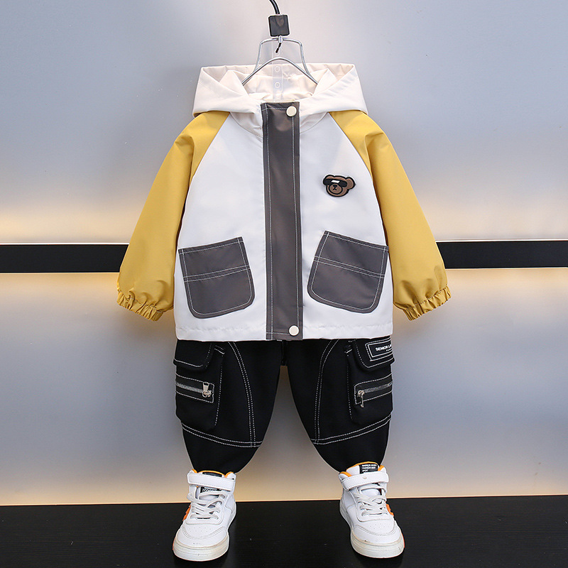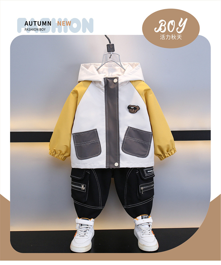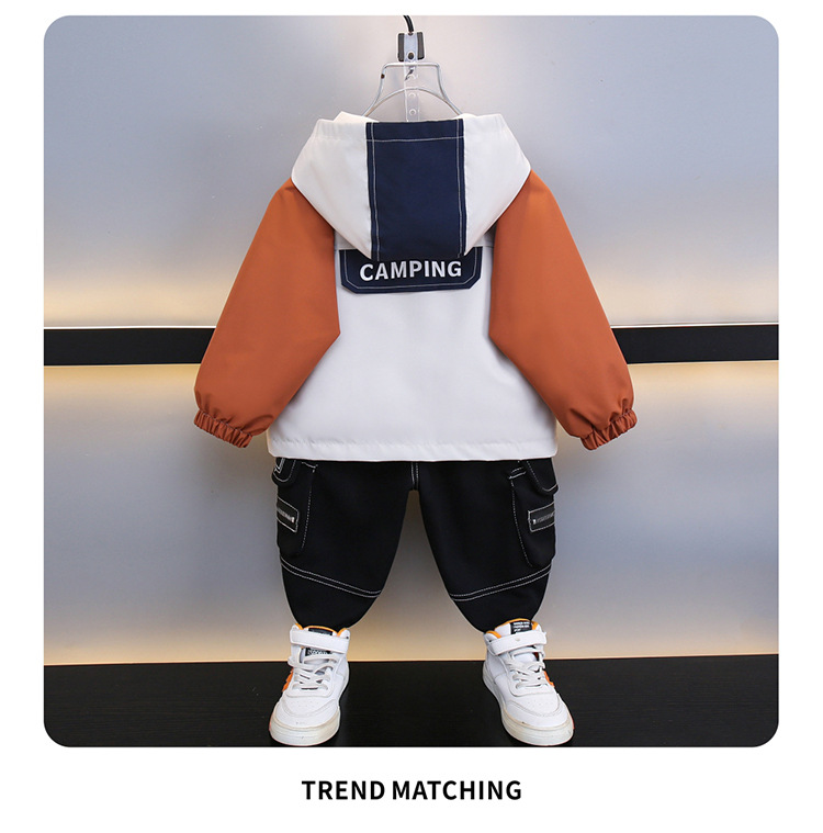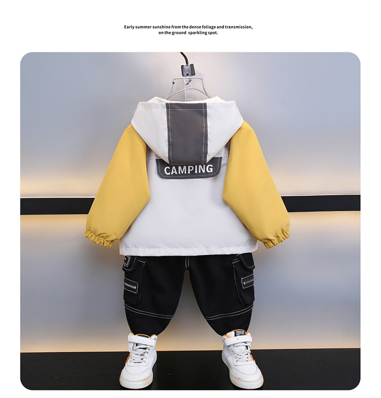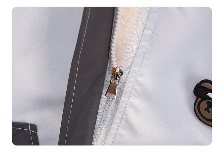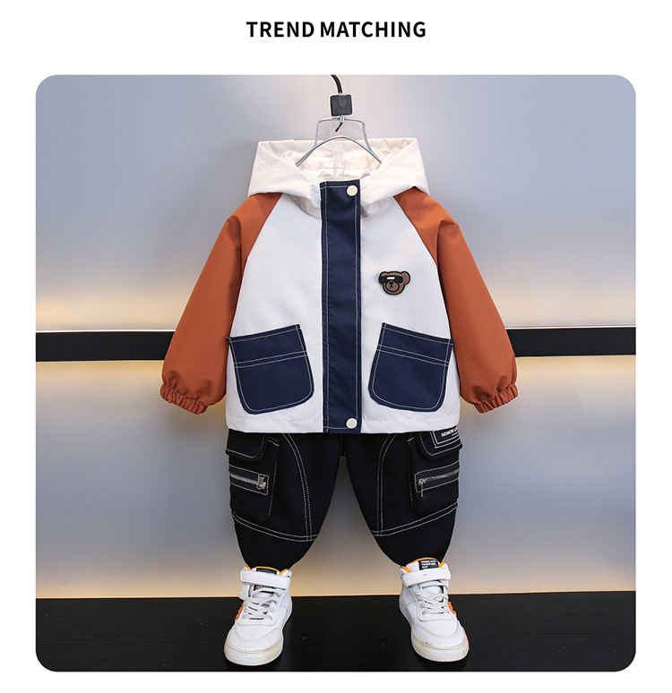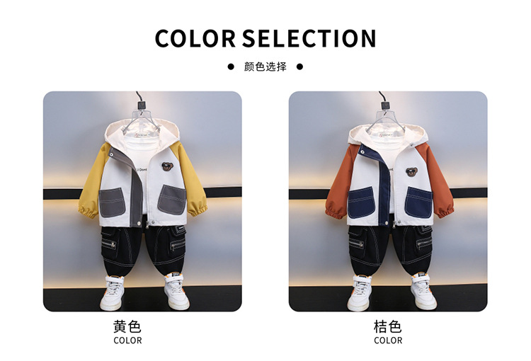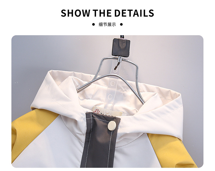7708 남학생 하이 칼라 재킷 코트 콘트라스트 컬러 아웃팅 트렌치 코트 2025 새로운 아동복 중소 어린이 후드