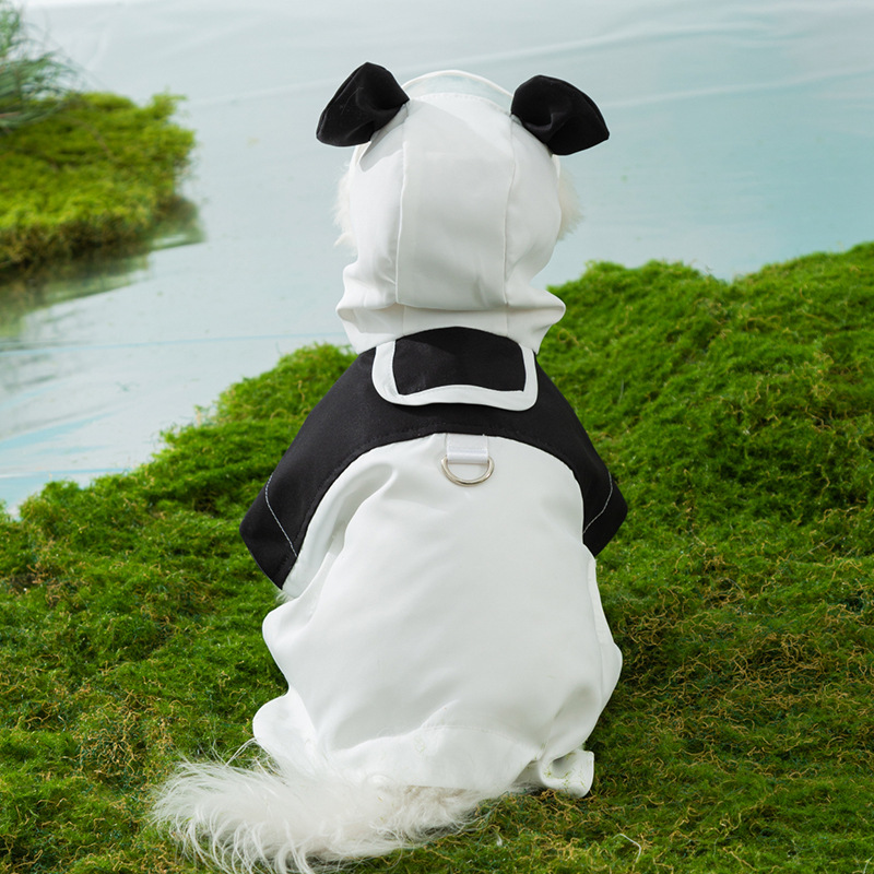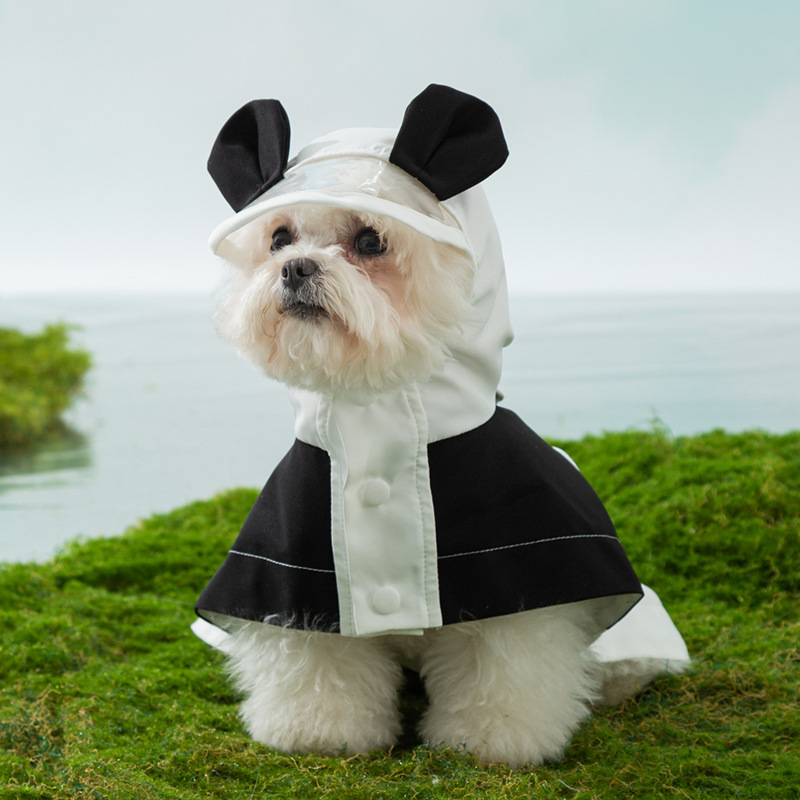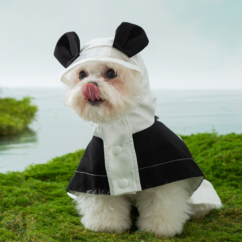 개 두 다리 작은 팬더 귀여운 비옷 소형 및 중형 개 방수 판초 비오는 날 방수 애완 동물 개 옷