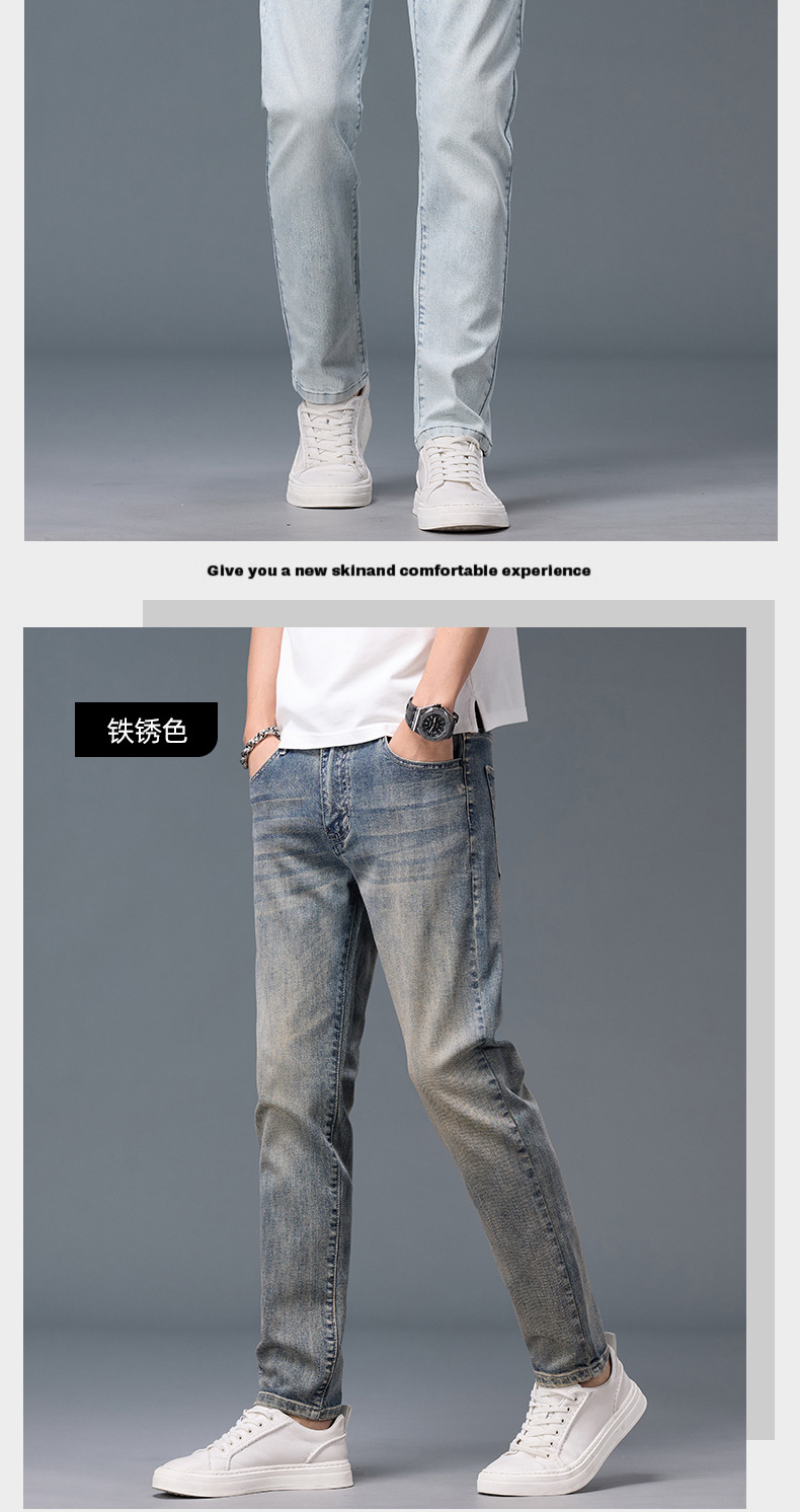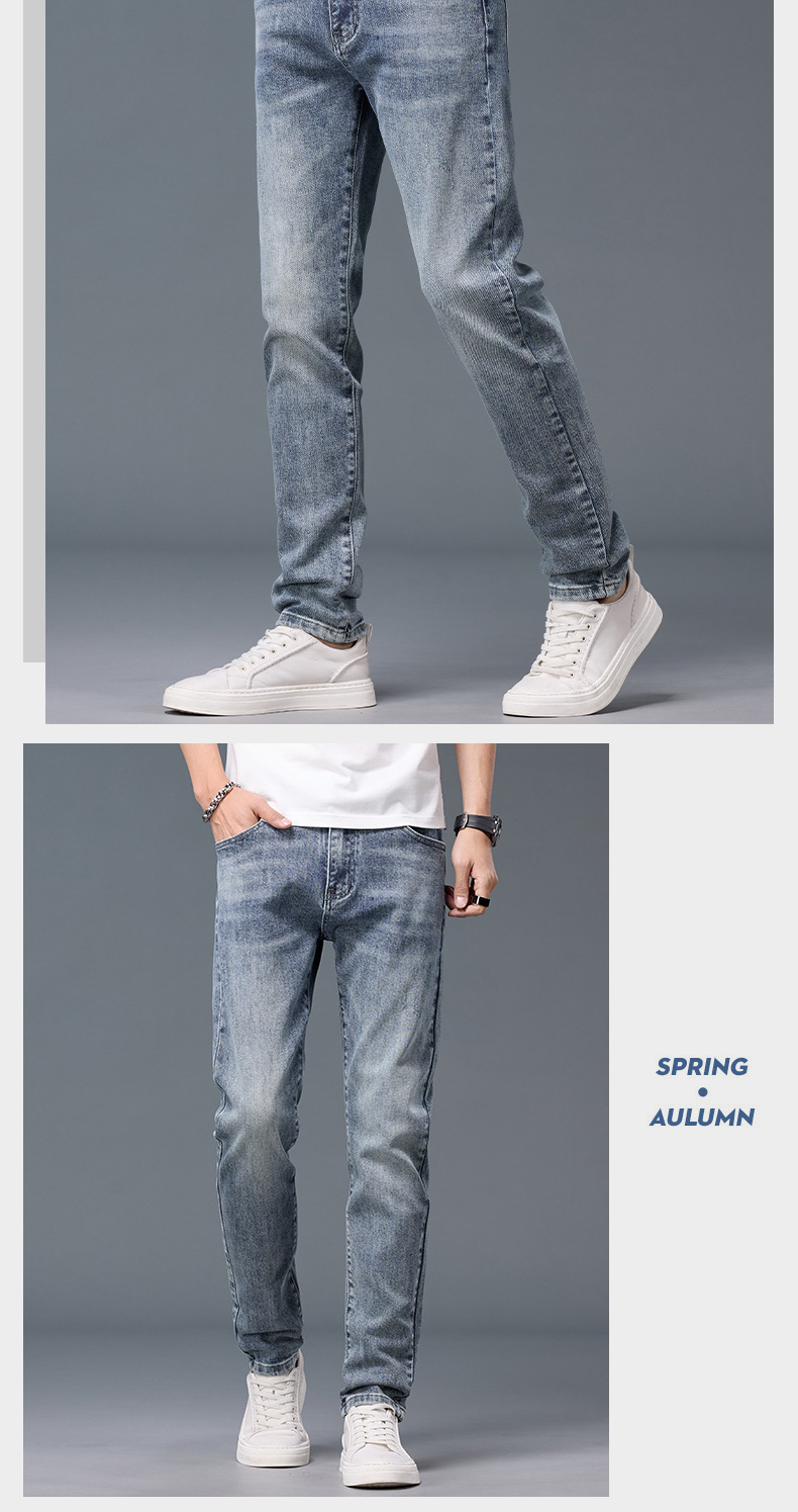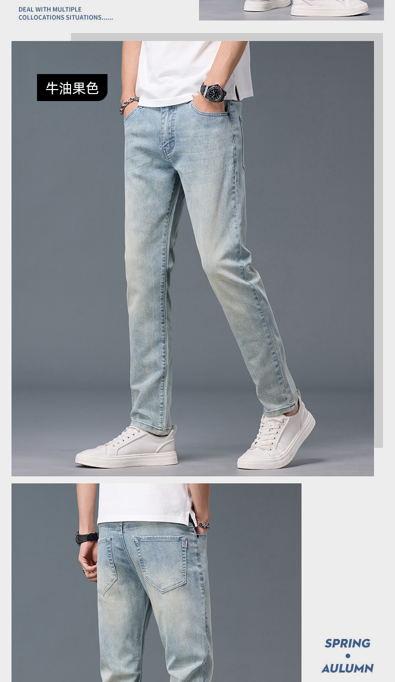 봄과 여름 2025 새로운 스트레치 슬림 핏 한국 스타일 트렌디 남성 청바지 남성 캐주얼 바지 패션 820스토어 가기