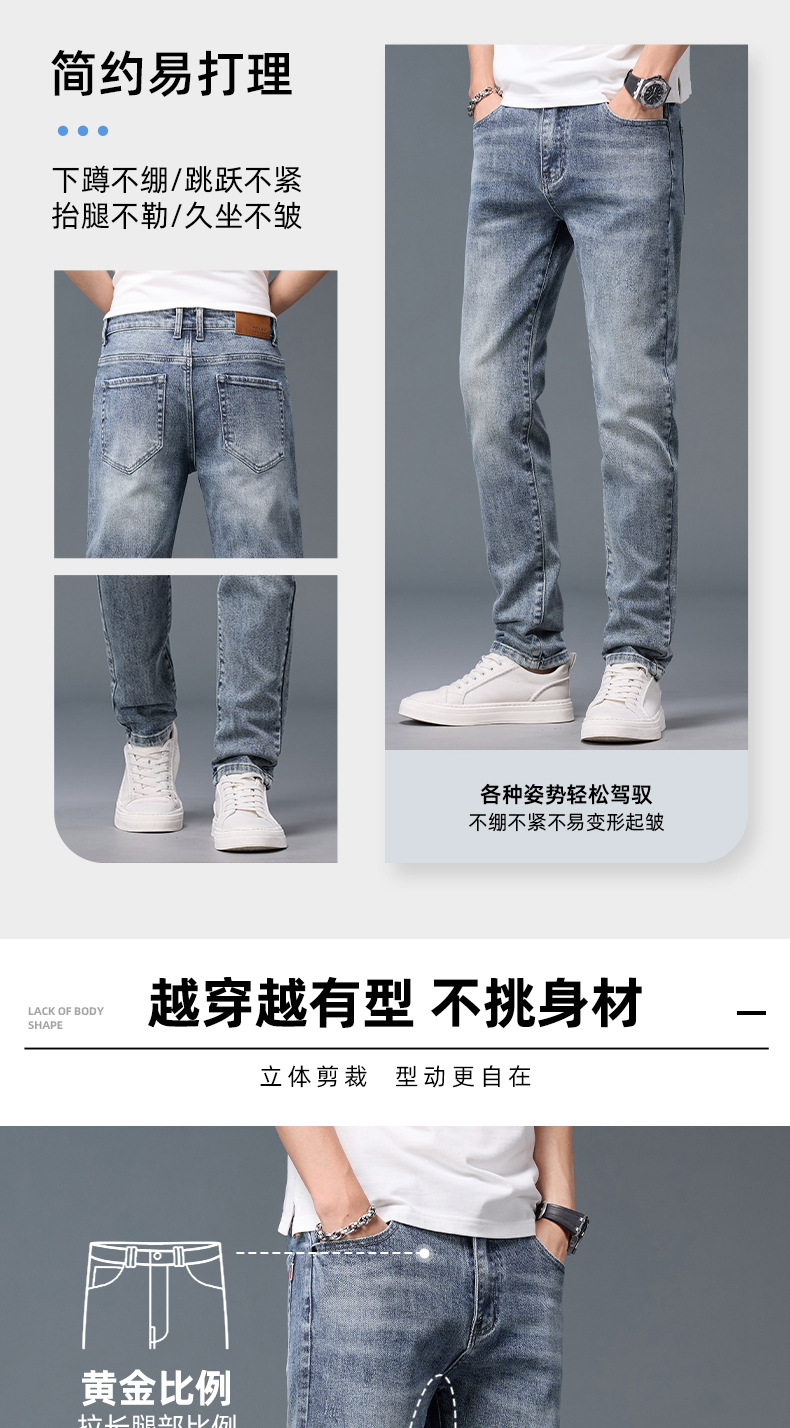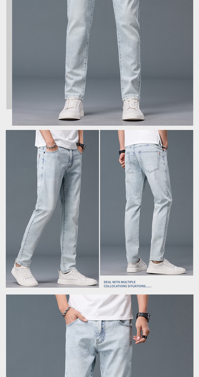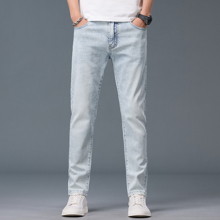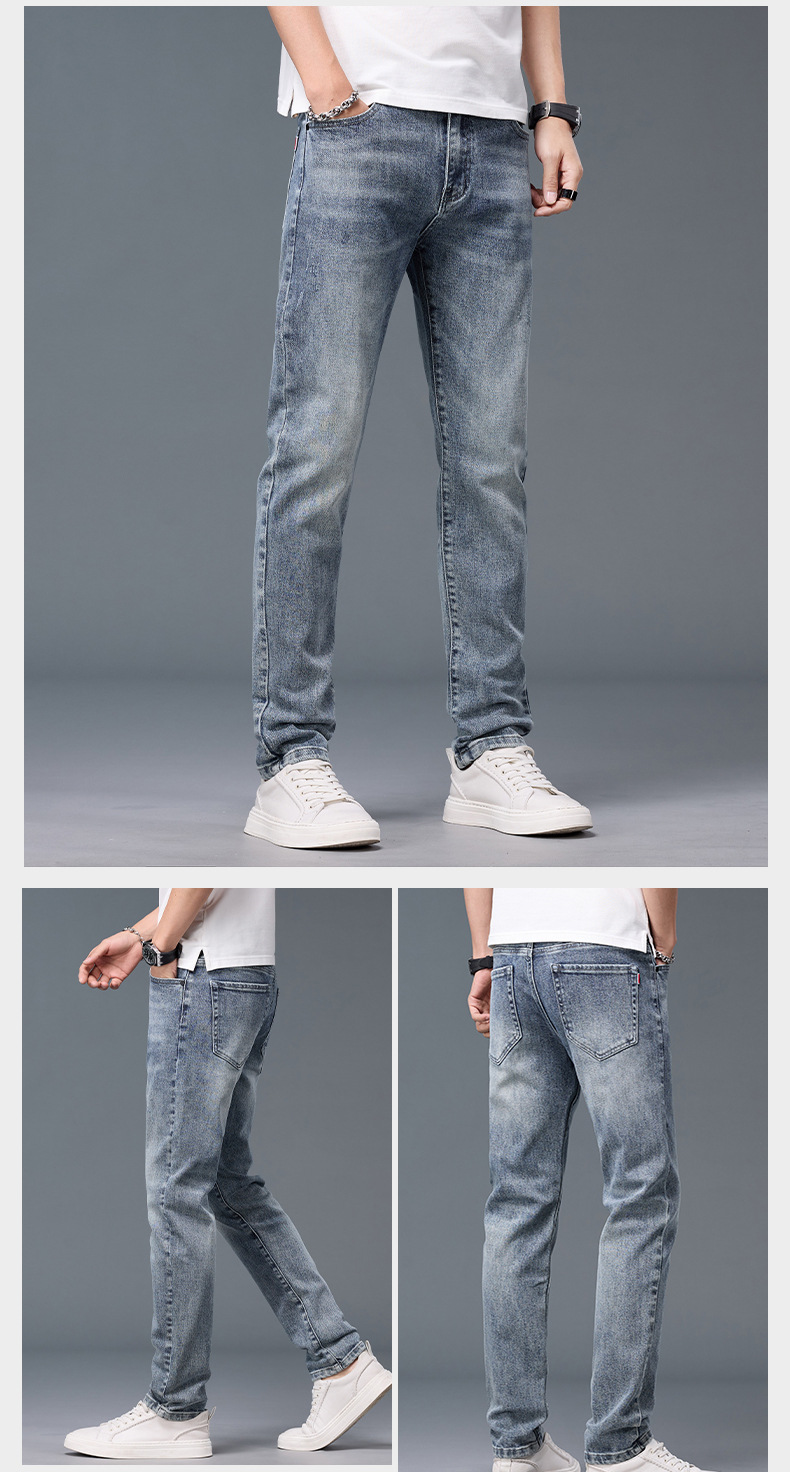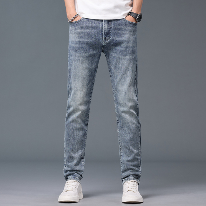 봄과 여름 2025 새로운 스트레치 슬림 핏 한국 스타일 트렌디 남성 청바지 남성 캐주얼 바지 패션 820