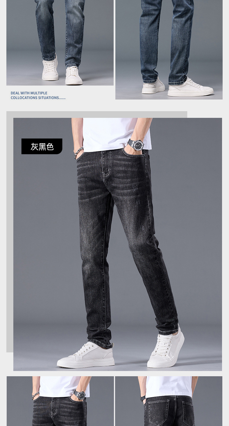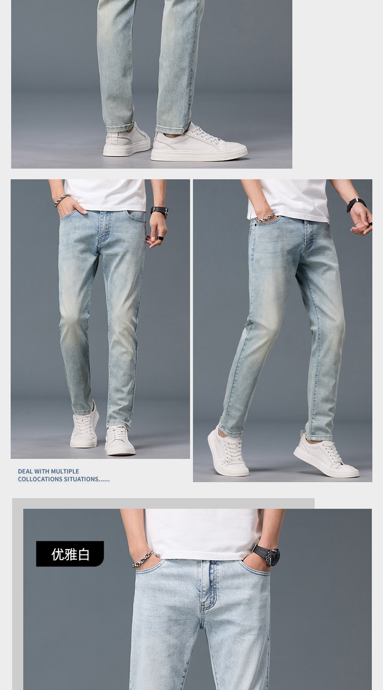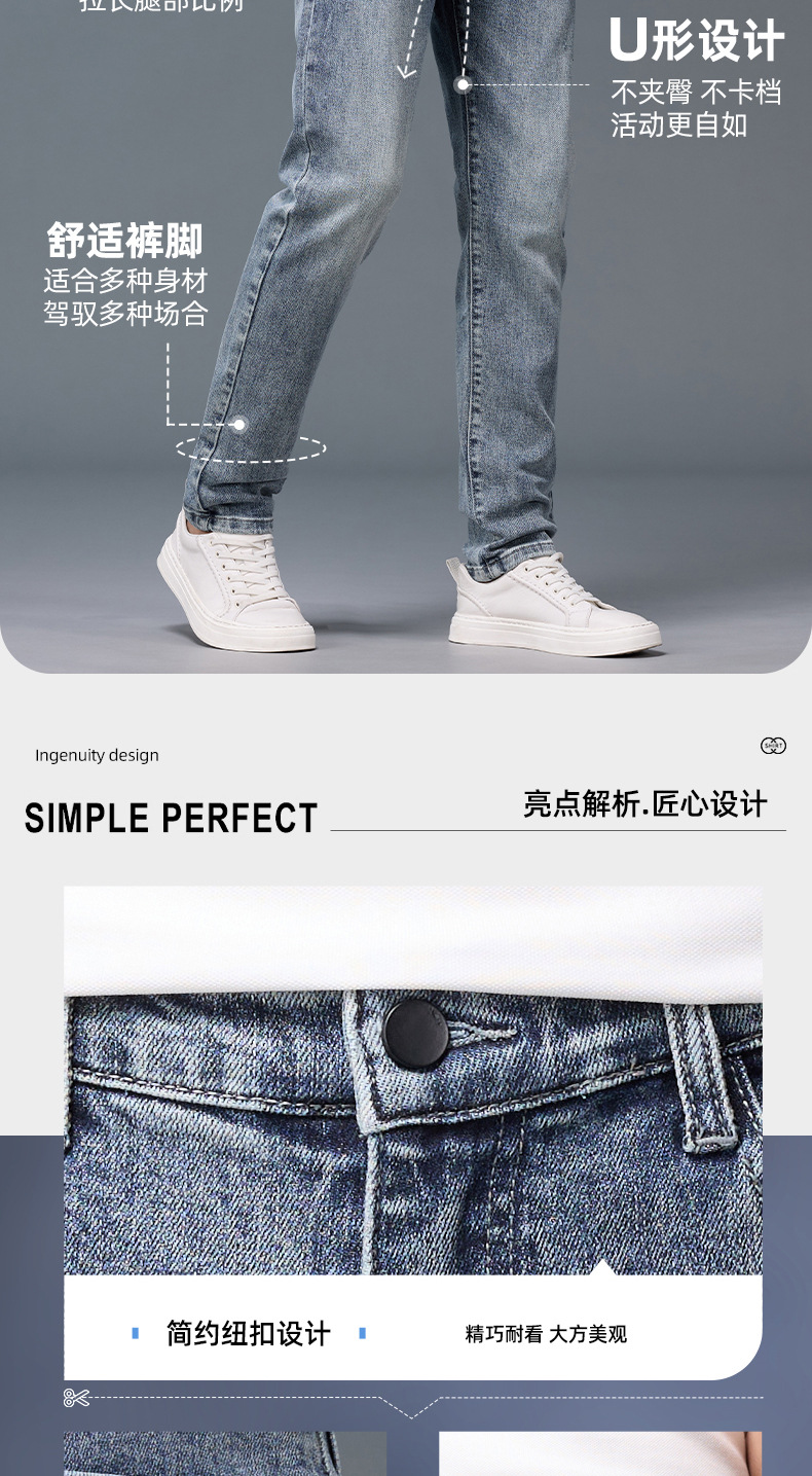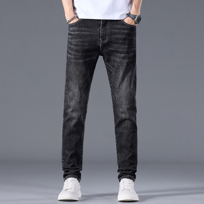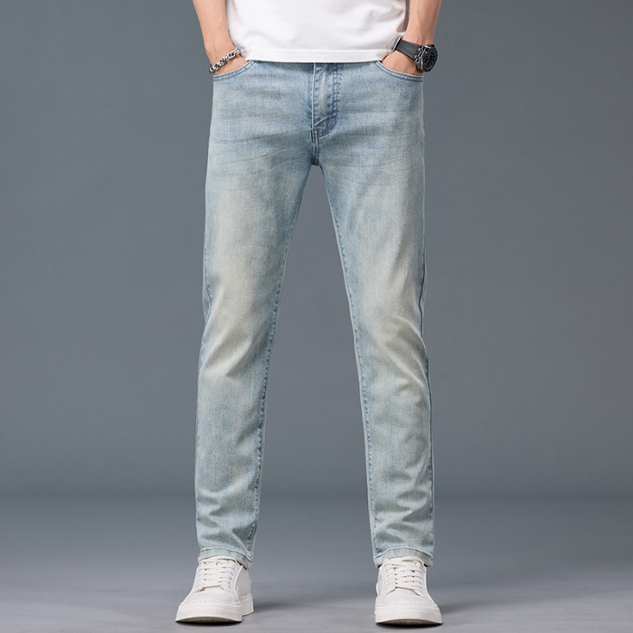 봄과 여름 2025 새로운 스트레치 슬림 핏 한국 스타일 트렌디 남성 청바지 남성 캐주얼 바지 패션 820