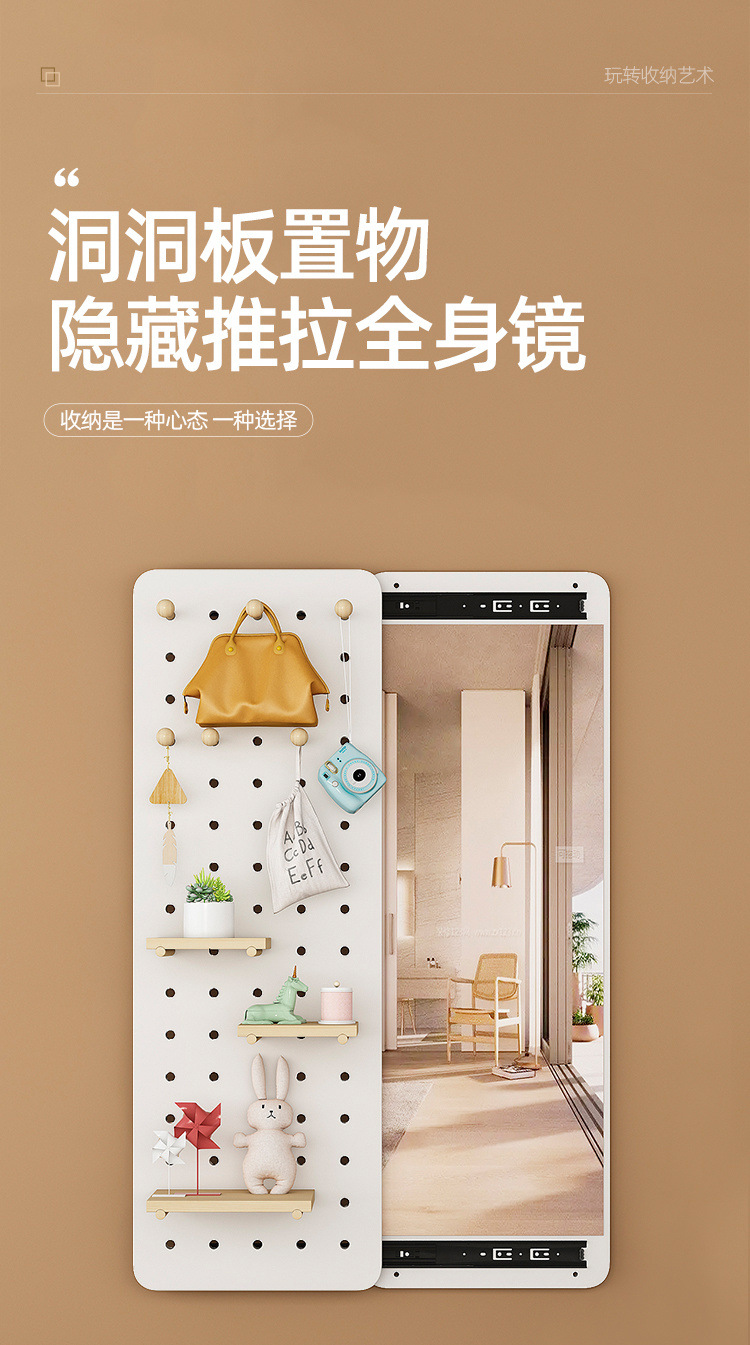 보이지 않는 드레스 미러 마감 전체 길이 거울 가구 숨겨진 푸시 풀 거울 구멍 구멍 구멍 구멍 피팅 거울