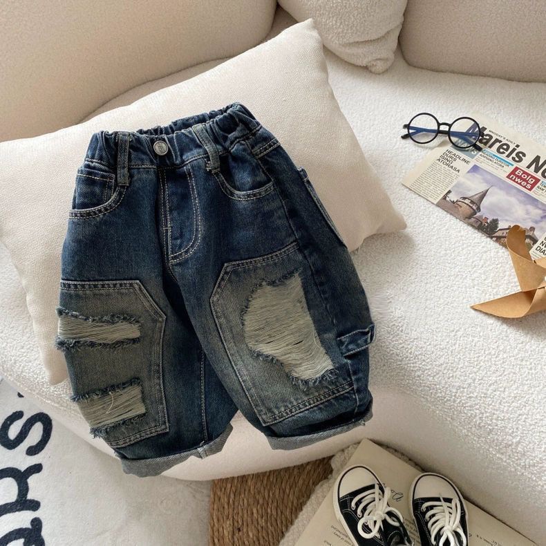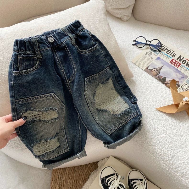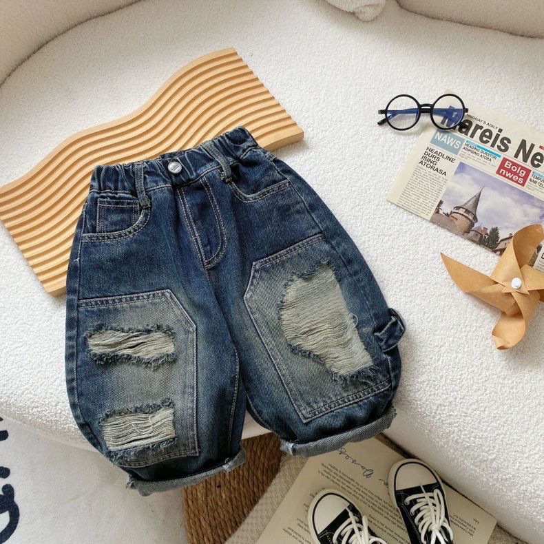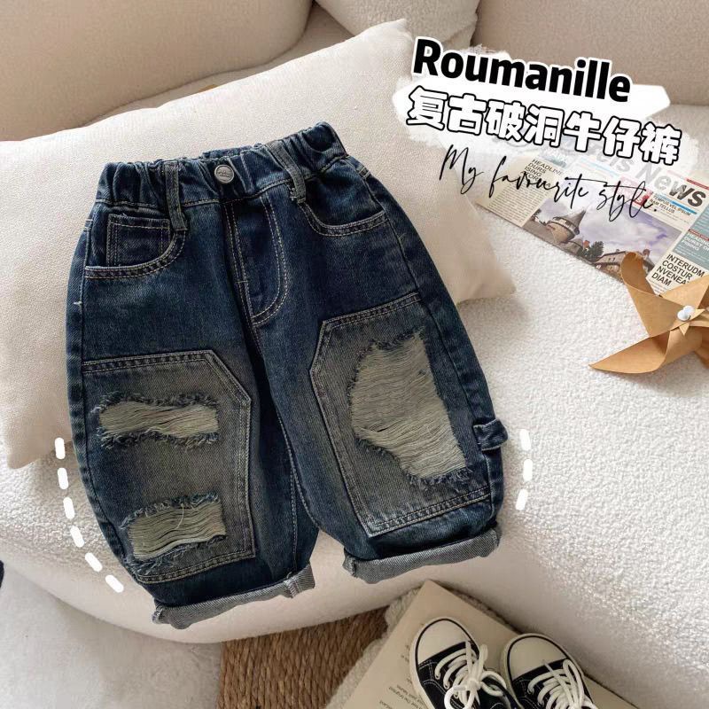 봄과 가을 남녀 아동복 청바지 아기의 서양식 어린이 성격 유행 브랜드 한국 스타일 구멍 패치 유행 하렘 바지스토어 가기