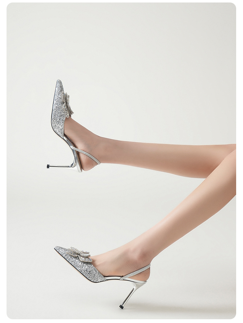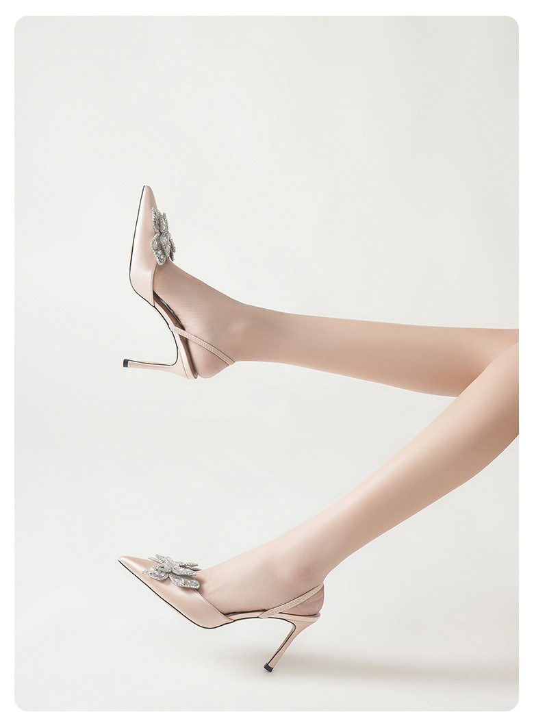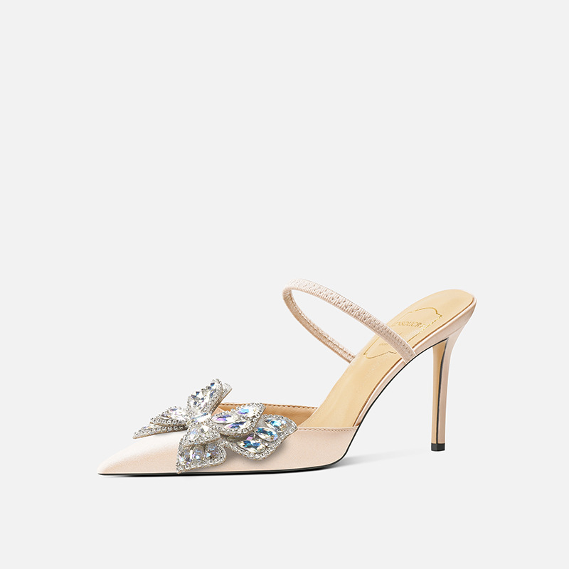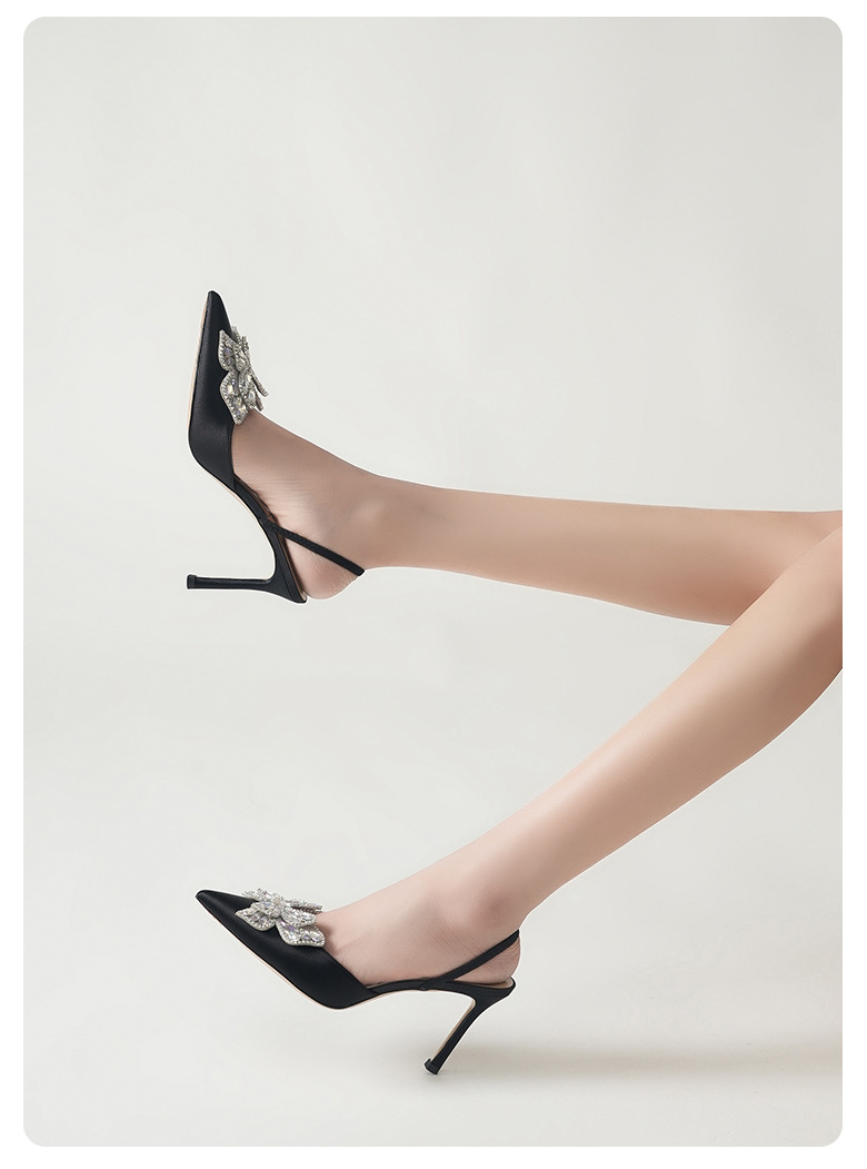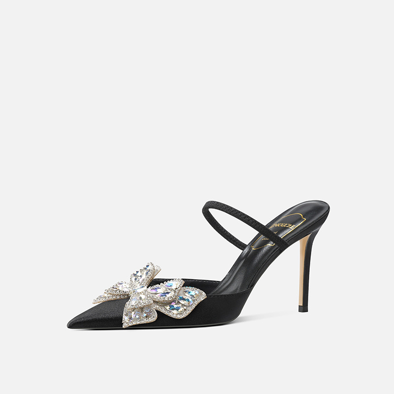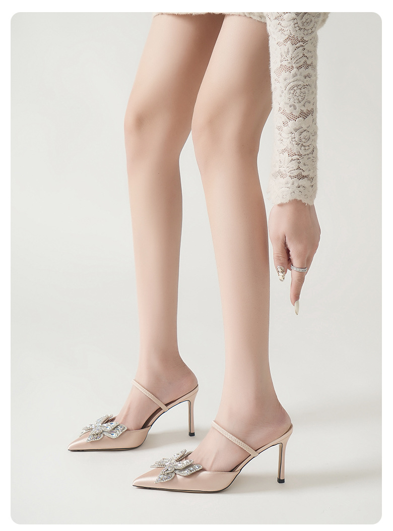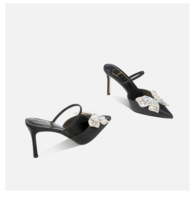 708-92 Sequin Baotou 빈 하이힐 나비 라인스톤 샌들 우아한 양가죽 여성용 하이힐 하프 슈즈 여성용 신발스토어 가기