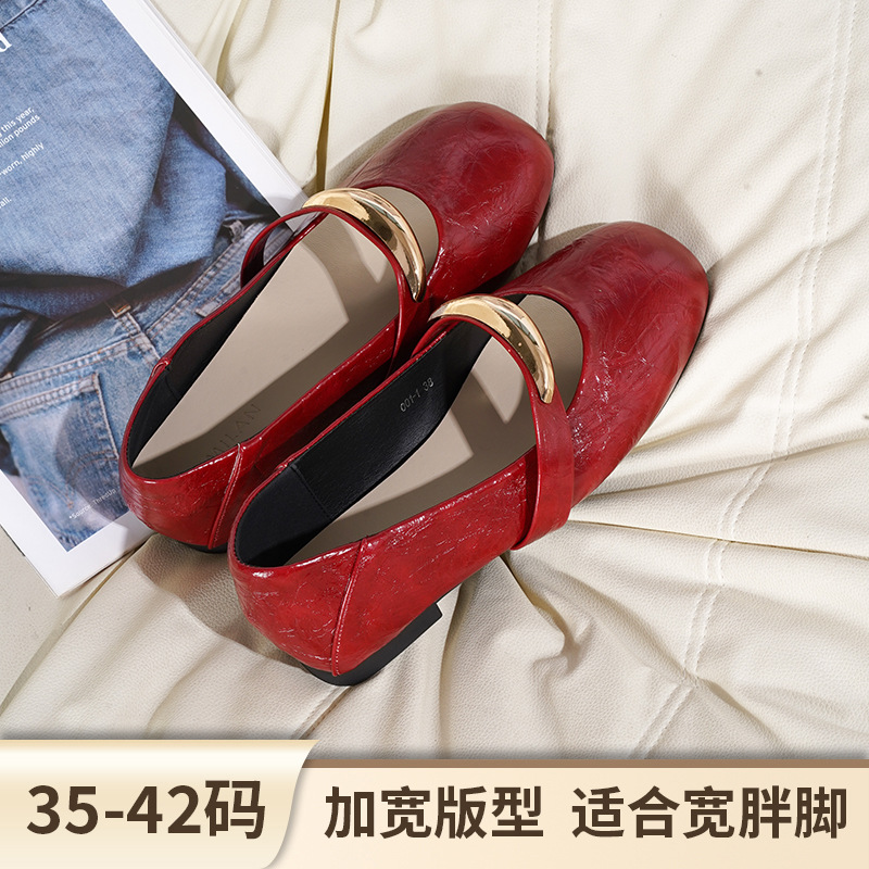 2025년형 마리제인 슈즈, 여성용 봄 신상 통기성 경량 와이드 발용 가죽 신발, 캐주얼 로우힐