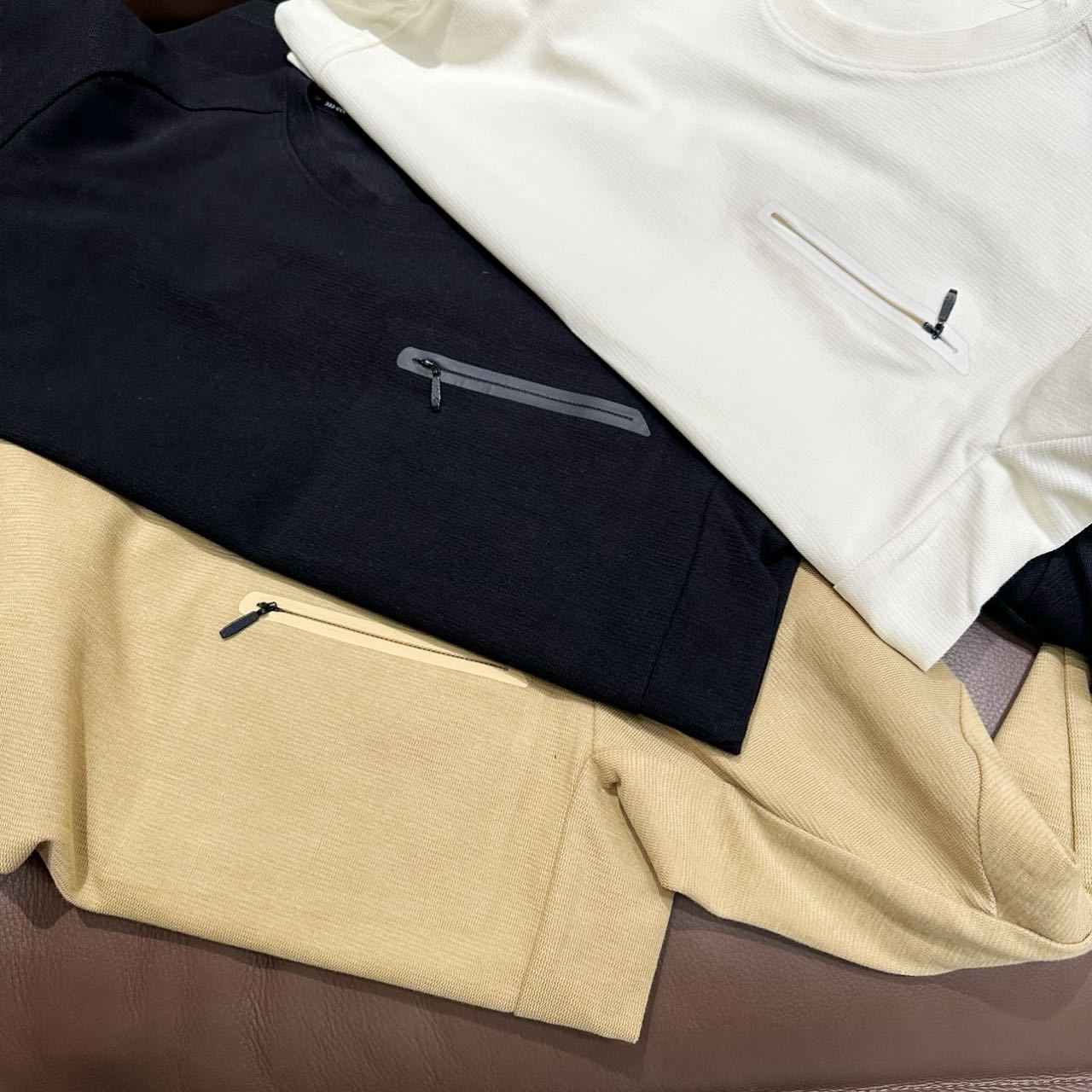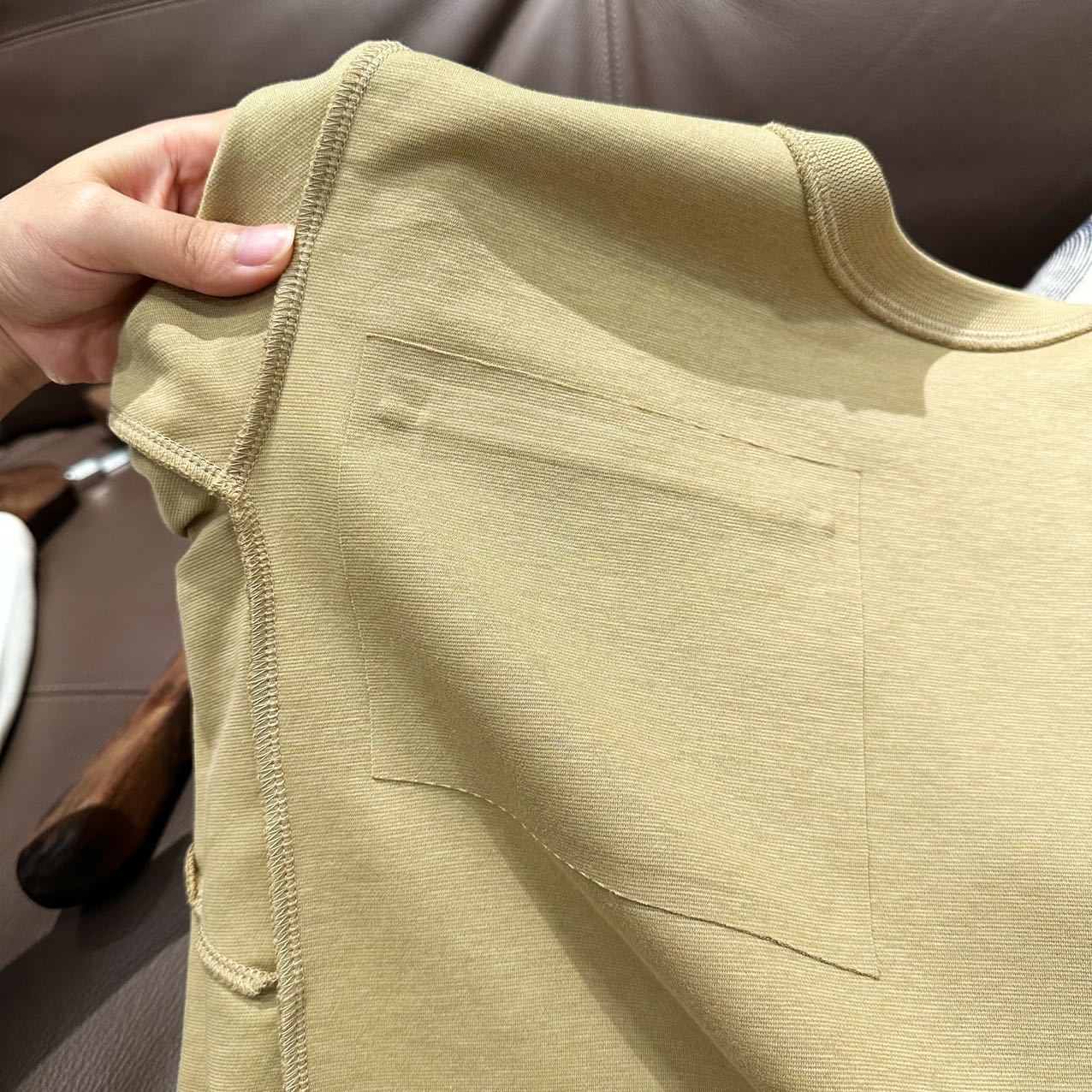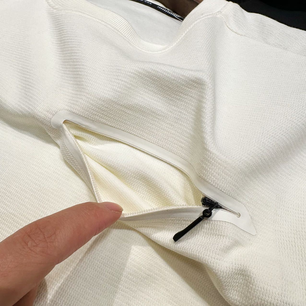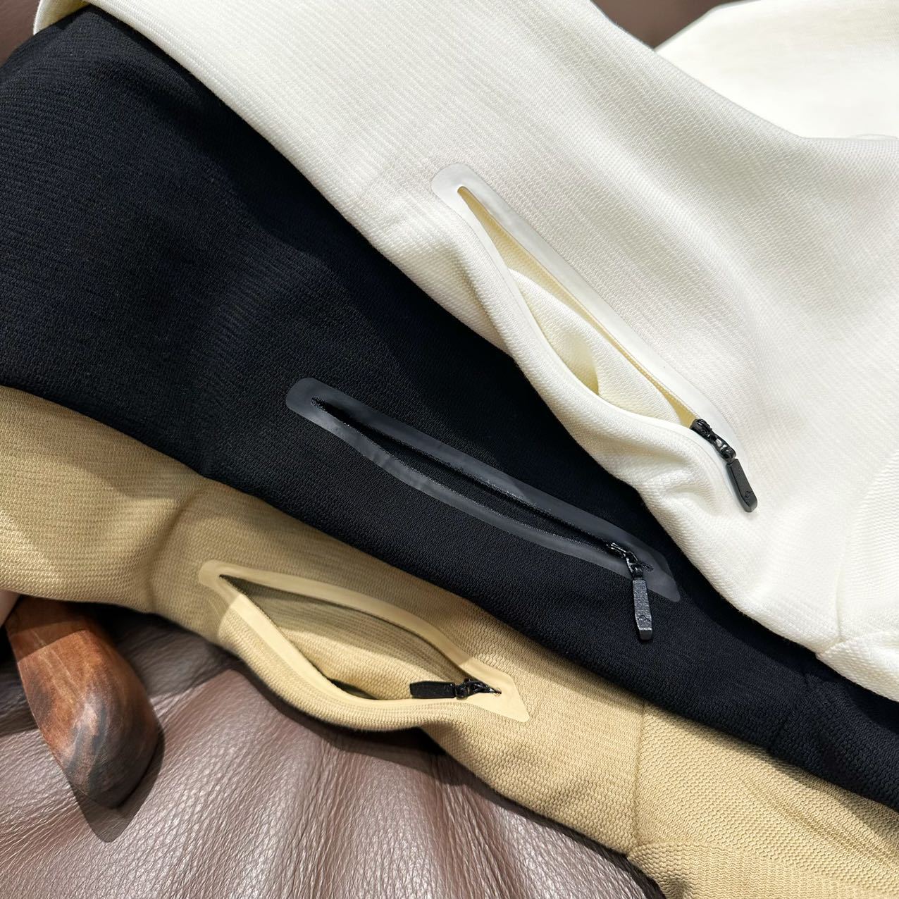 款式设计大气 背后落肩线条显得肩窄 ,圆领减龄 胸口同色系3层隐形压胶拉链口袋 ,简约有格调