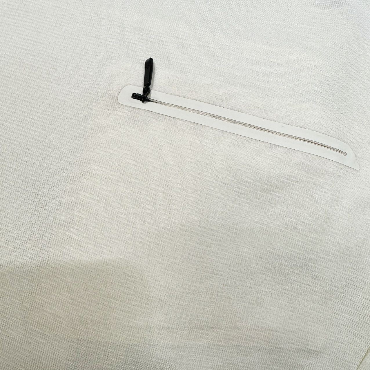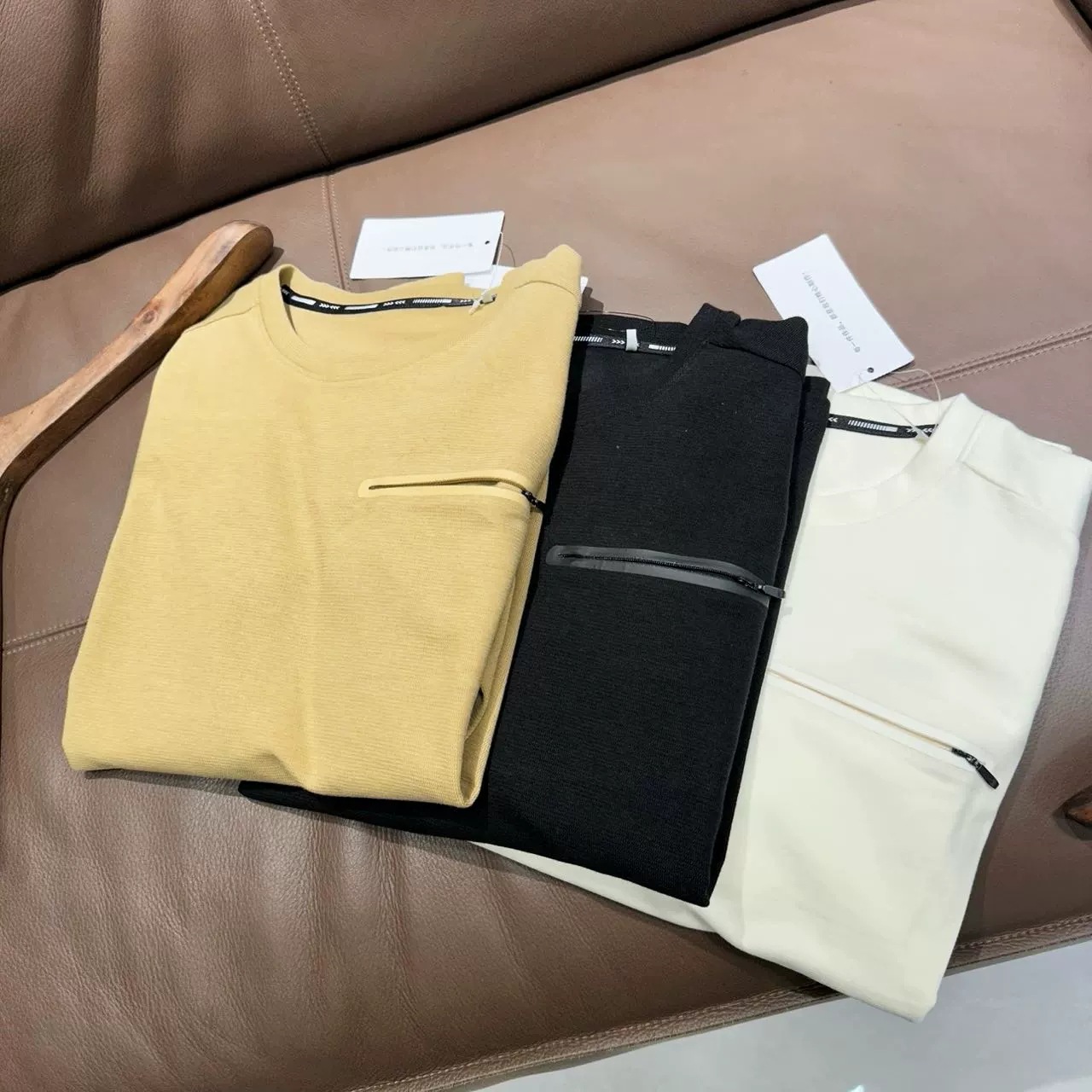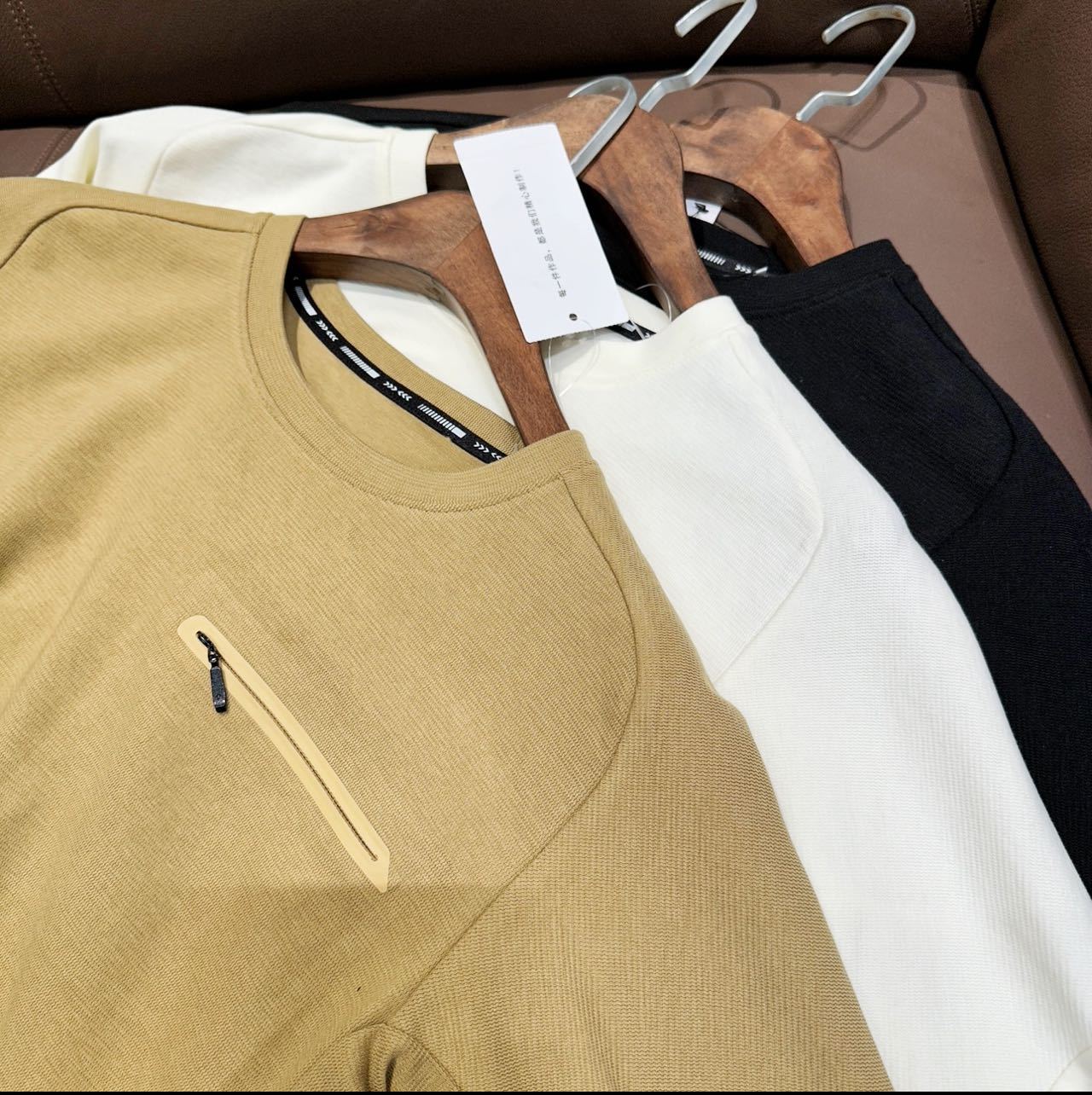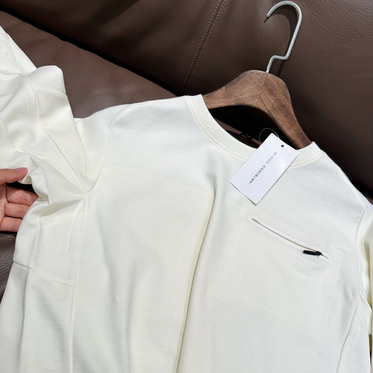 款式设计大气 背后落肩线条显得肩窄 ,圆领减龄 胸口同色系3层隐形压胶拉链口袋 ,简约有格调