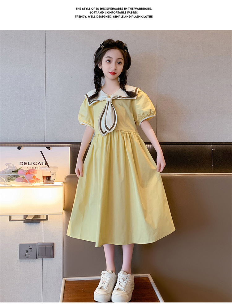 여자 여름 원피스 2025 새로운 어린이 서양식 인터넷, 대학 스타일 스커트 여름 원피스 여자 중대형 어린이 긴 치마