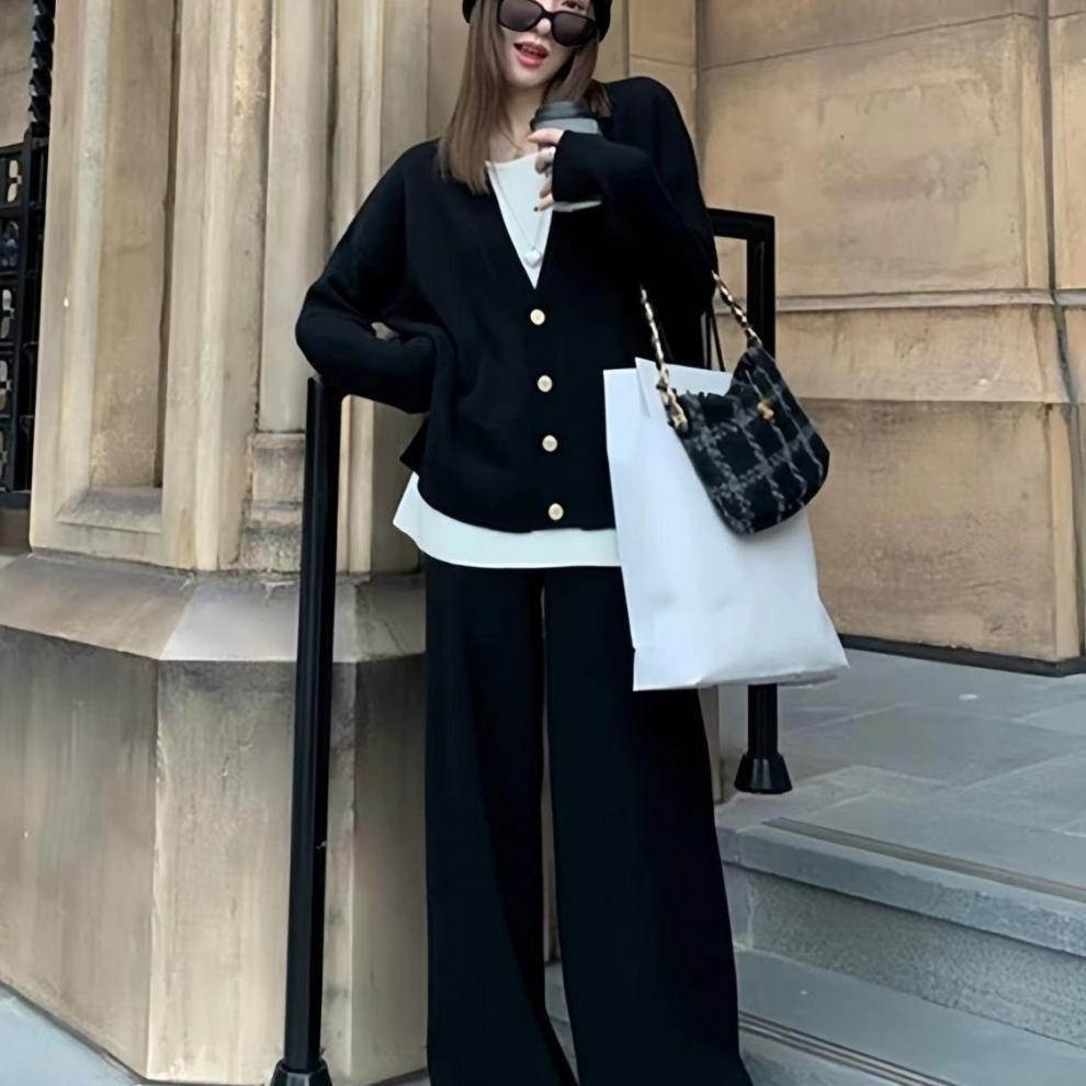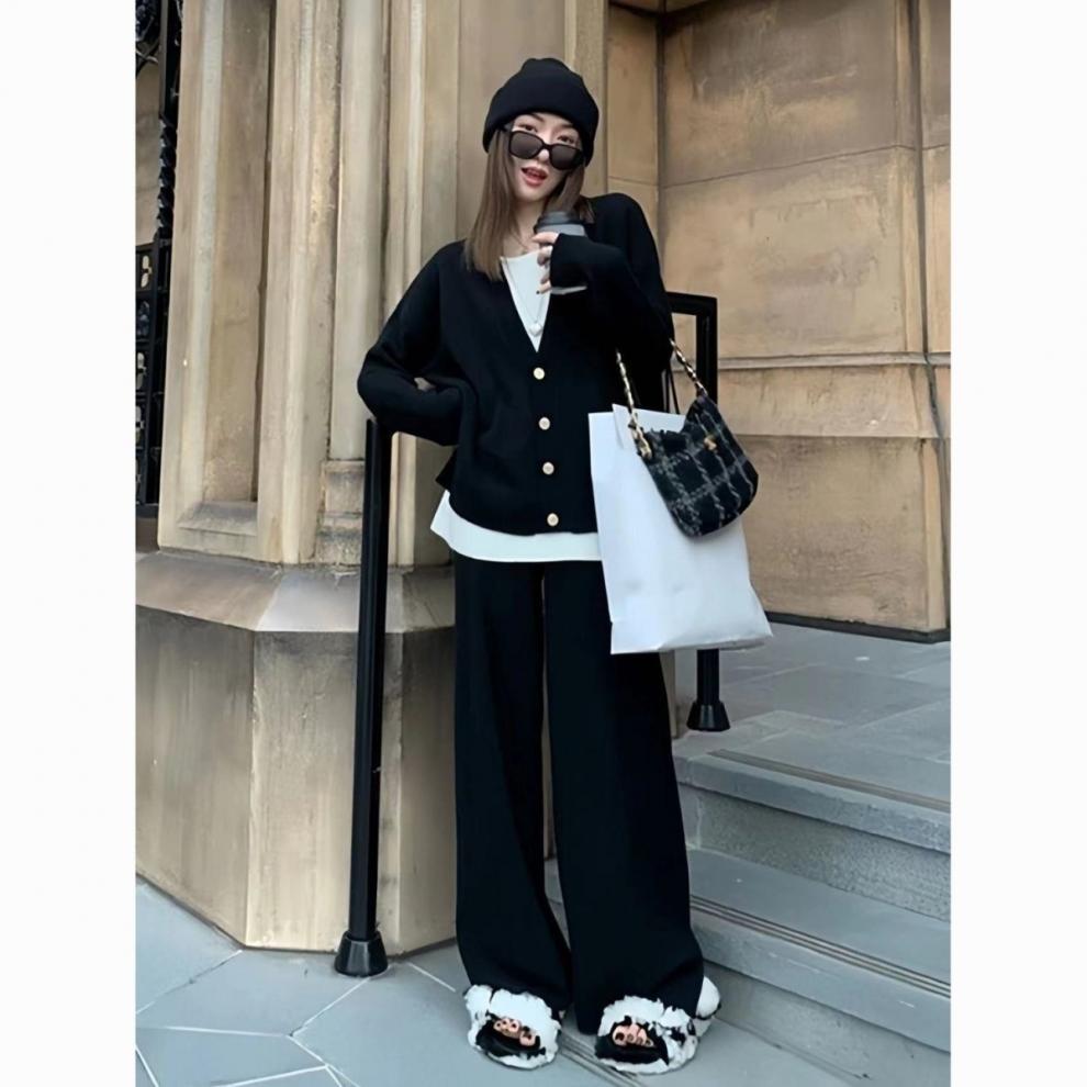 새로운 플러스 사이즈 3 피스 55.00 kg-110.00 kg 느슨한 게으른 스웨터 와이드 레그 바지 세트스토어 가기