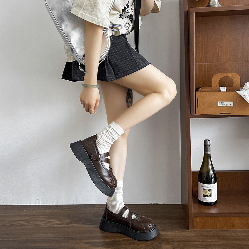 두꺼운 바닥 Mary Jane 여성 신발 2025 새로운 여름 스커트 JK 유니폼 싱글 레이어 신발 대학 스타일의 작은 가죽 신발 이브닝 신발스토어 가기