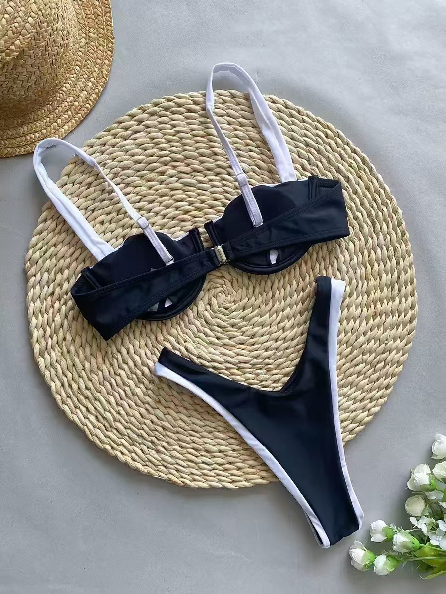 2025 새로운 비키니 높은 허리 유럽과 미국의 비키니 스티칭 국경 간 대외 무역 섹시한 분할 여성 수영복