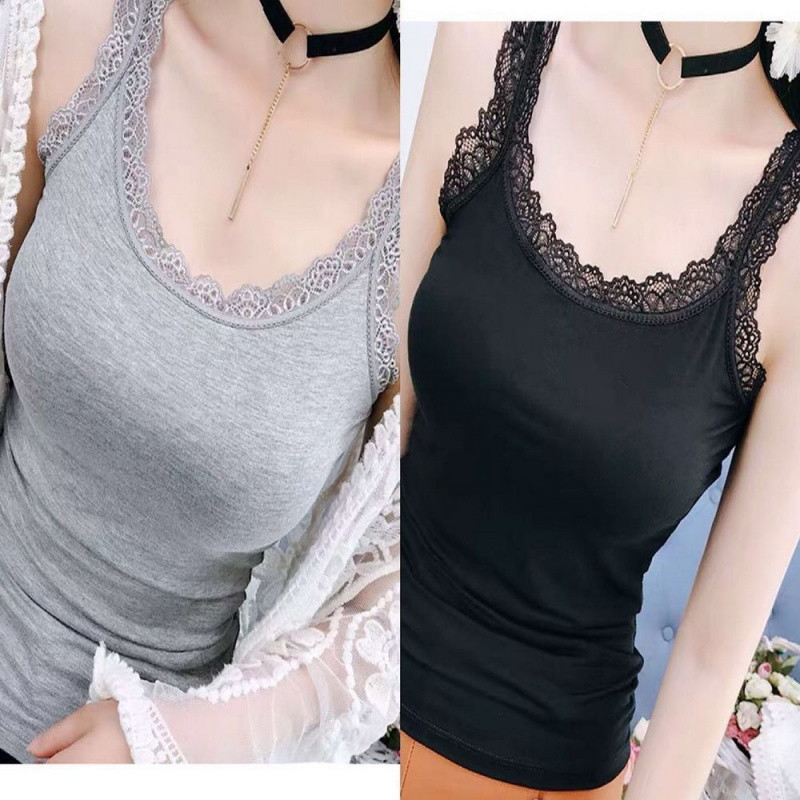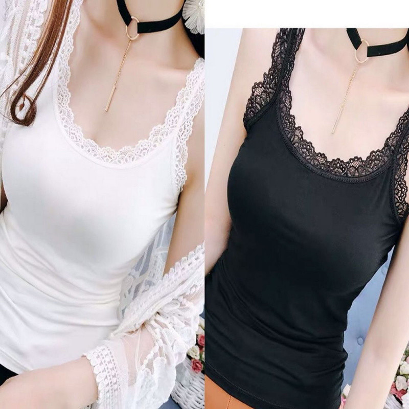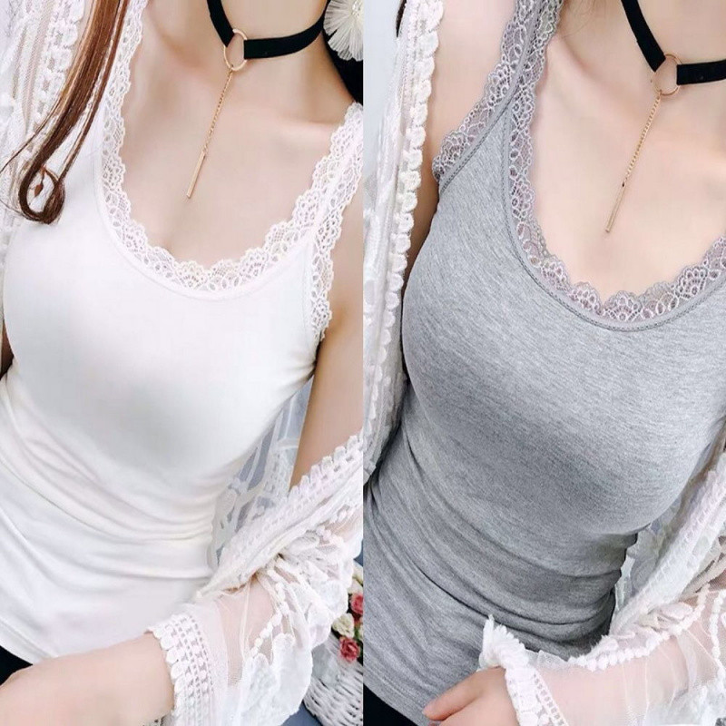 투피스 레이스 스티칭 캐미솔 여성용 봄과 여름 한국식 얇은 민소매 흰색 캐미솔베이스 셔츠
