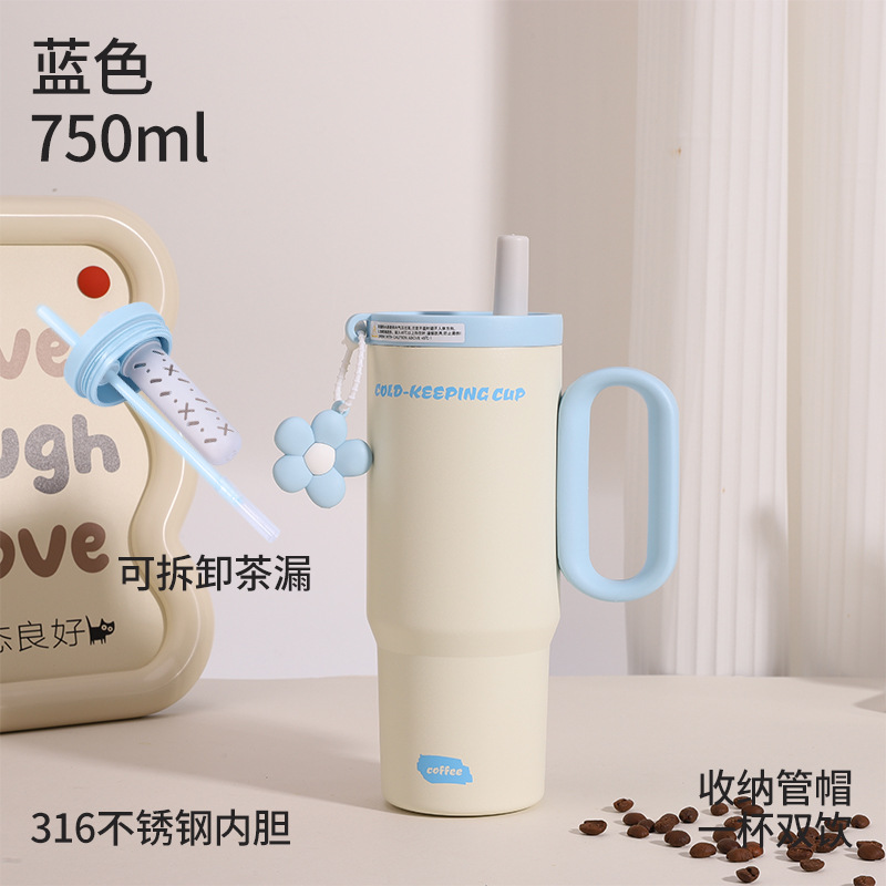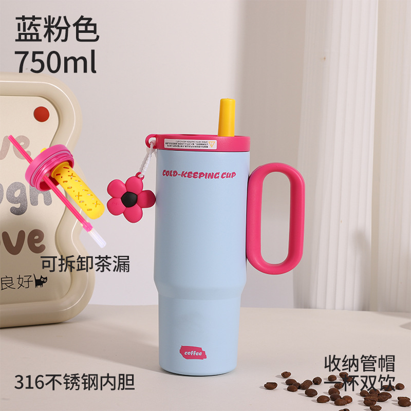 국경을 넘는 빅맥 보온병 컵, 고급스러운 316 스테인레스 스틸 대용량 아이스 컵 핸들 여름 냉수 컵