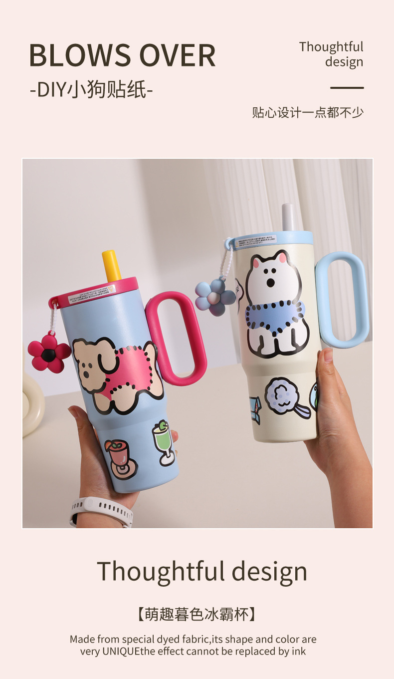 국경을 넘는 빅맥 보온병 컵, 고급스러운 316 스테인레스 스틸 대용량 아이스 컵 핸들 여름 냉수 컵스토어 가기