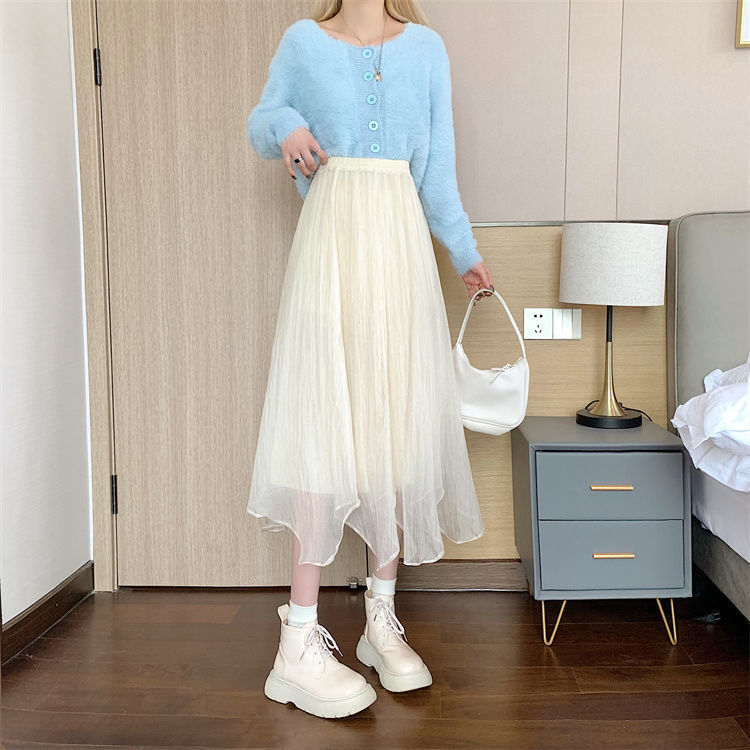 작은 착용 메쉬 스커트 여성의 봄과 여름 스커트 요정 학생 모리 요정 스커트 중간 길이 스커트스토어 가기