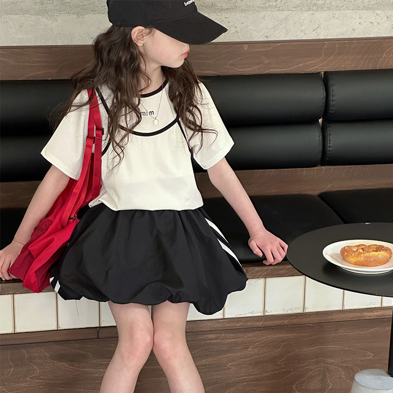 소녀 세트 여름 2025 새로운 어린이 캐주얼 반팔 스커트 투피스 세련된 어린이 패션 스커트