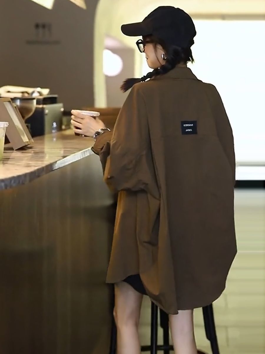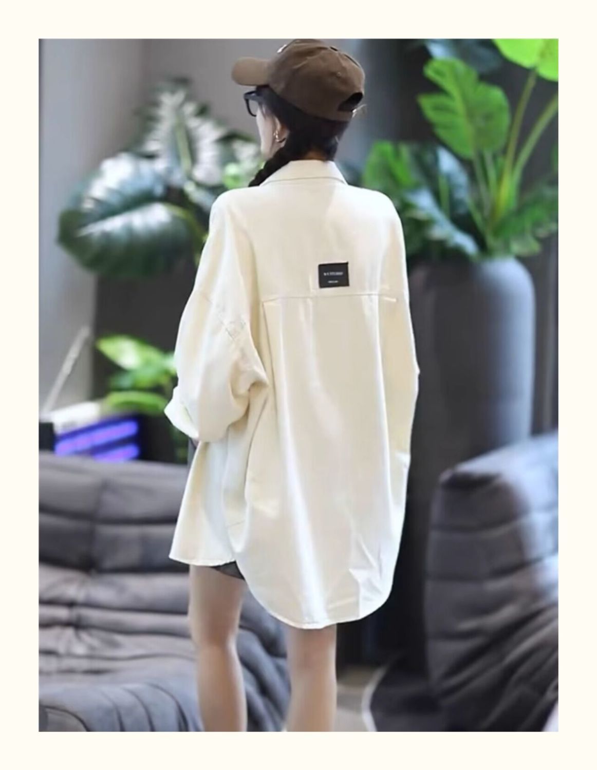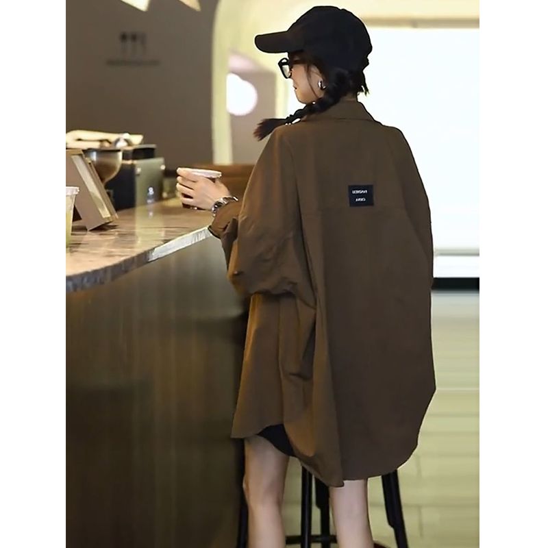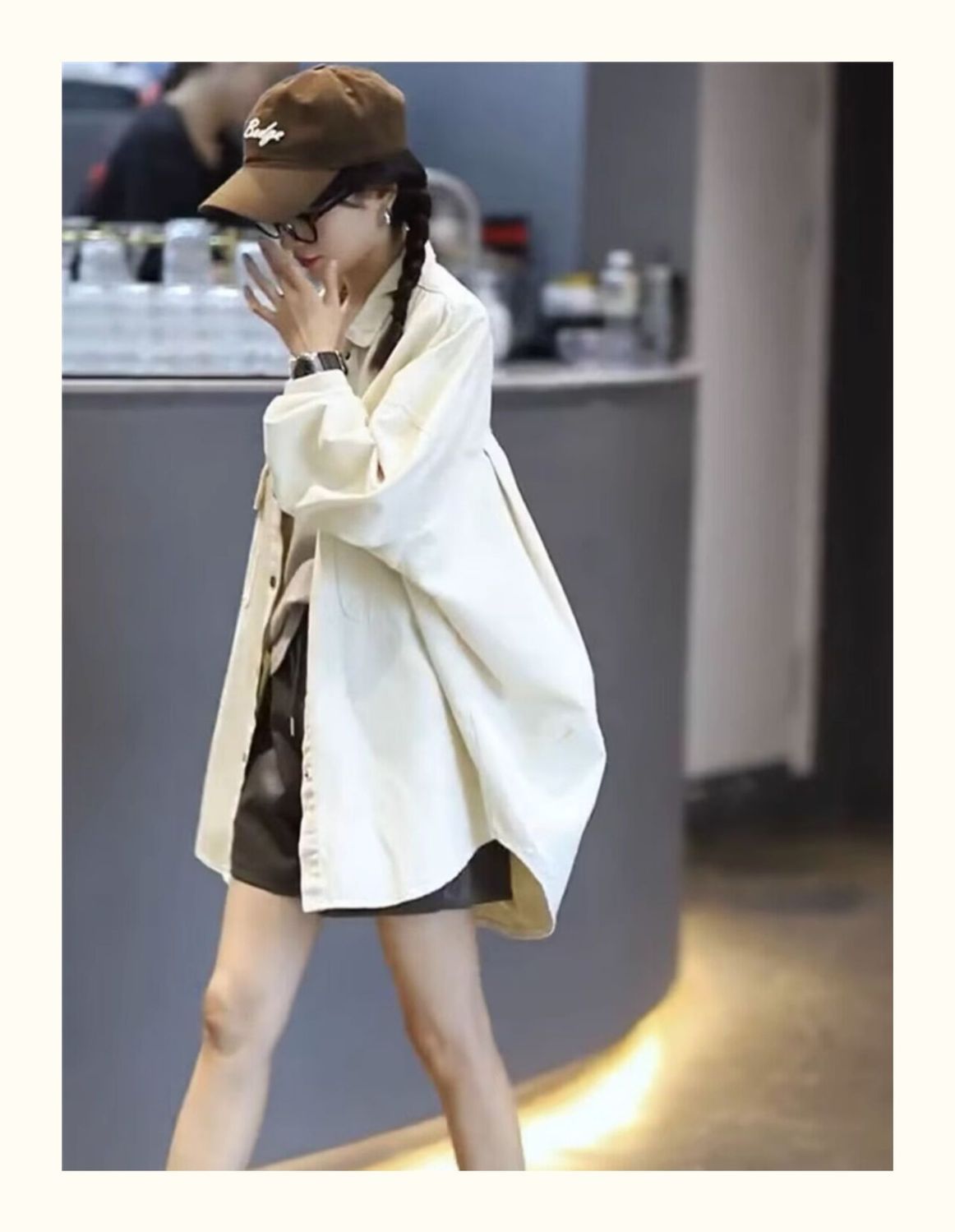 한국 스타일 셔츠 여자 중간 길이 코트 2025 봄 복고풍 홍콩 스타일 느슨한 캐주얼 작은 탑