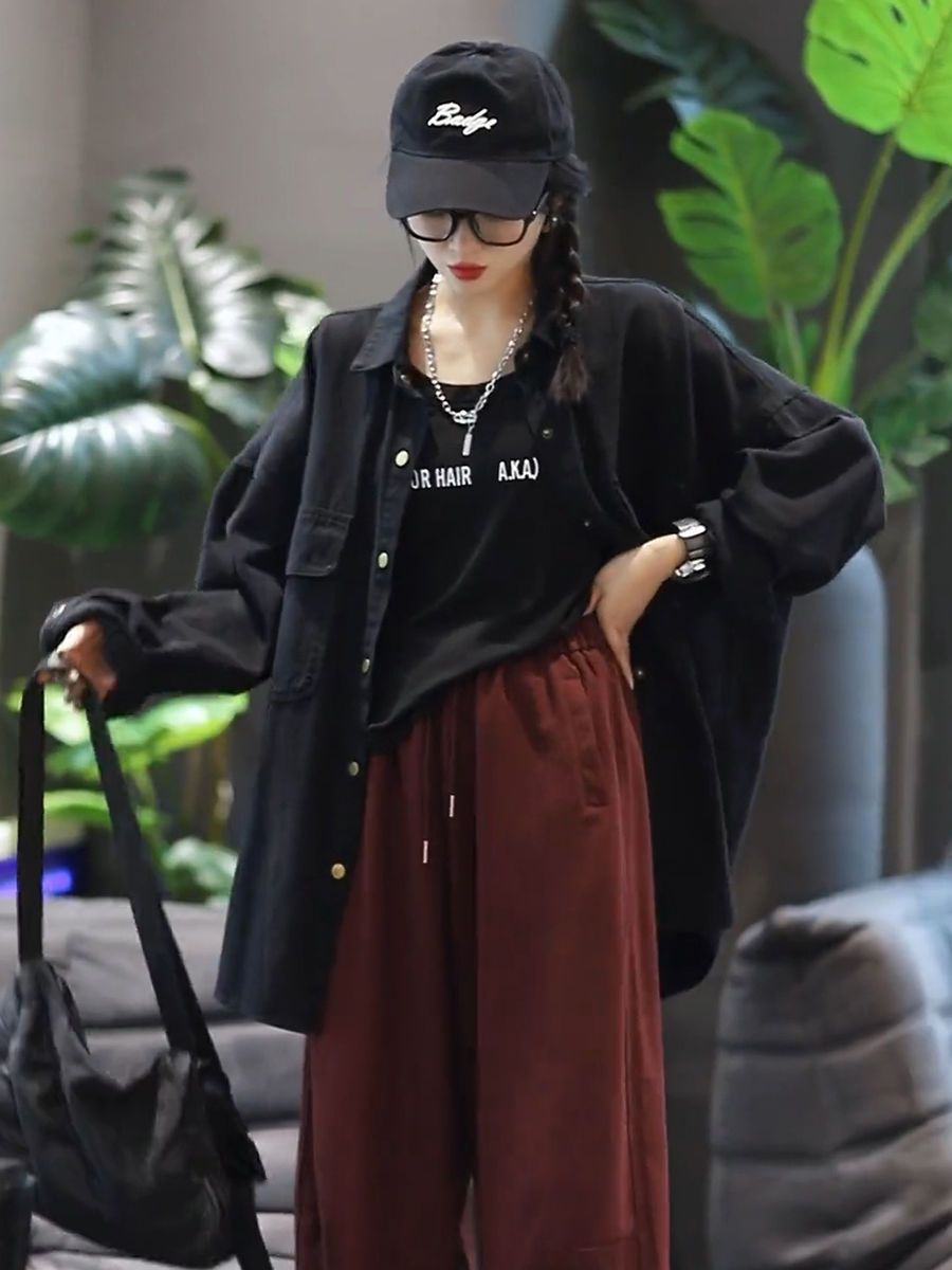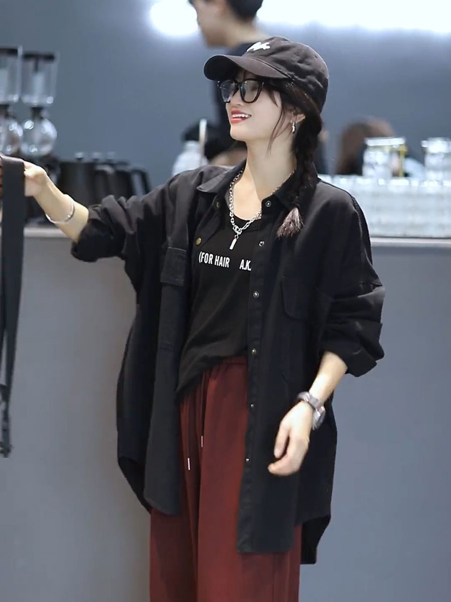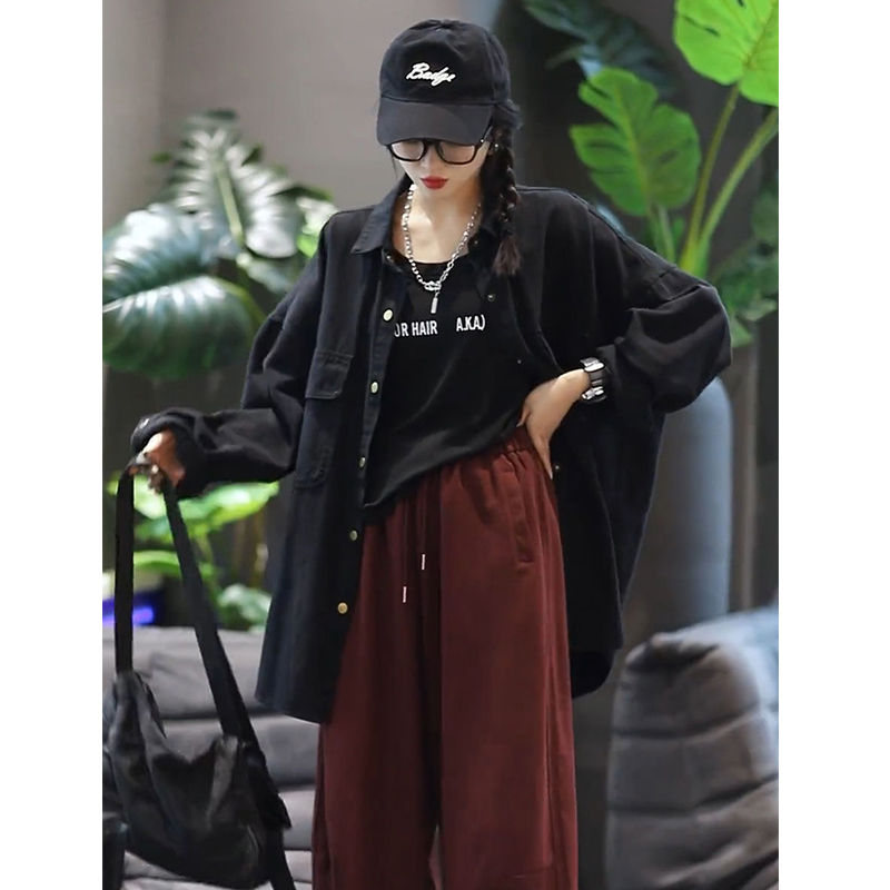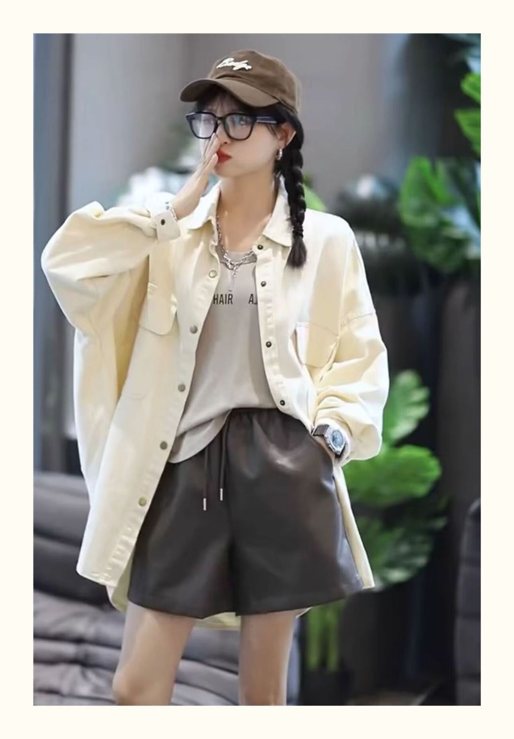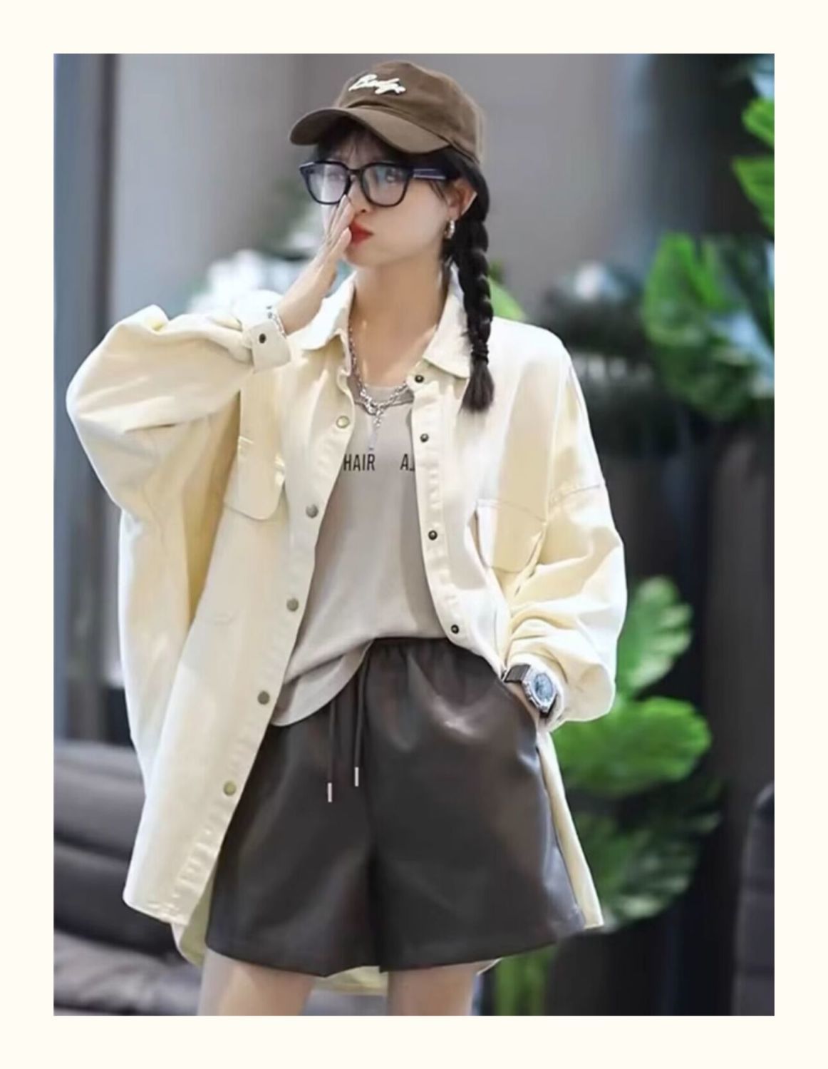 한국 스타일 셔츠 여자 중간 길이 코트 2025 봄 복고풍 홍콩 스타일 느슨한 캐주얼 작은 탑