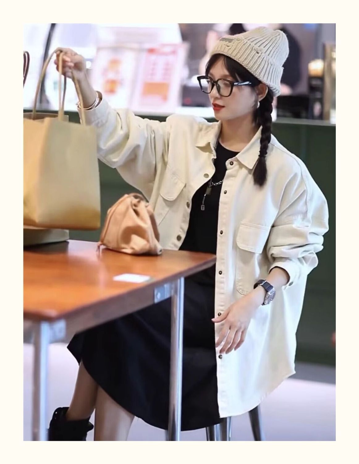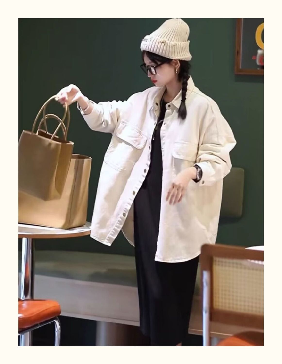 한국 스타일 셔츠 여자 중간 길이 코트 2025 봄 복고풍 홍콩 스타일 느슨한 캐주얼 작은 탑스토어 가기