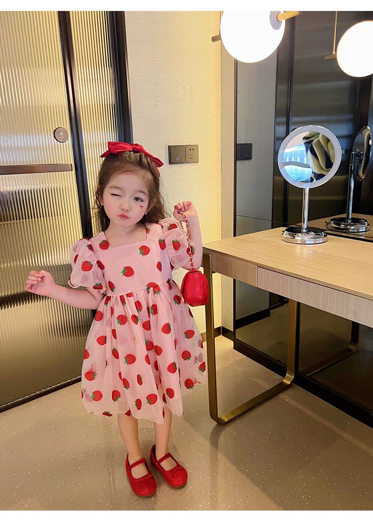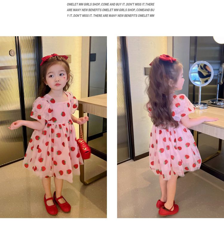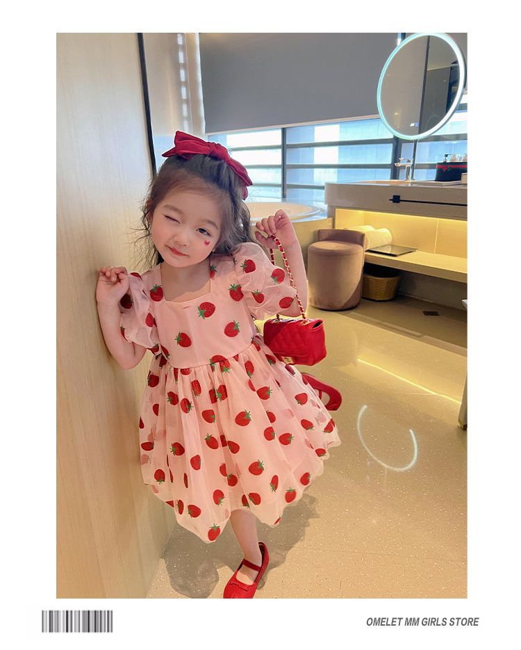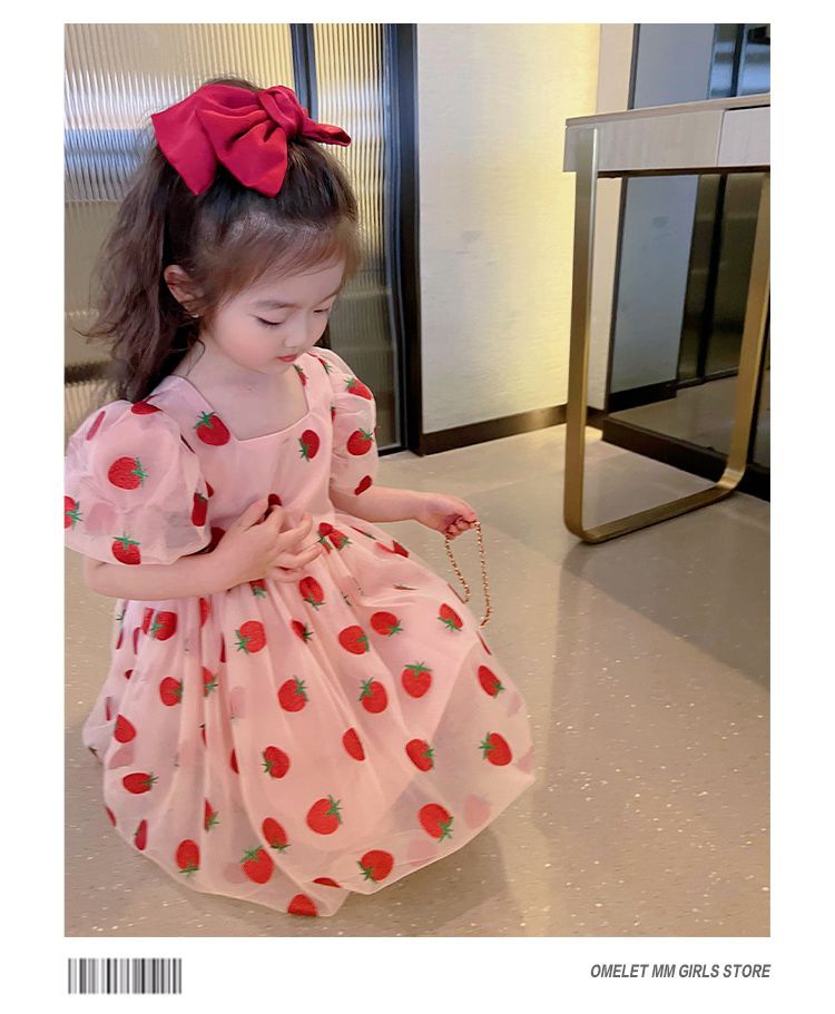 여자 여름 원피스 아기 세련된 어린이 맞춤형 유행 한국 스타일 달콤한 딸기 요정 판초 공주 원피스스토어 가기