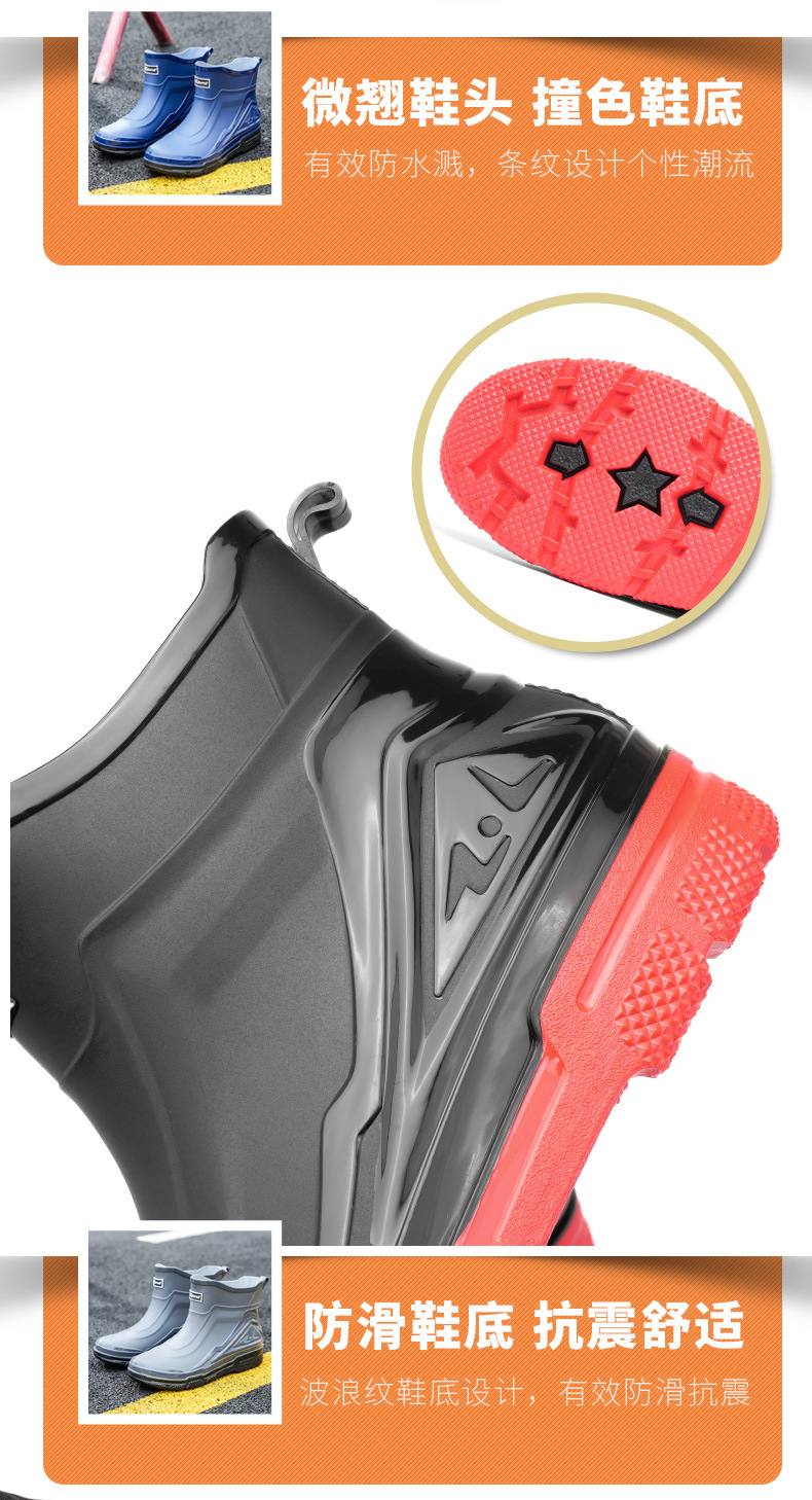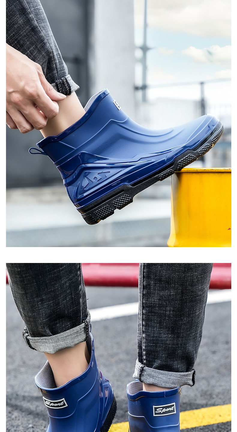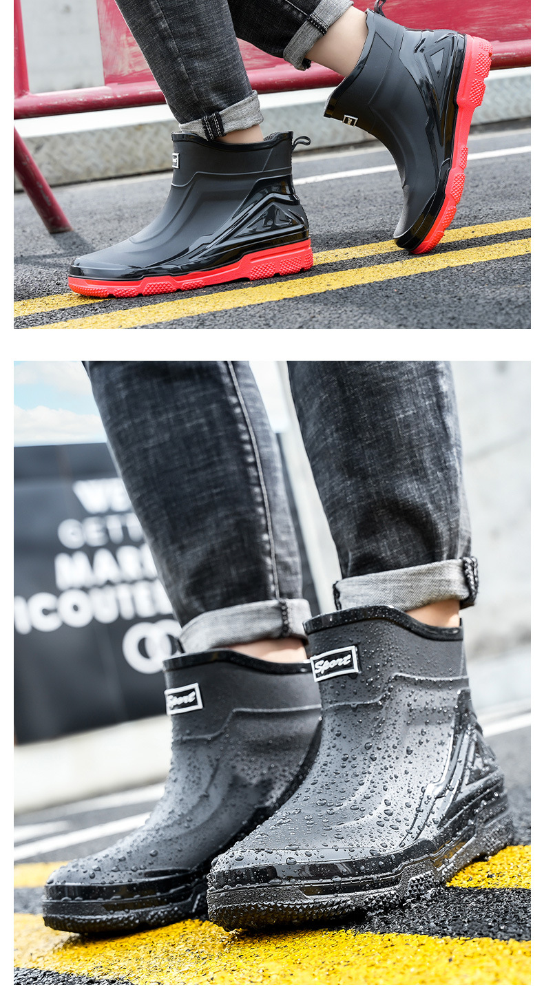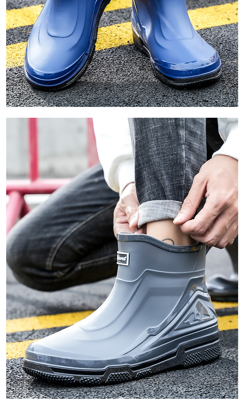 비 부츠 남성용 중간 튜브 레인 부츠 낮은 튜브 워터 슈즈 패션 미끄럼 방지 방수 짧은 튜브 두꺼운 바닥 PVC 내마모성 재고