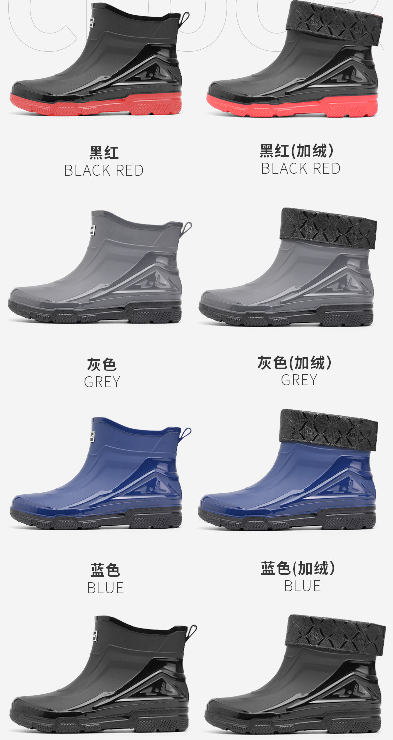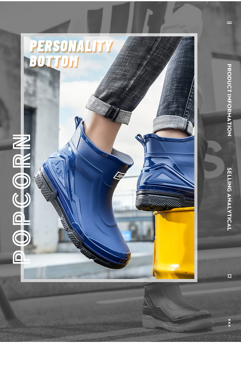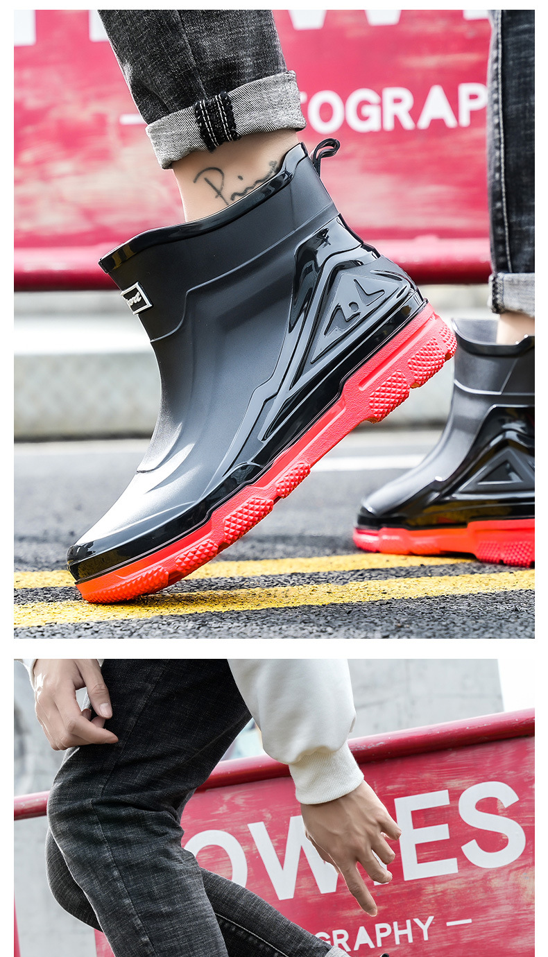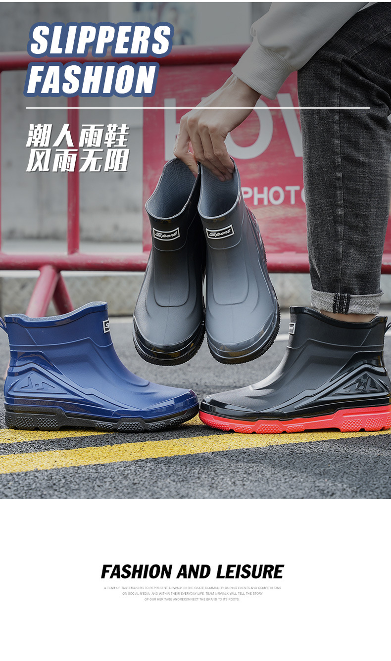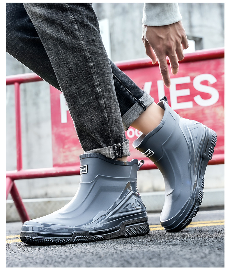비 부츠 남성용 중간 튜브 레인 부츠 낮은 튜브 워터 슈즈 패션 미끄럼 방지 방수 짧은 튜브 두꺼운 바닥 PVC 내마모성 재고