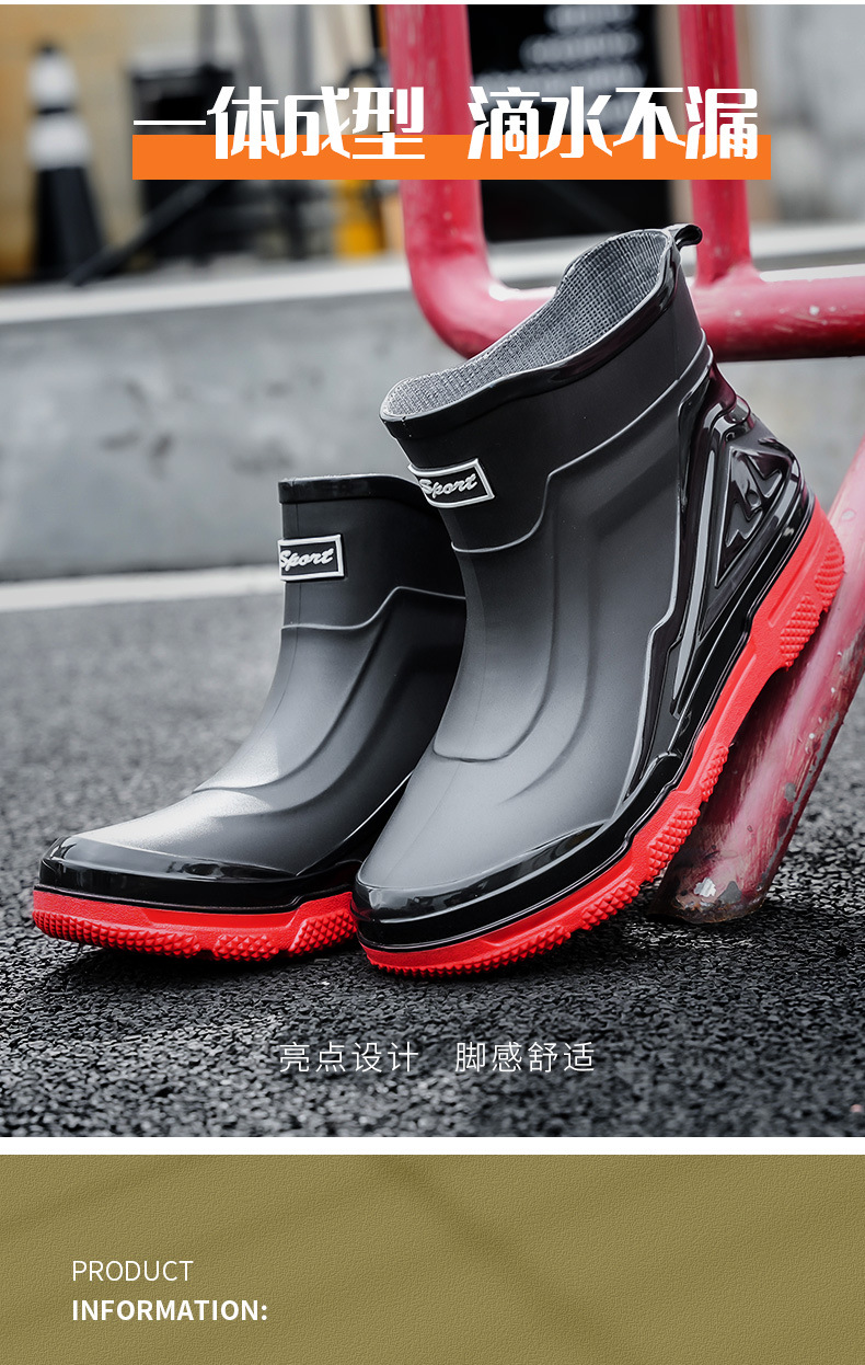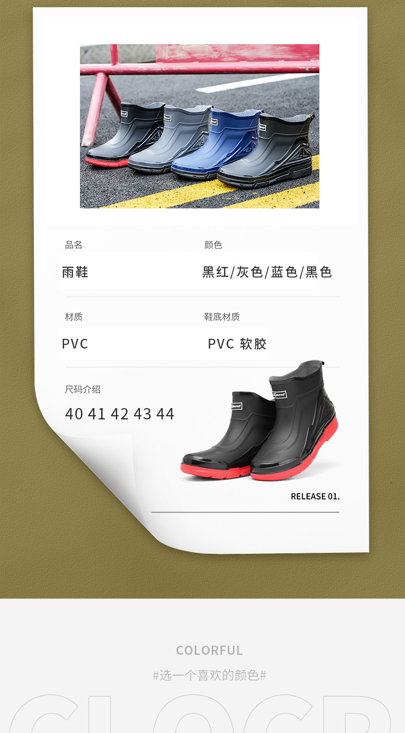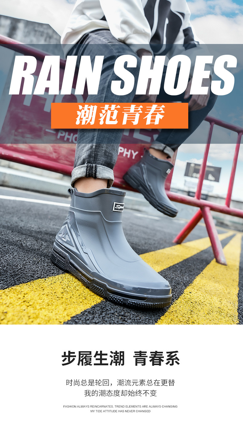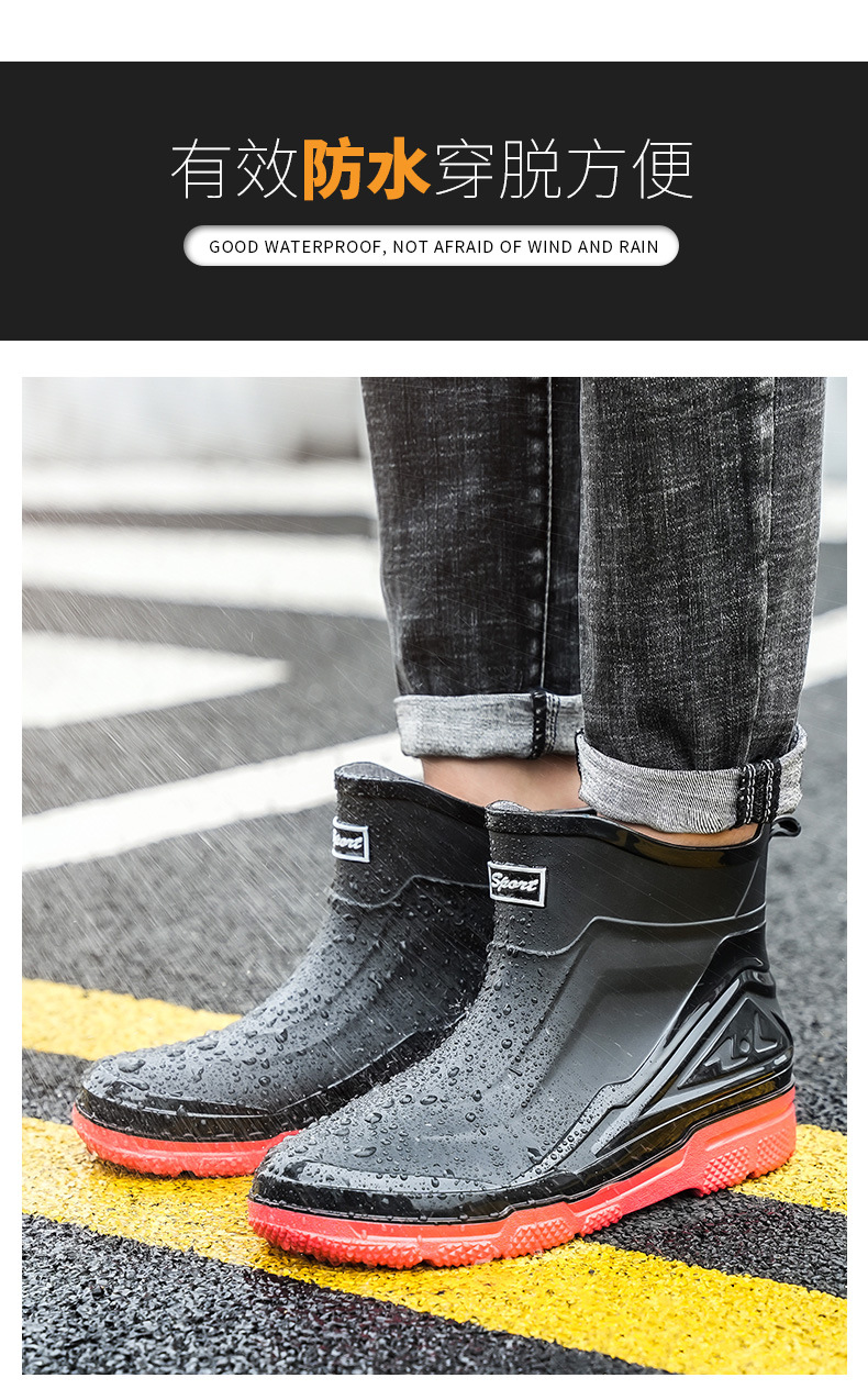 비 부츠 남성용 중간 튜브 레인 부츠 낮은 튜브 워터 슈즈 패션 미끄럼 방지 방수 짧은 튜브 두꺼운 바닥 PVC 내마모성 재고