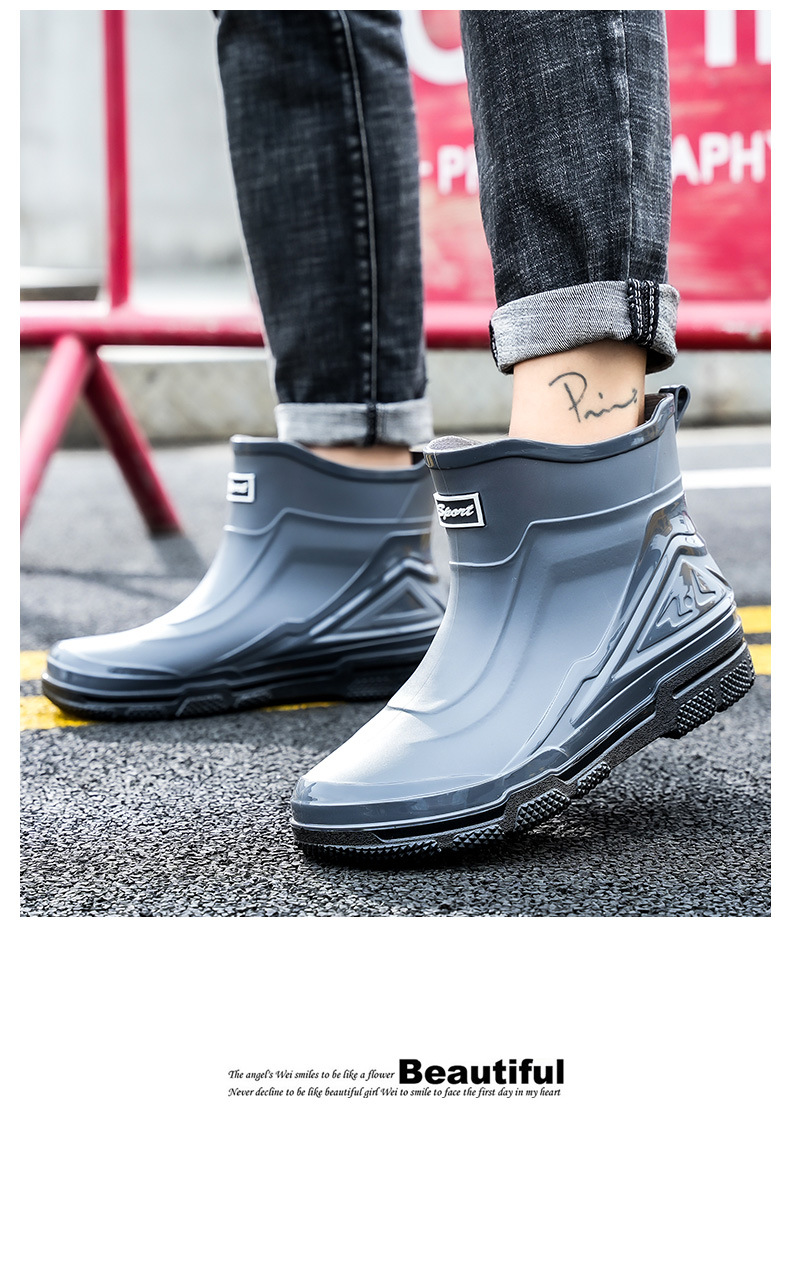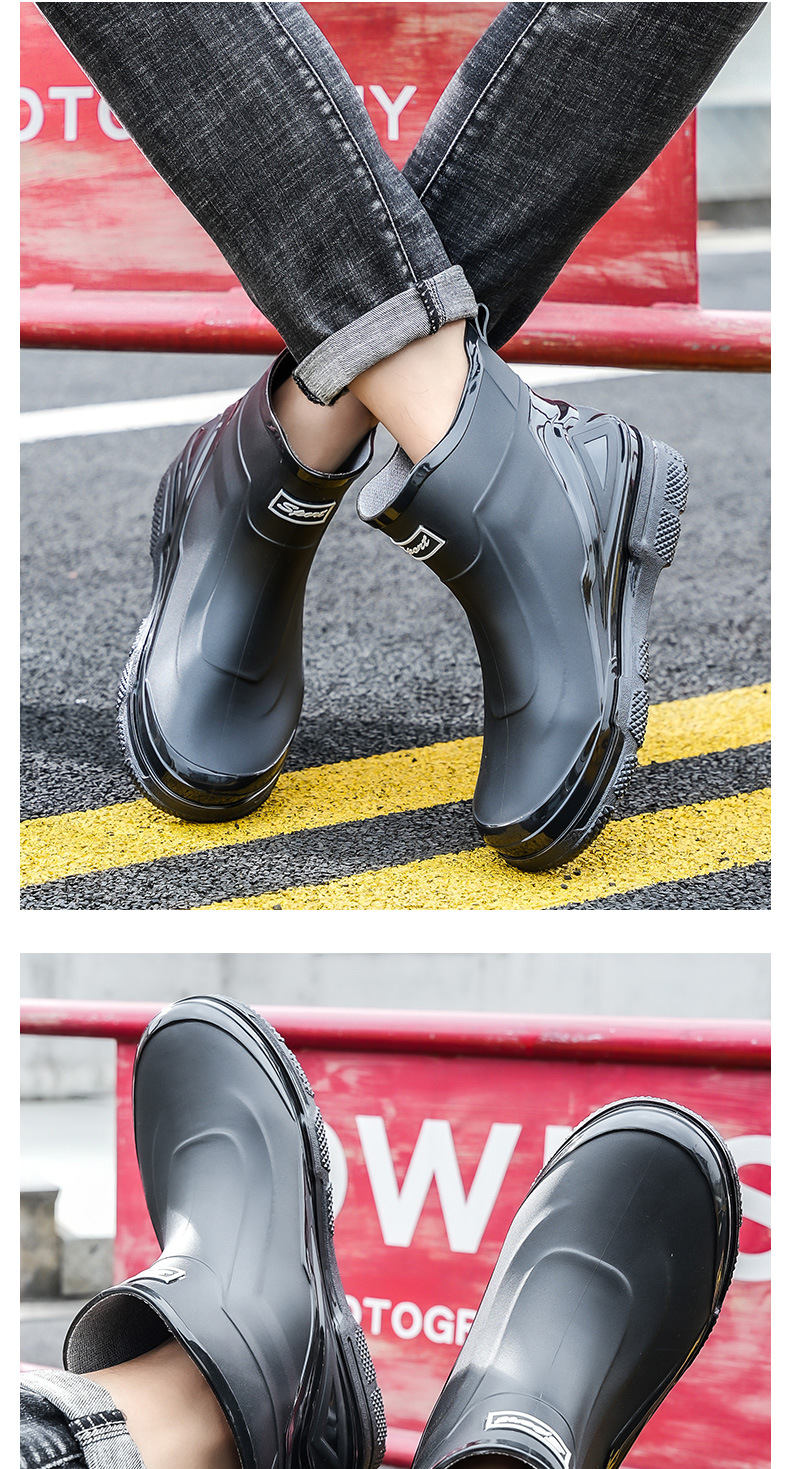 비 부츠 남성용 중간 튜브 레인 부츠 낮은 튜브 워터 슈즈 패션 미끄럼 방지 방수 짧은 튜브 두꺼운 바닥 PVC 내마모성 재고스토어 가기