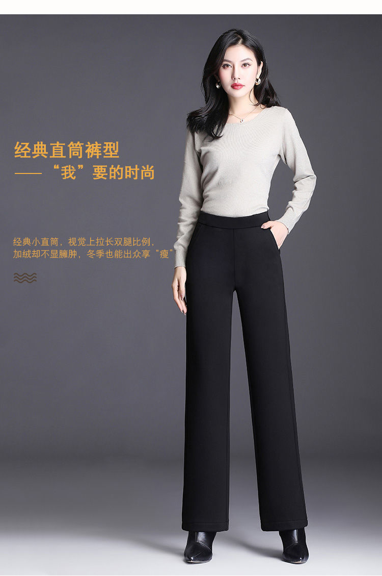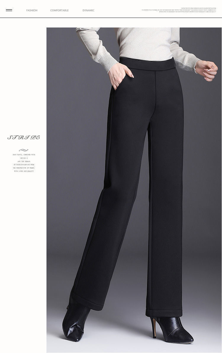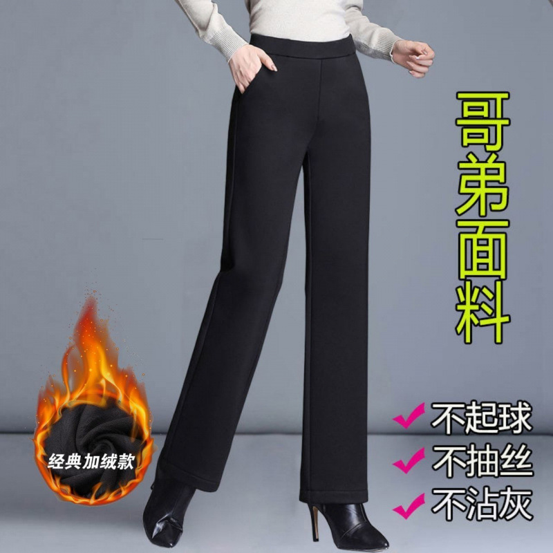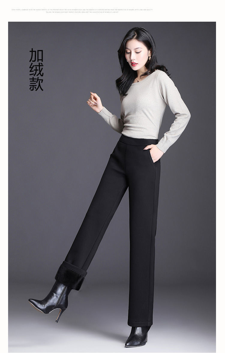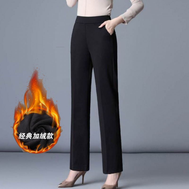 여성의 긴 직선 다리 바지 봄 가을과 겨울 새로운 높은 허리 엄마의 캐주얼 바지 기모 느슨한 슬리밍 바지