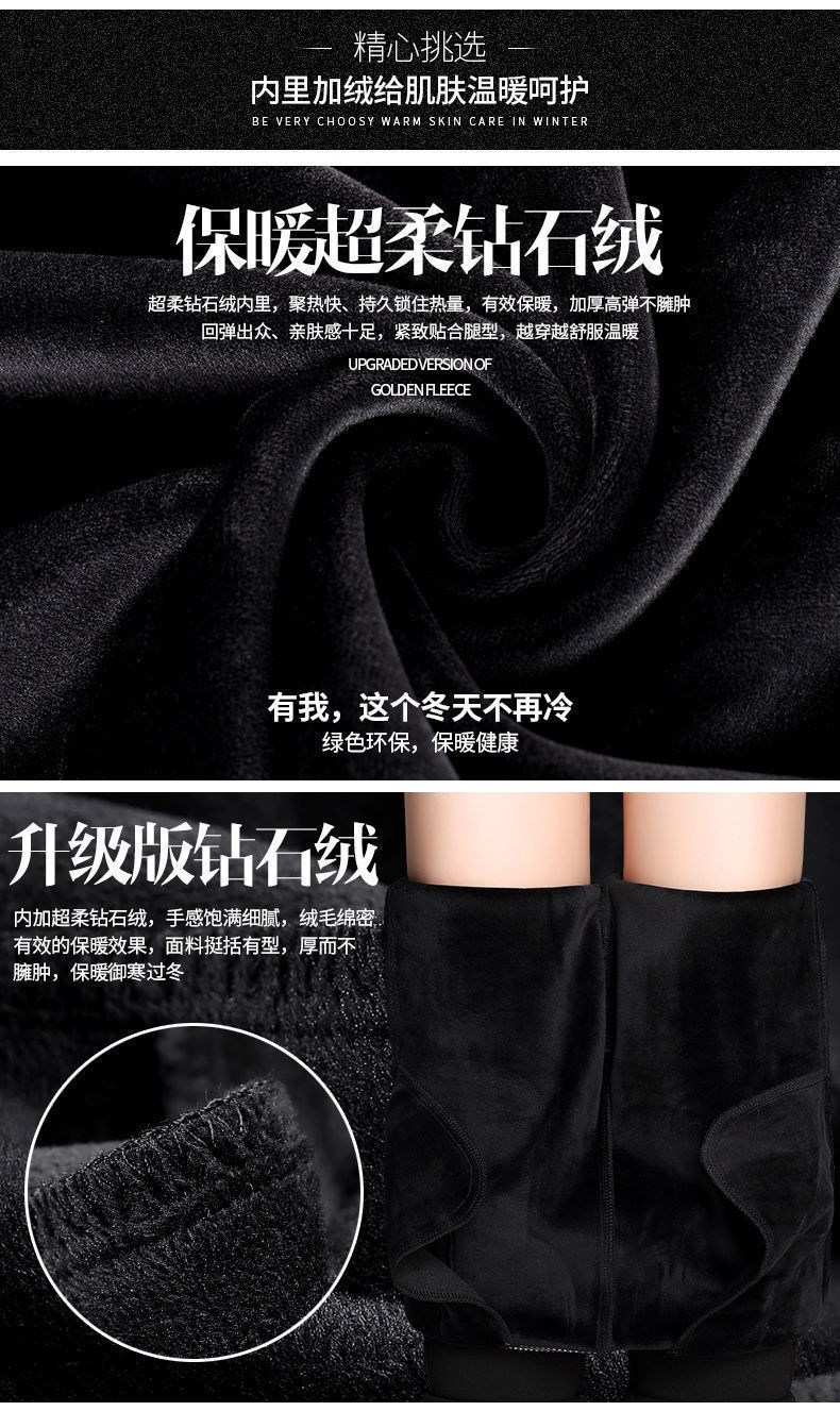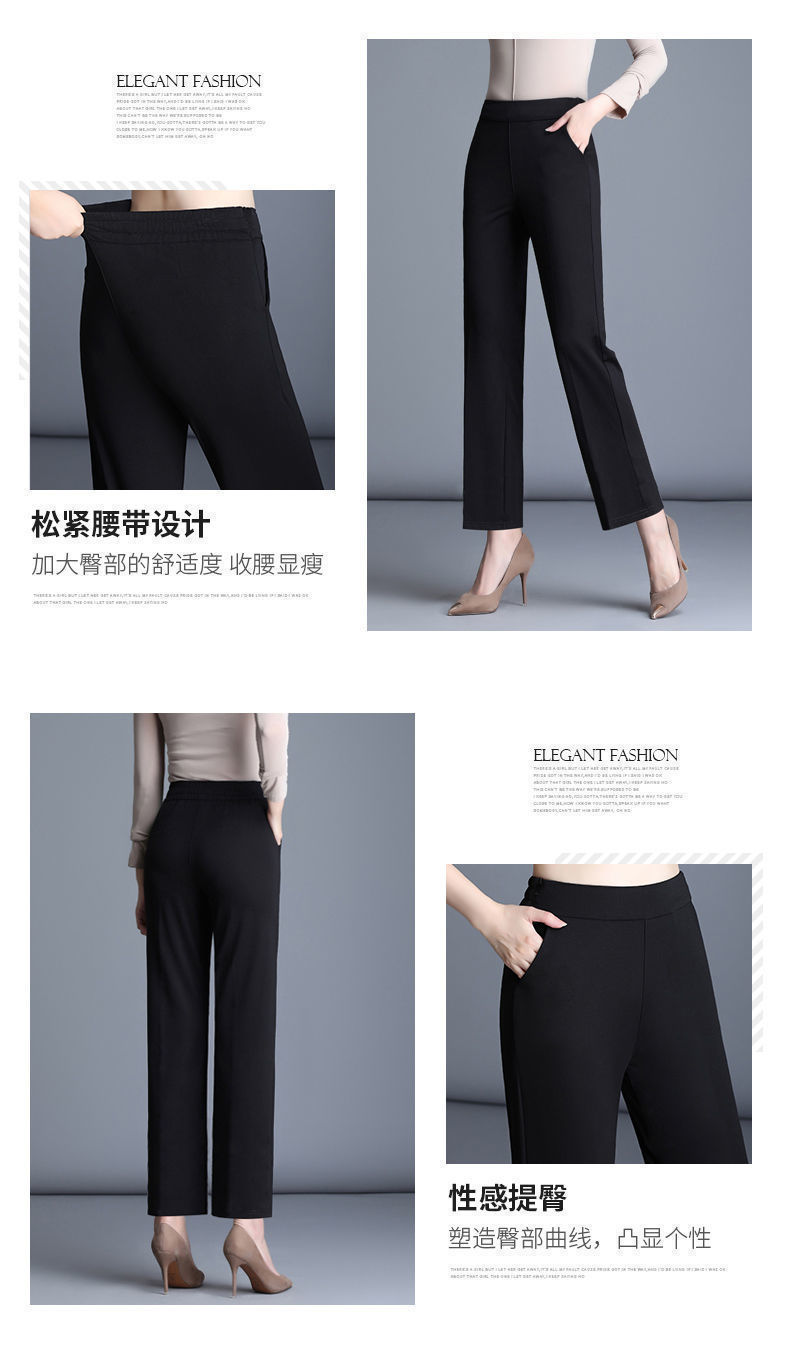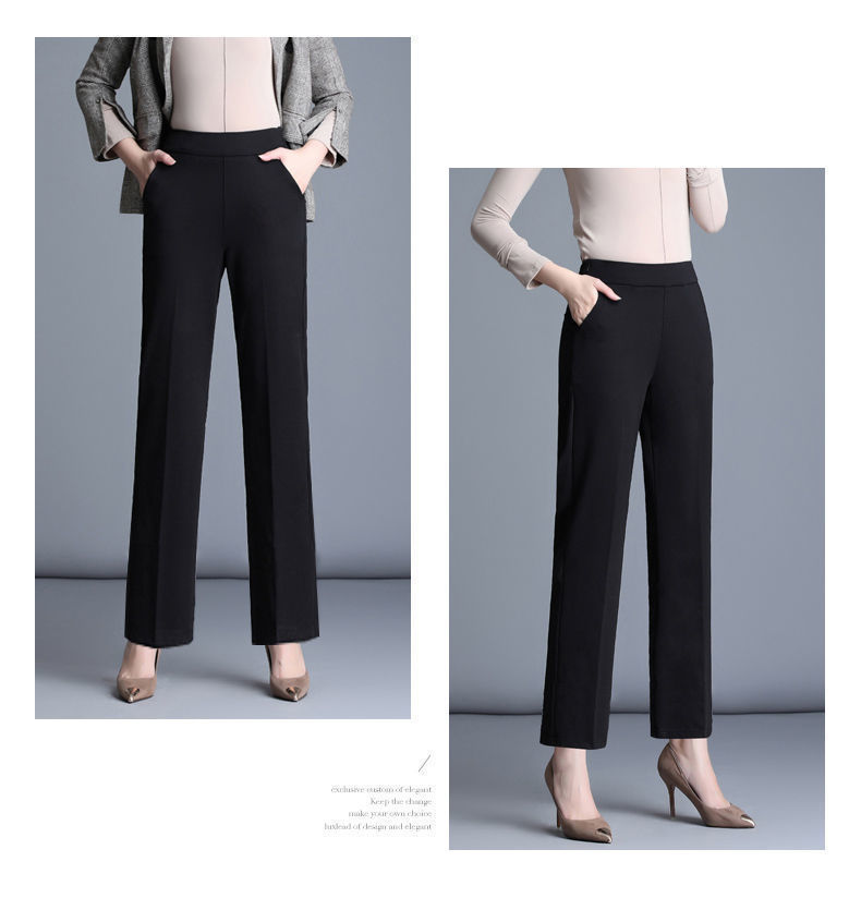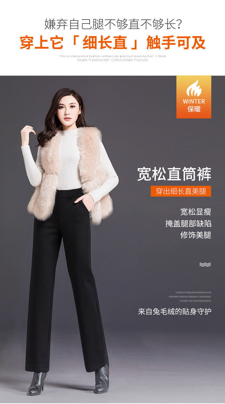 여성의 긴 직선 다리 바지 봄 가을과 겨울 새로운 높은 허리 엄마의 캐주얼 바지 기모 느슨한 슬리밍 바지
