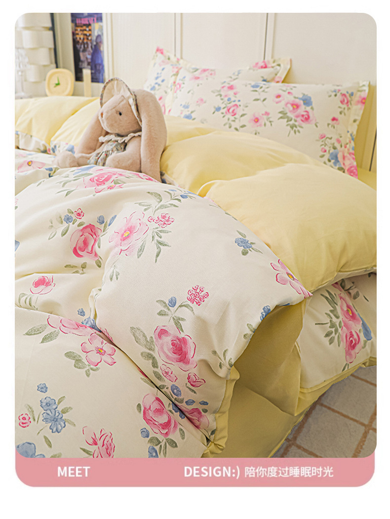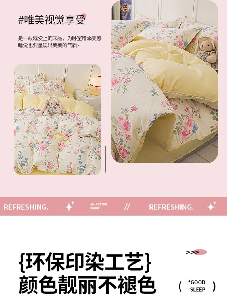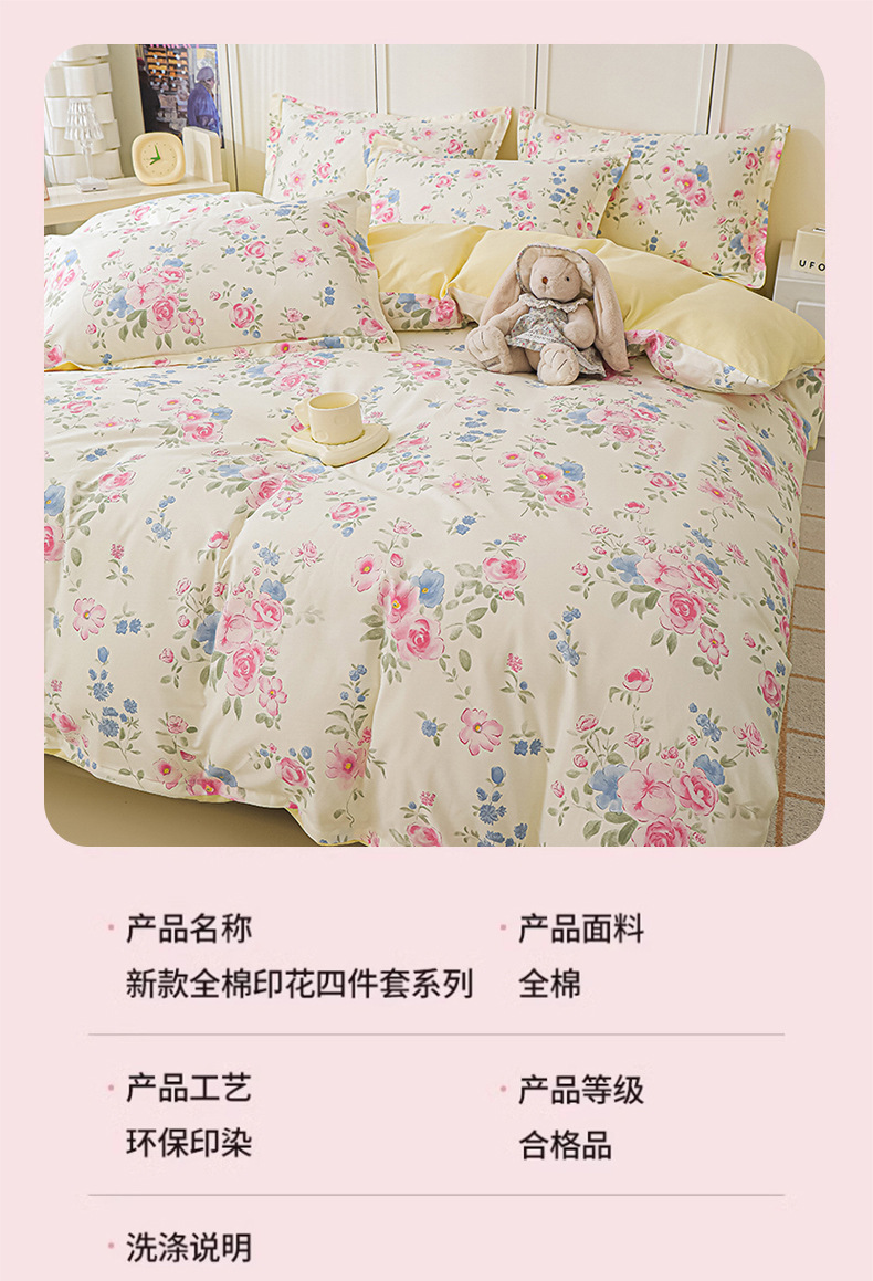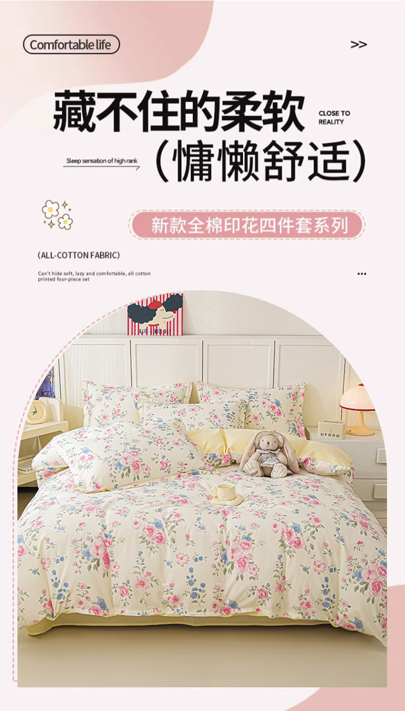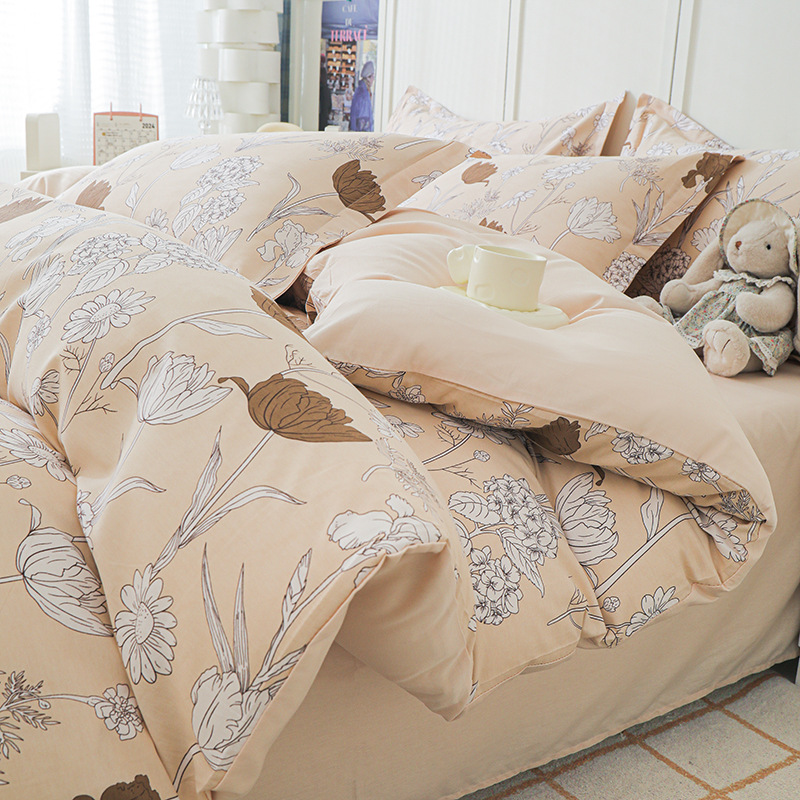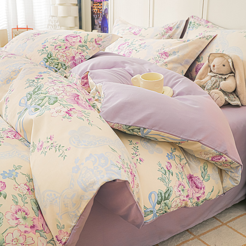 Nantong 홈 섬유 라이트 럭셔리 하이 엔드 퀼트 커버 4 피스 세트 코튼 침구 퀼트 커버 침대 시트 3 피스 세트스토어 가기