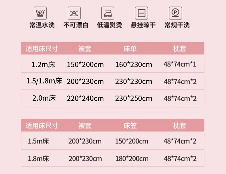 • 1.8m 침대 [시트 4개 세트] - 200x230cm 이불심에 적합