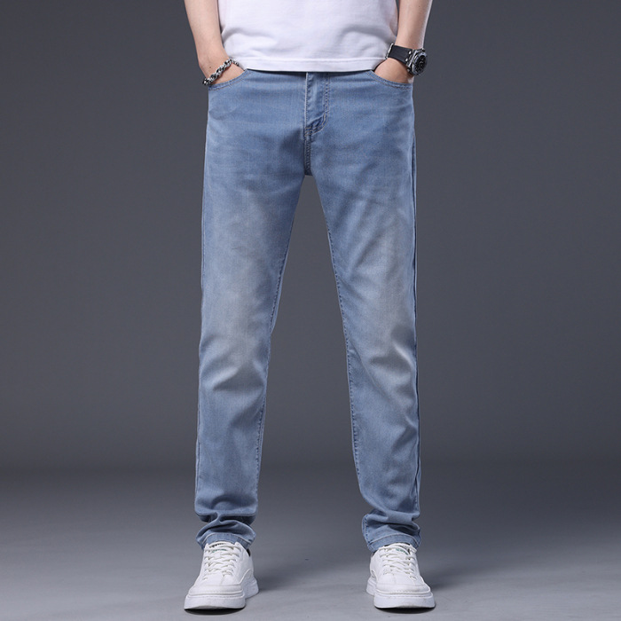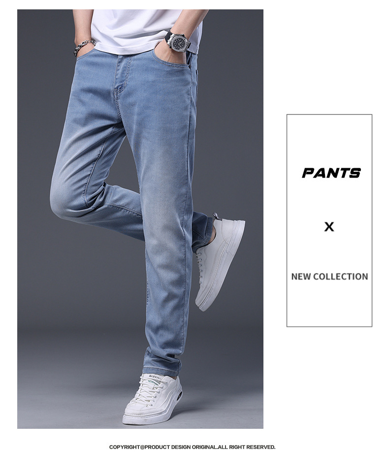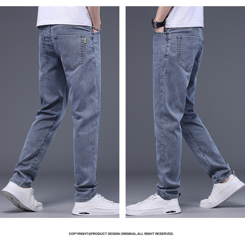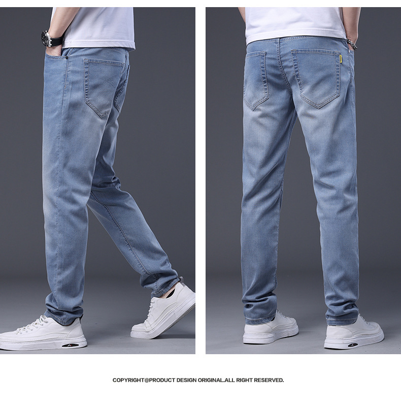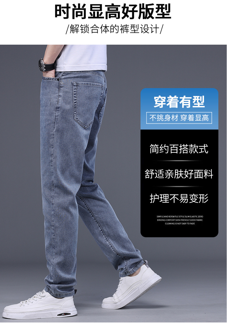 봄과 여름 2025 새로운 아이스 실크 텐셀 쿨 탄성 조명 와이드 Lyocell 작은 스트레이트 튜브 남성용 청바지 얇은 958스토어 가기