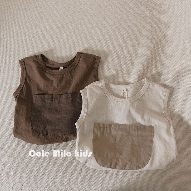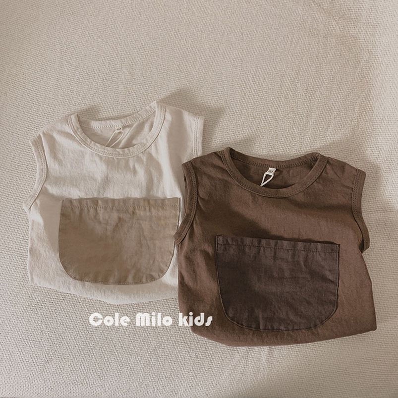 소년 소녀 여름 티셔츠 아기의 서양식 어린이 성격 유행 브랜드 모리 스타일 예술적 색상 매칭 대형 포켓 탑스토어 가기