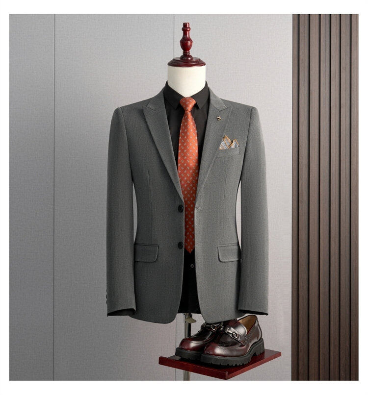 봄 한국식 세트 남성용 슬림 핏 캐주얼 영국 프로페셔널 착용 작은 세트 컬러 자켓 신장의 웨딩 원피스 패션
