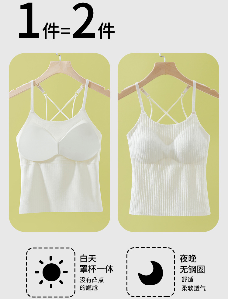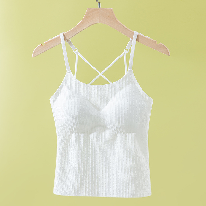 프랑스 화이트 카미 솔 배꼽 덮고있는 슬림베이스 아우터 크로스 아름다운 뒷면 트레이스리스 브라 원피스 얇은 가슴 패드
