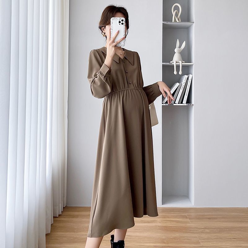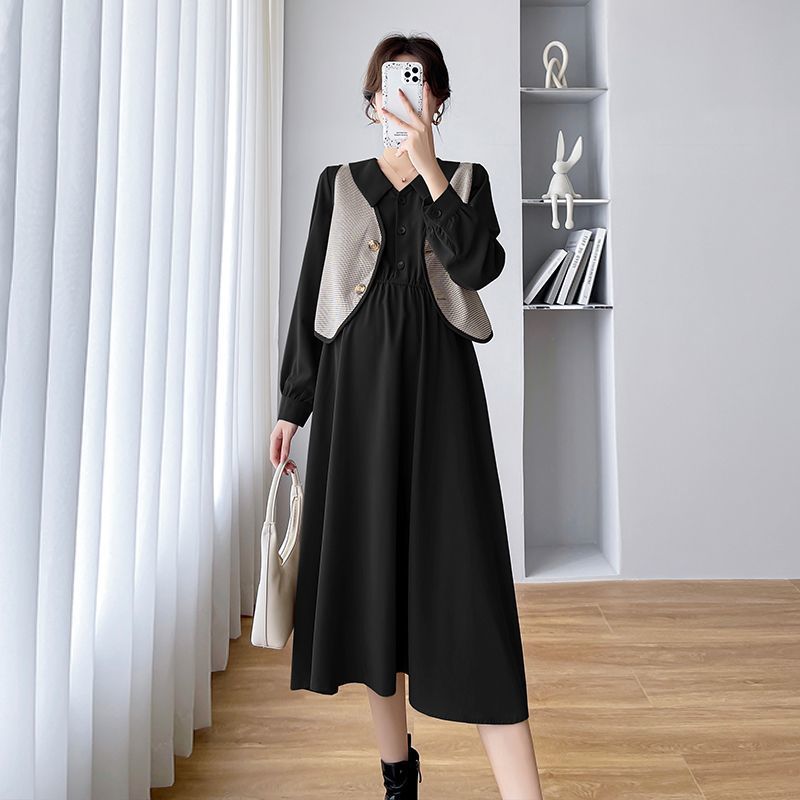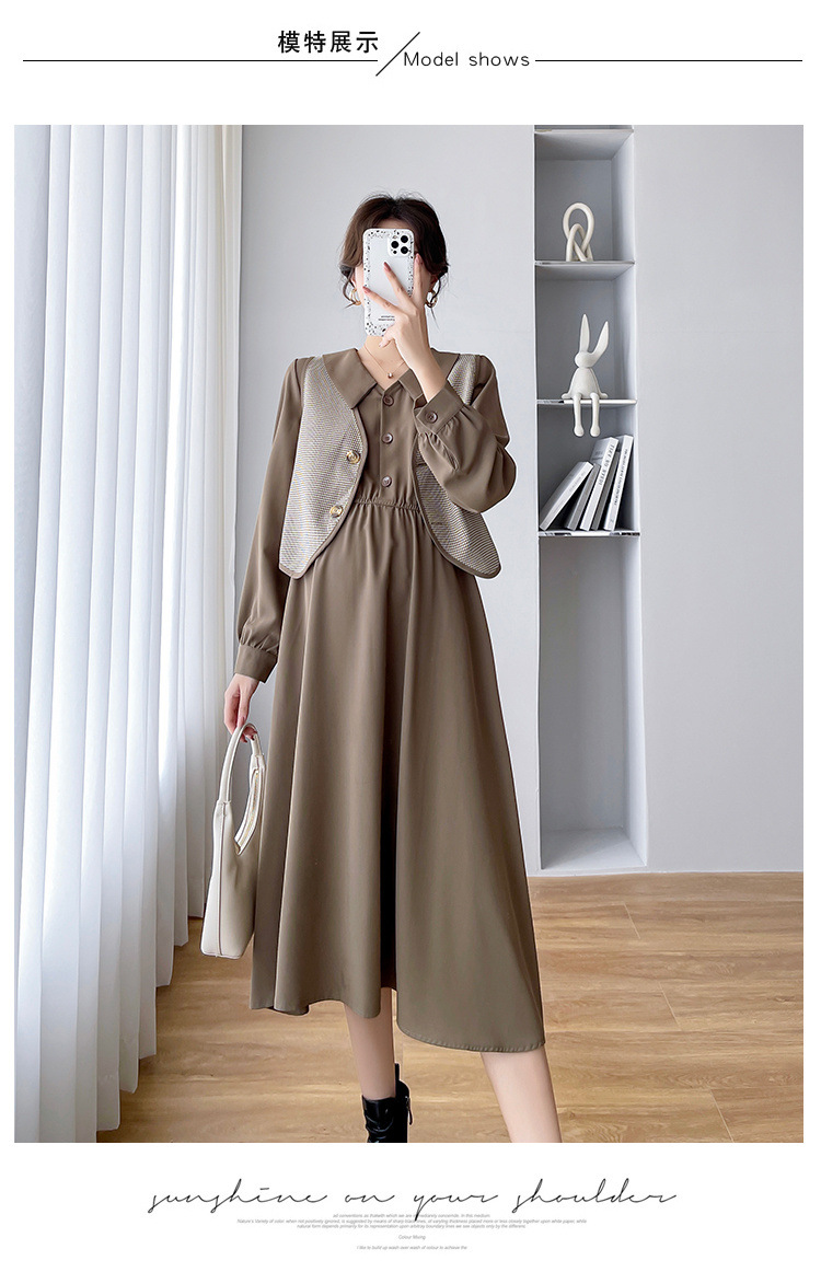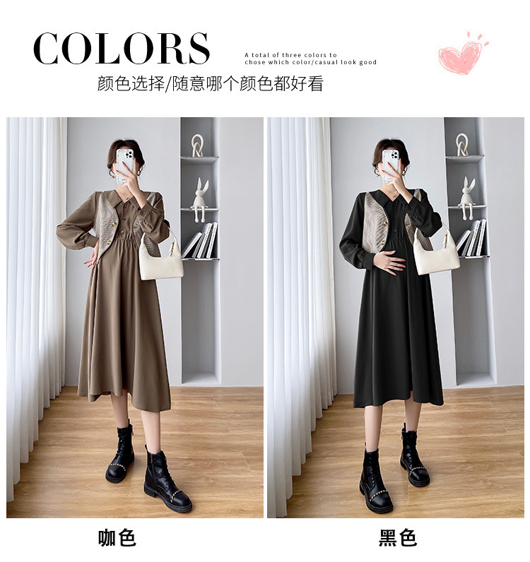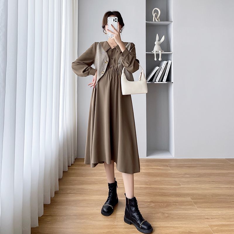 임신과 양육 이중 사용 2024 봄과 가을 새로운 패션 중간 길이의 인터넷 빨간 조끼 셔츠 원피스 임산부 원피스 세트