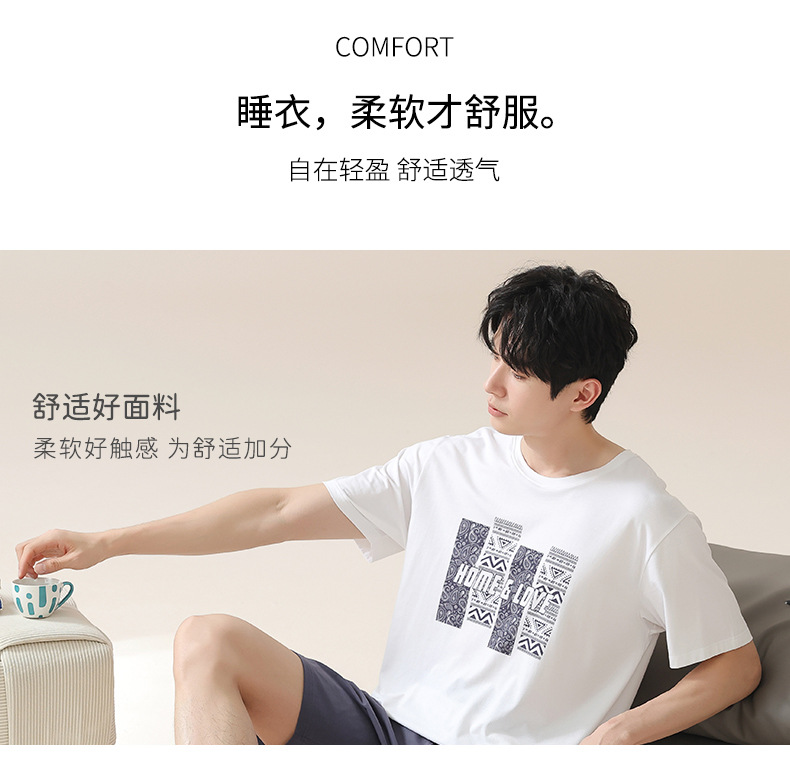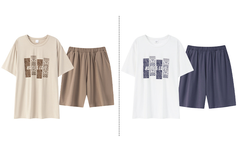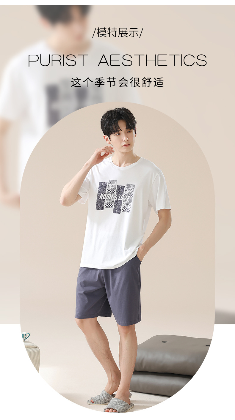 잠옷 남성용 순면 여름 반소매 반바지 풀오버 한국식 아웃웨어 청소년 얇은 홈 의류 캐주얼 세트스토어 가기
