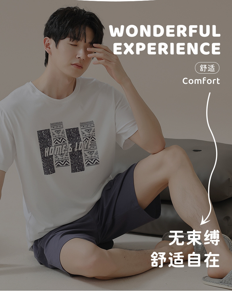 잠옷 남성용 순면 여름 반소매 반바지 풀오버 한국식 아웃웨어 청소년 얇은 홈 의류 캐주얼 세트