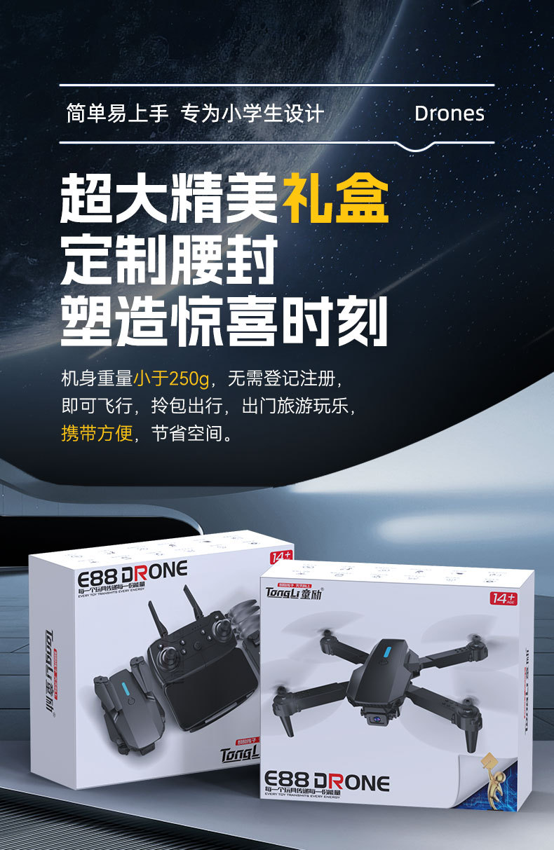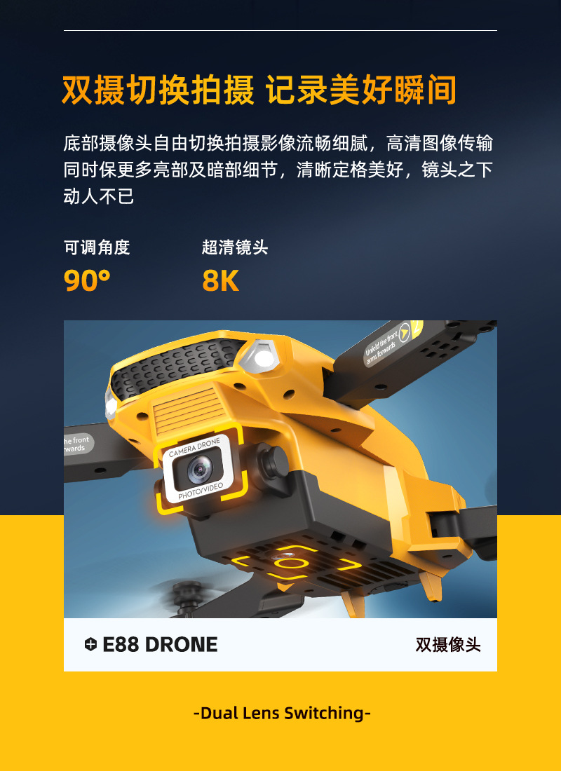 국경 간 e88 원격 제어 드론 8k 긴 지구력 HD 항공 사진 미니 어린이 원격 제어 항공기 장난감 6-12 세스토어 가기