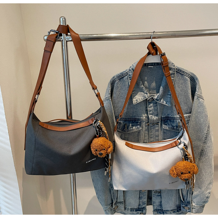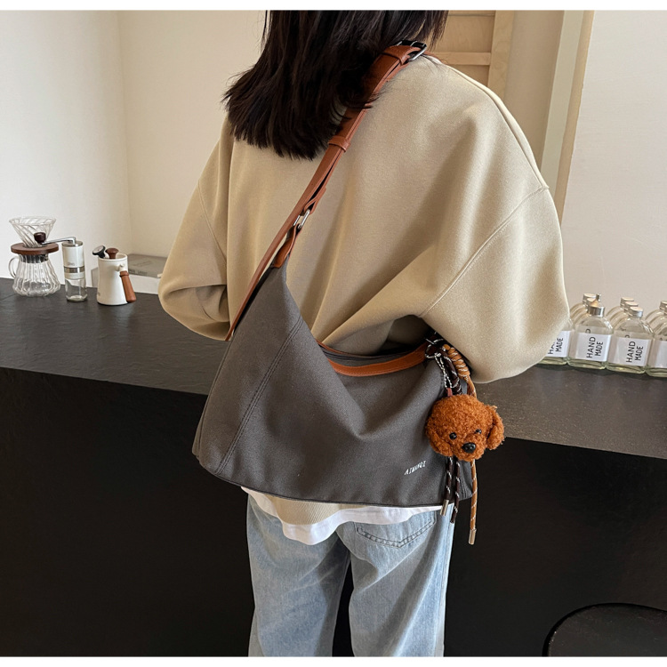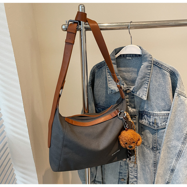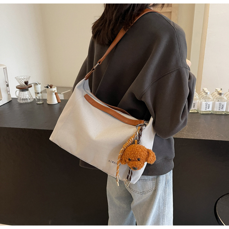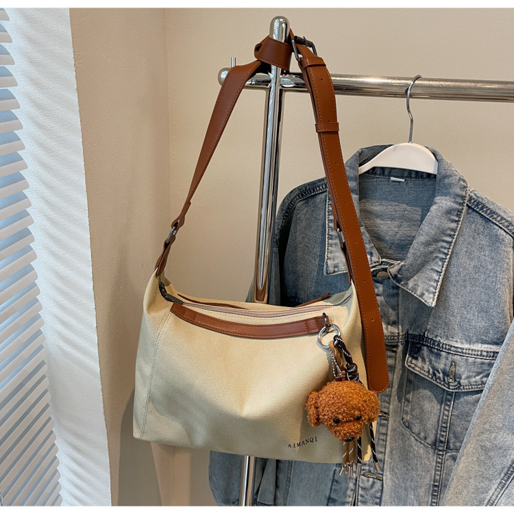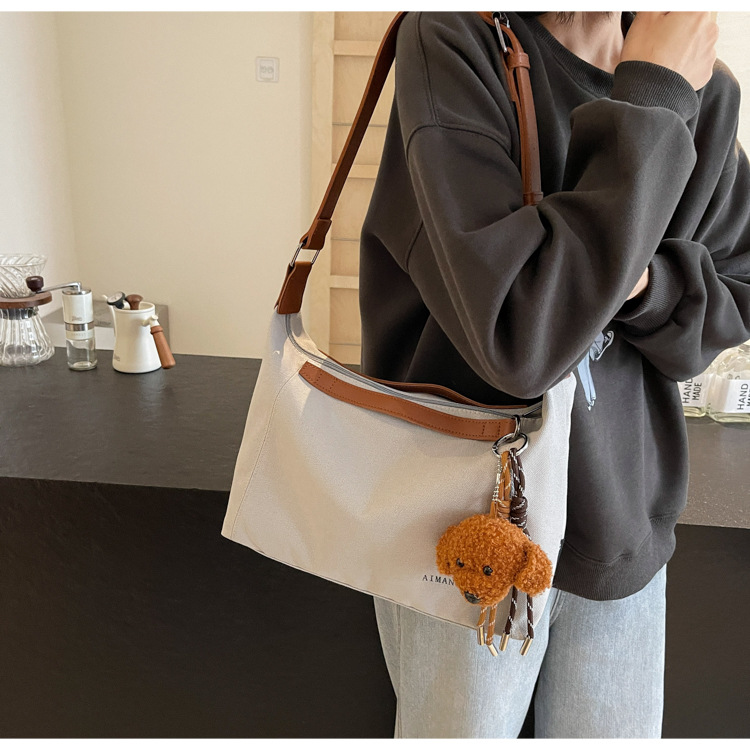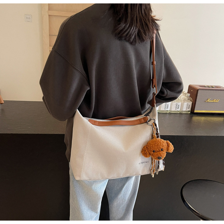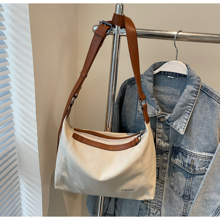 캐주얼 크로스 바디 캔버스 가방 여성 2025 봄 새로운 대용량 올 매치 토트 백 간단한 통근 어깨 가방
