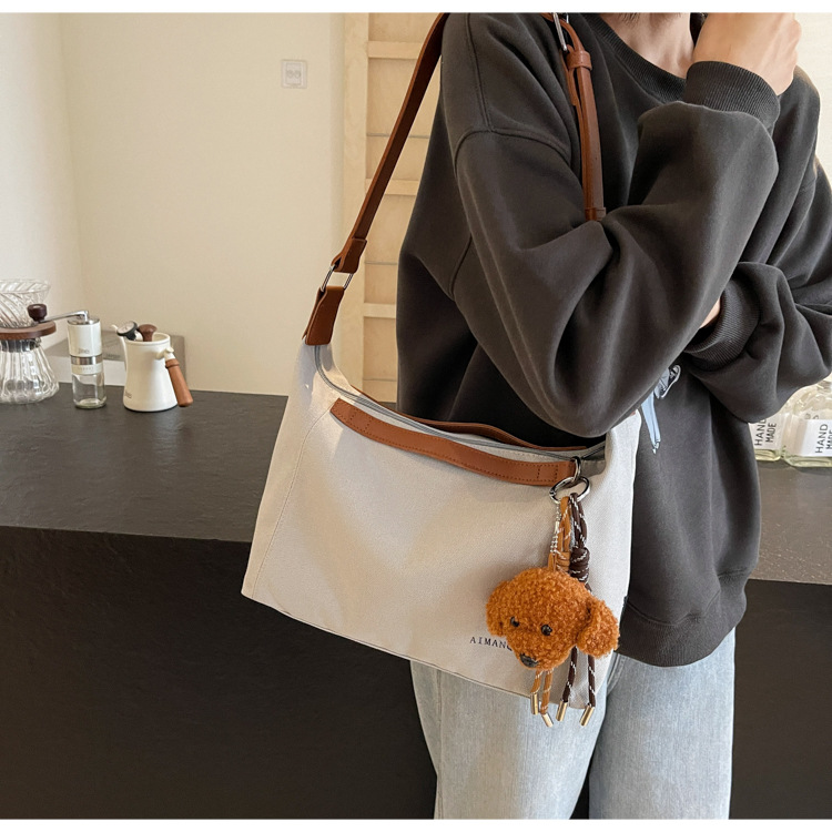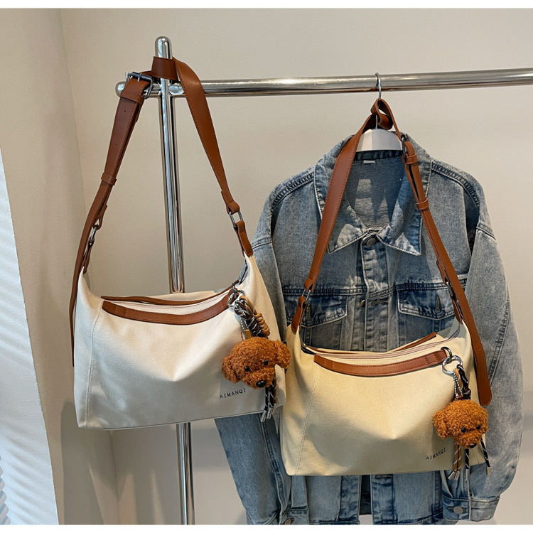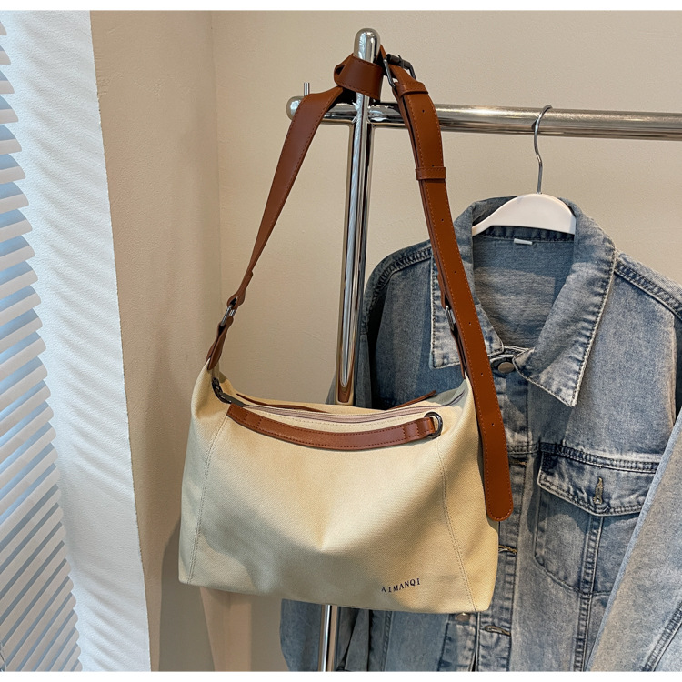 캐주얼 크로스 바디 캔버스 가방 여성 2025 봄 새로운 대용량 올 매치 토트 백 간단한 통근 어깨 가방스토어 가기