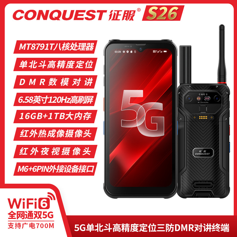 CONQUEST S26 스마트 3방지 5G 전체 네트워크 DMR 디지털-아날로그 인터콤 휴대폰 단일 Beidou 포지셔닝 터미널