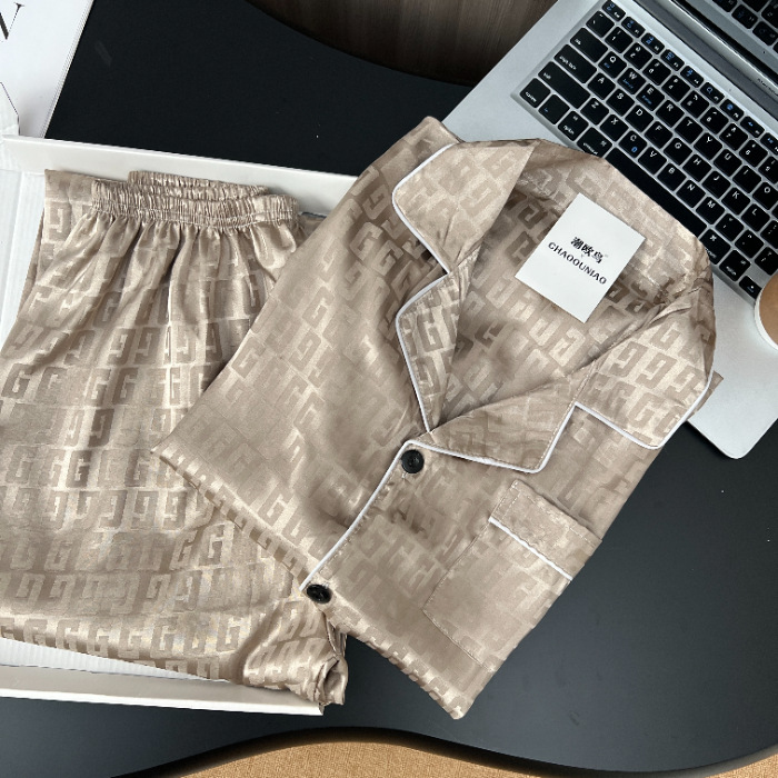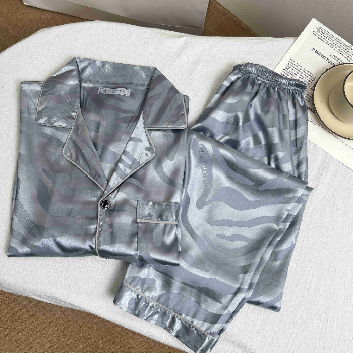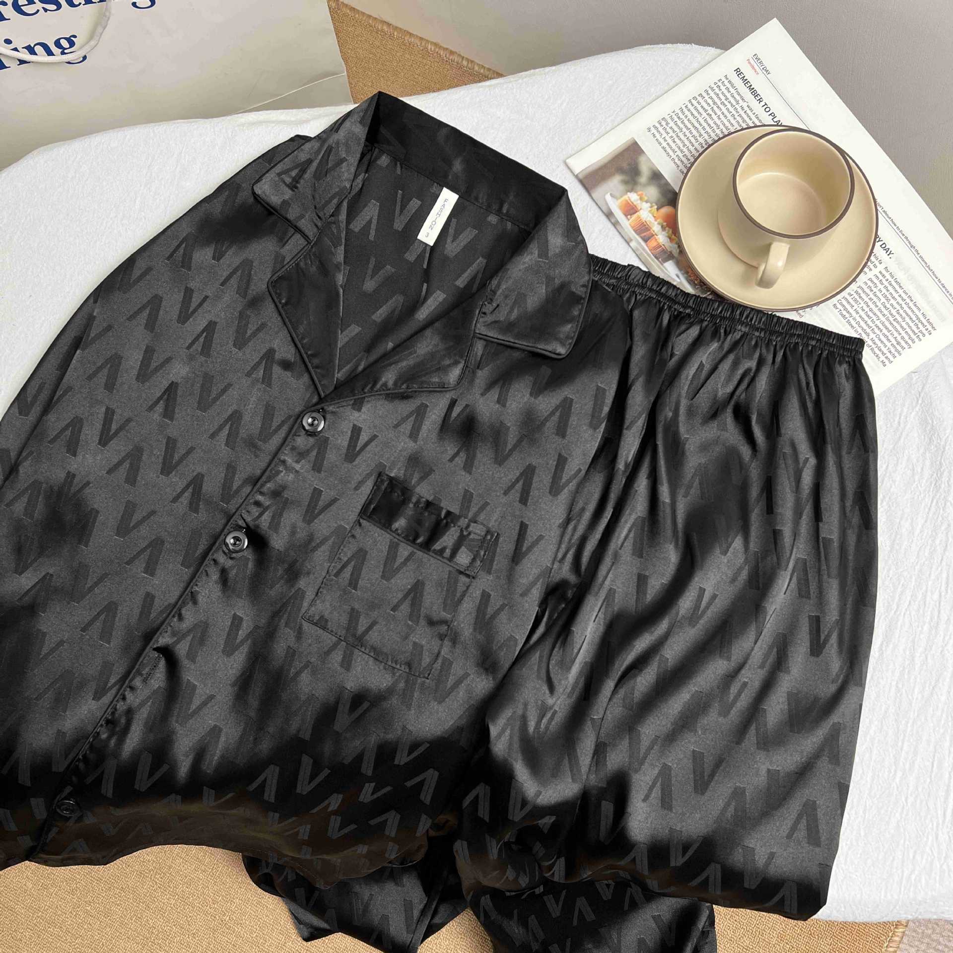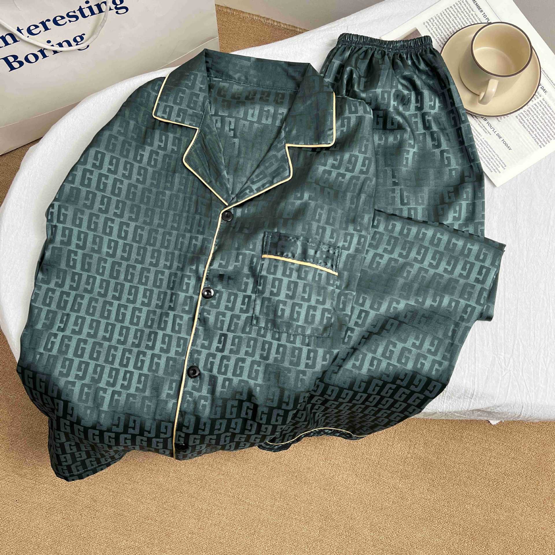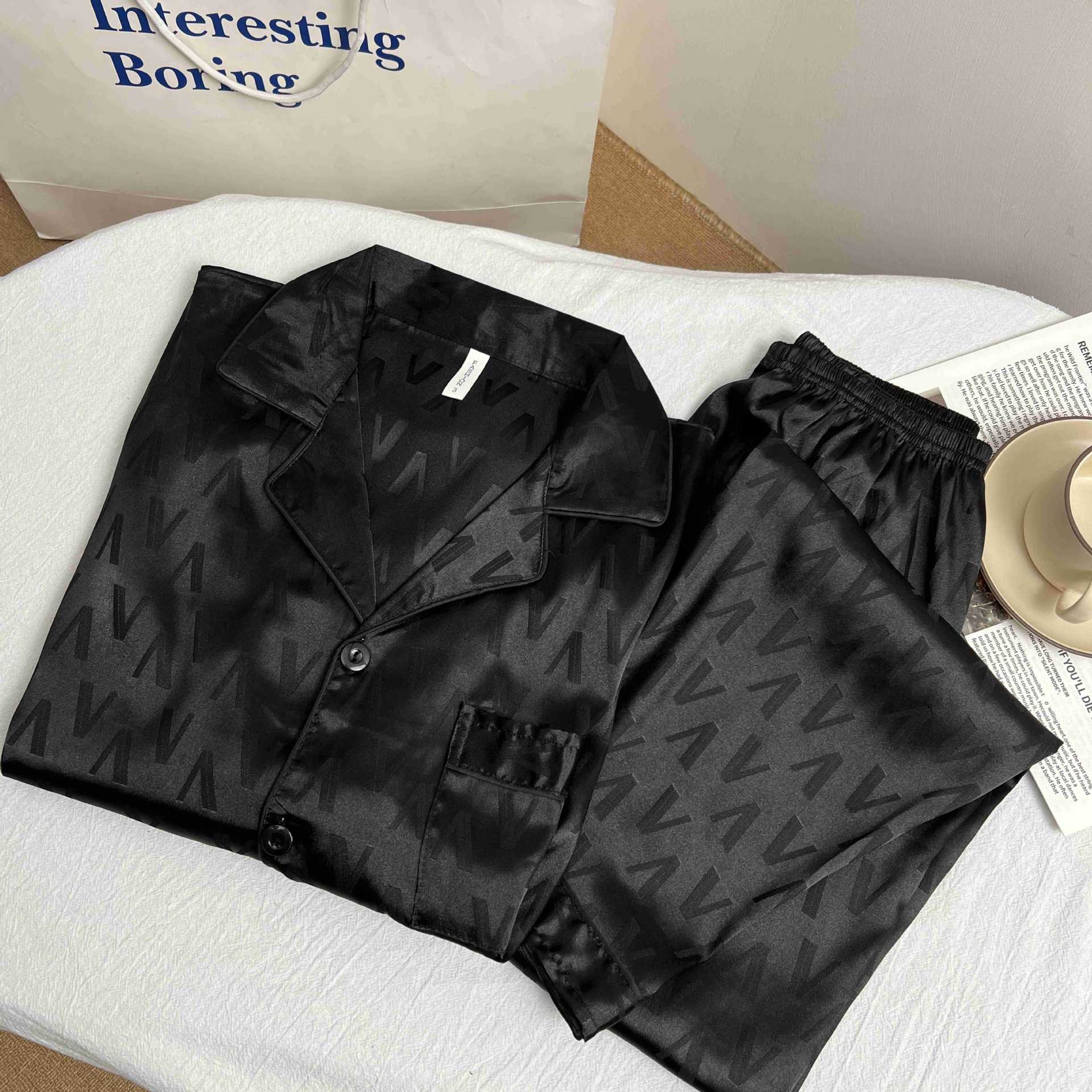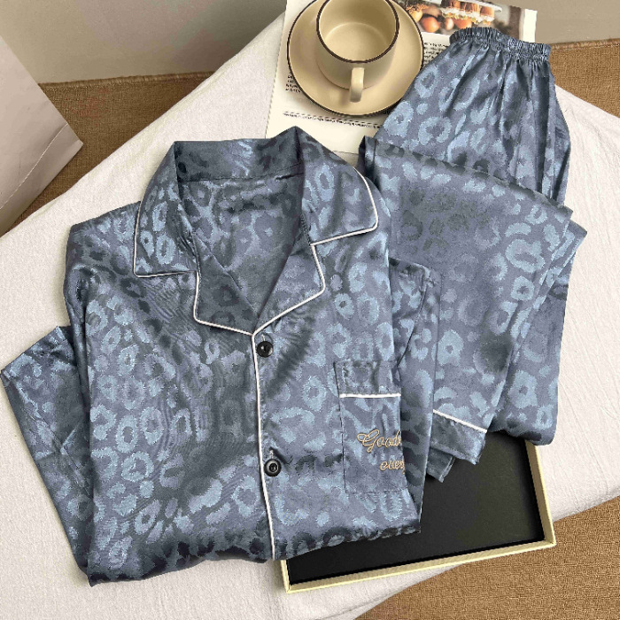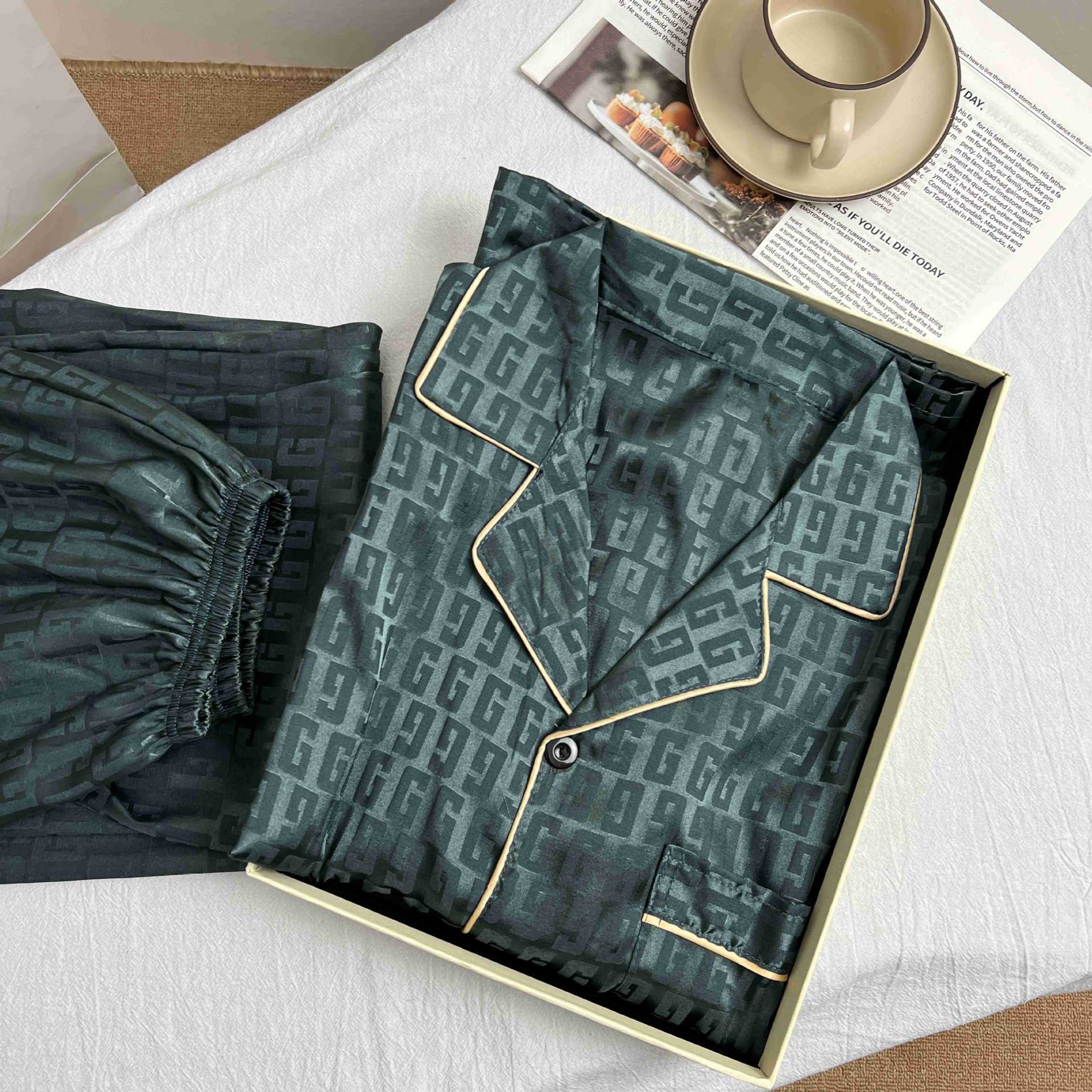 하이 엔드 봄과 여름 자카드 실크 파자마 남성용 카디건 긴팔 바지 라이트 럭셔리 홈 의류 세트스토어 가기
