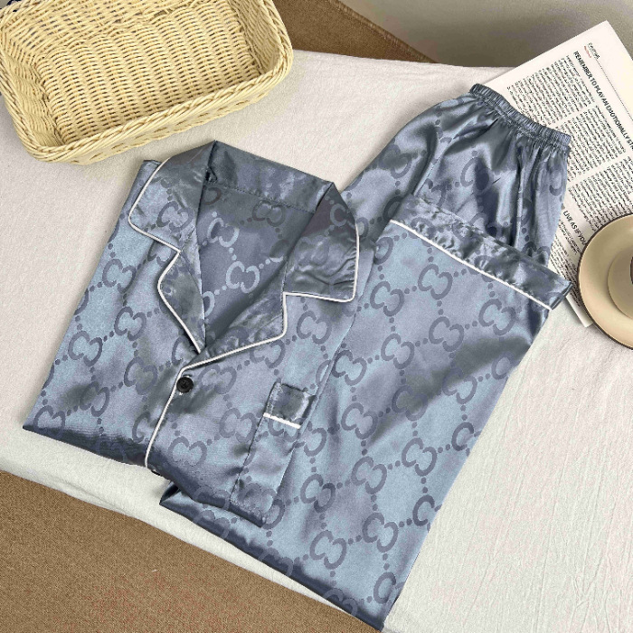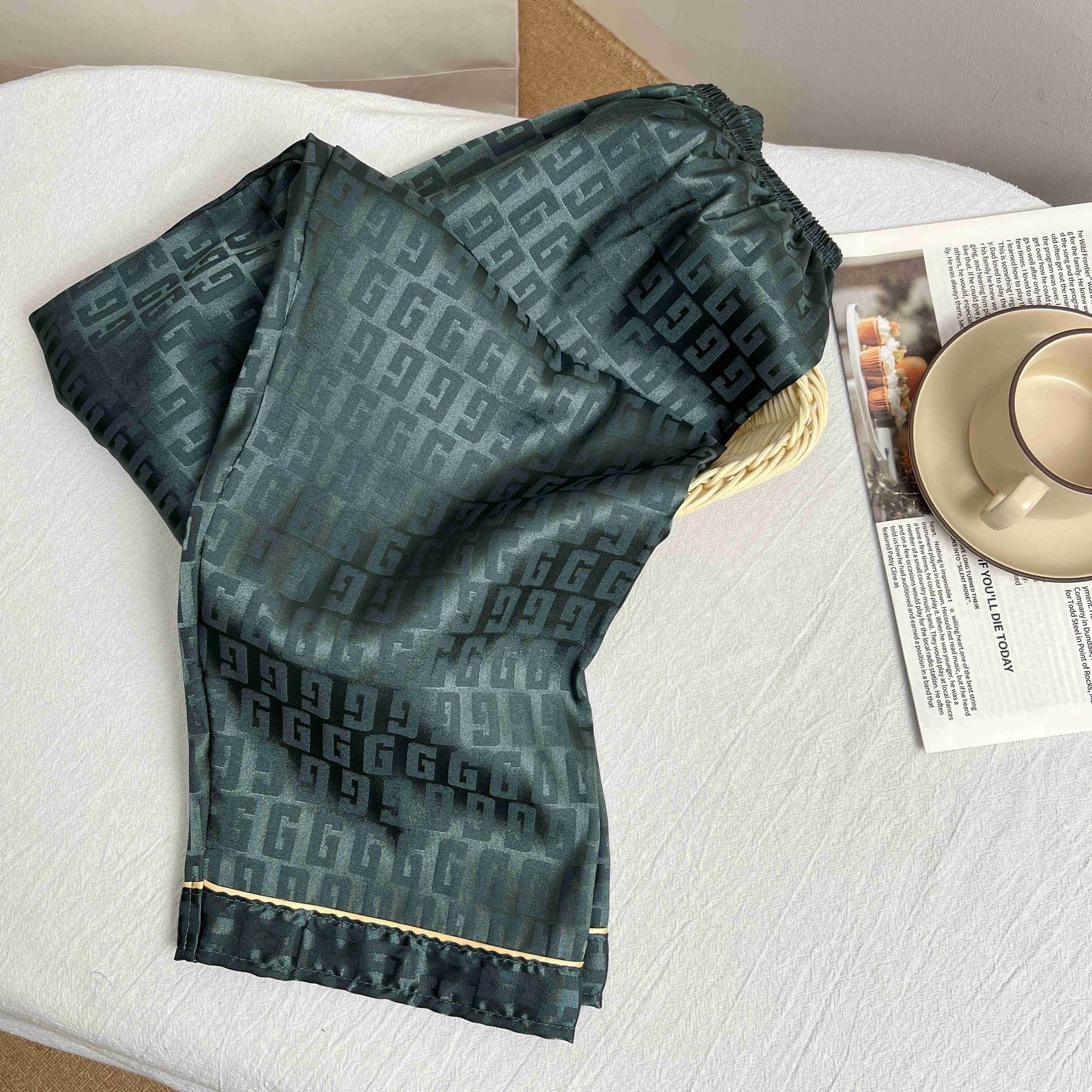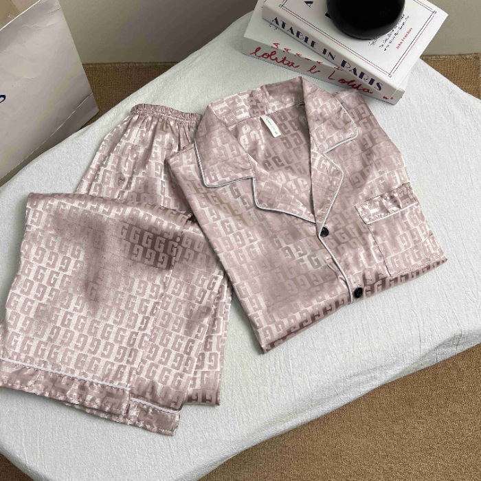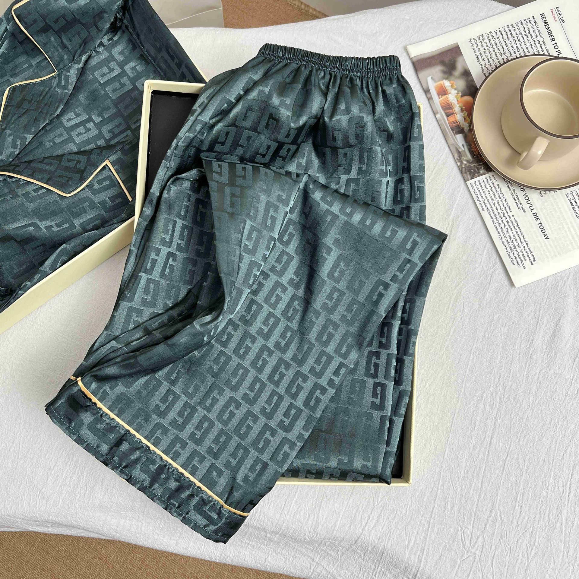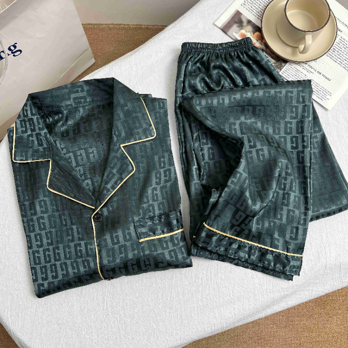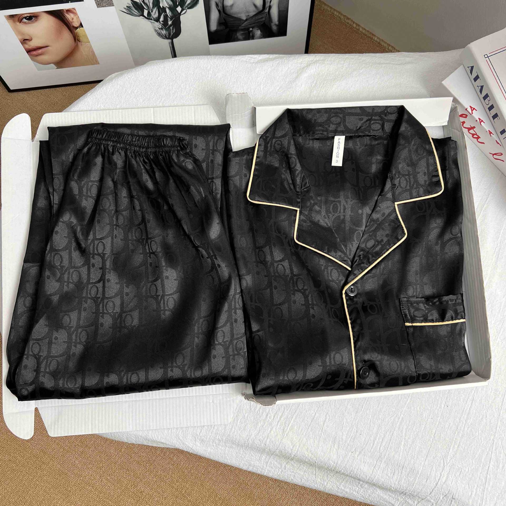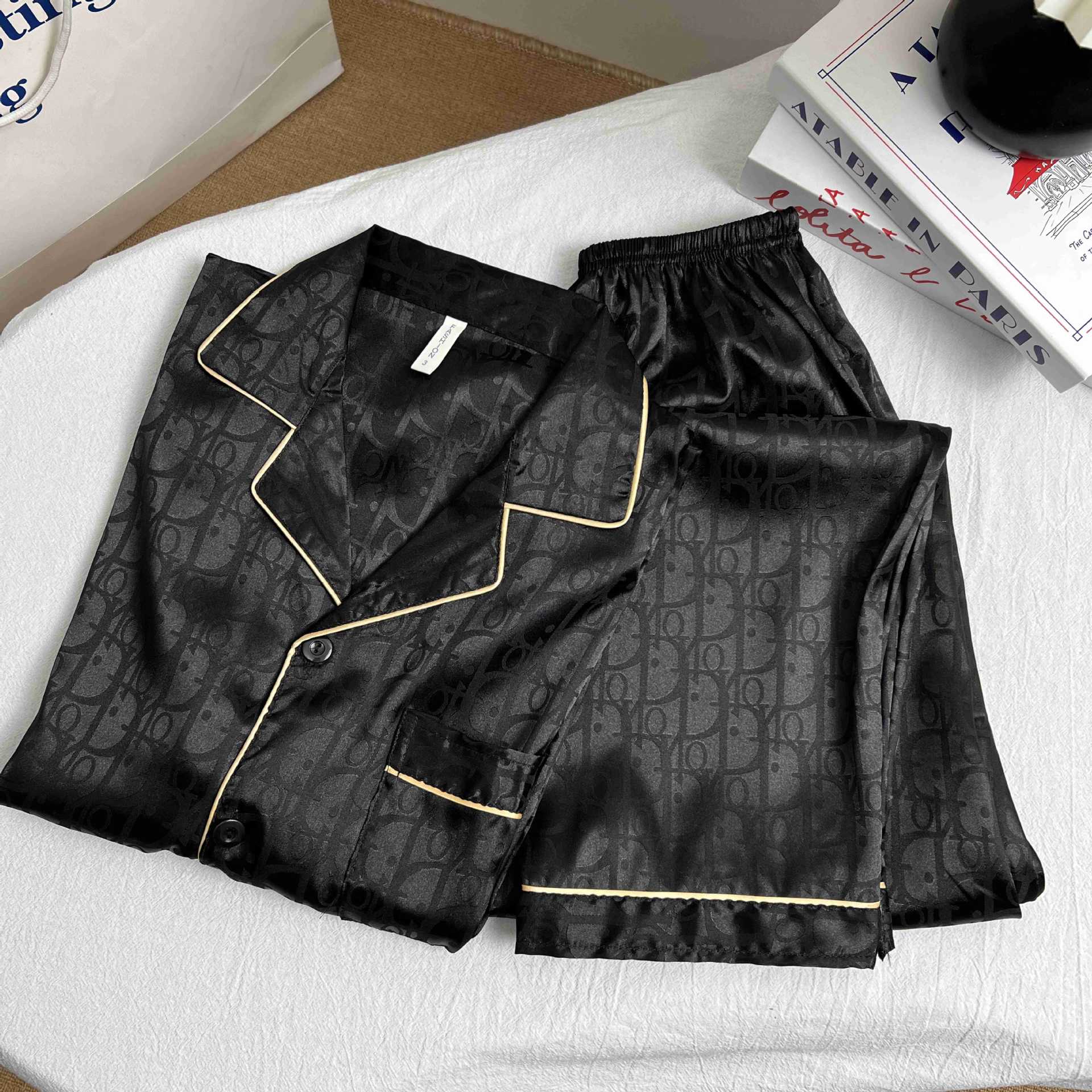 하이 엔드 봄과 여름 자카드 실크 파자마 남성용 카디건 긴팔 바지 라이트 럭셔리 홈 의류 세트스토어 가기