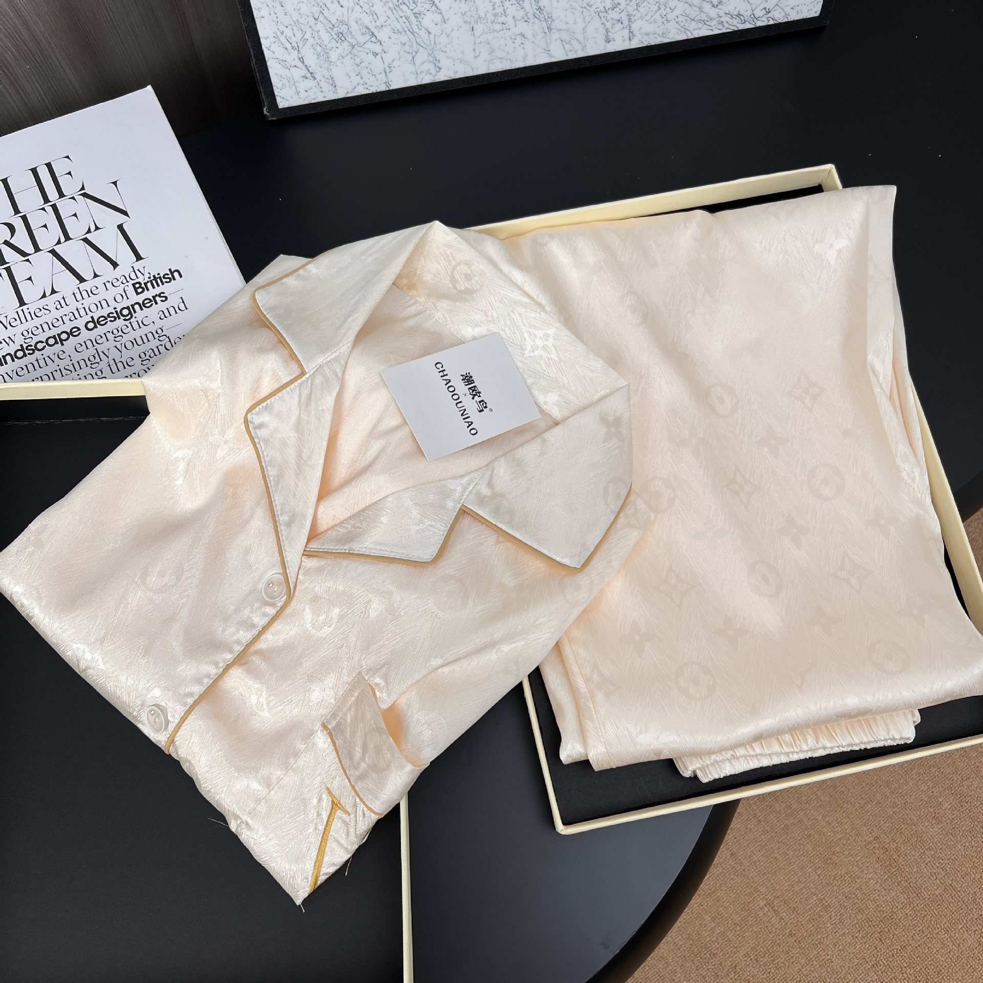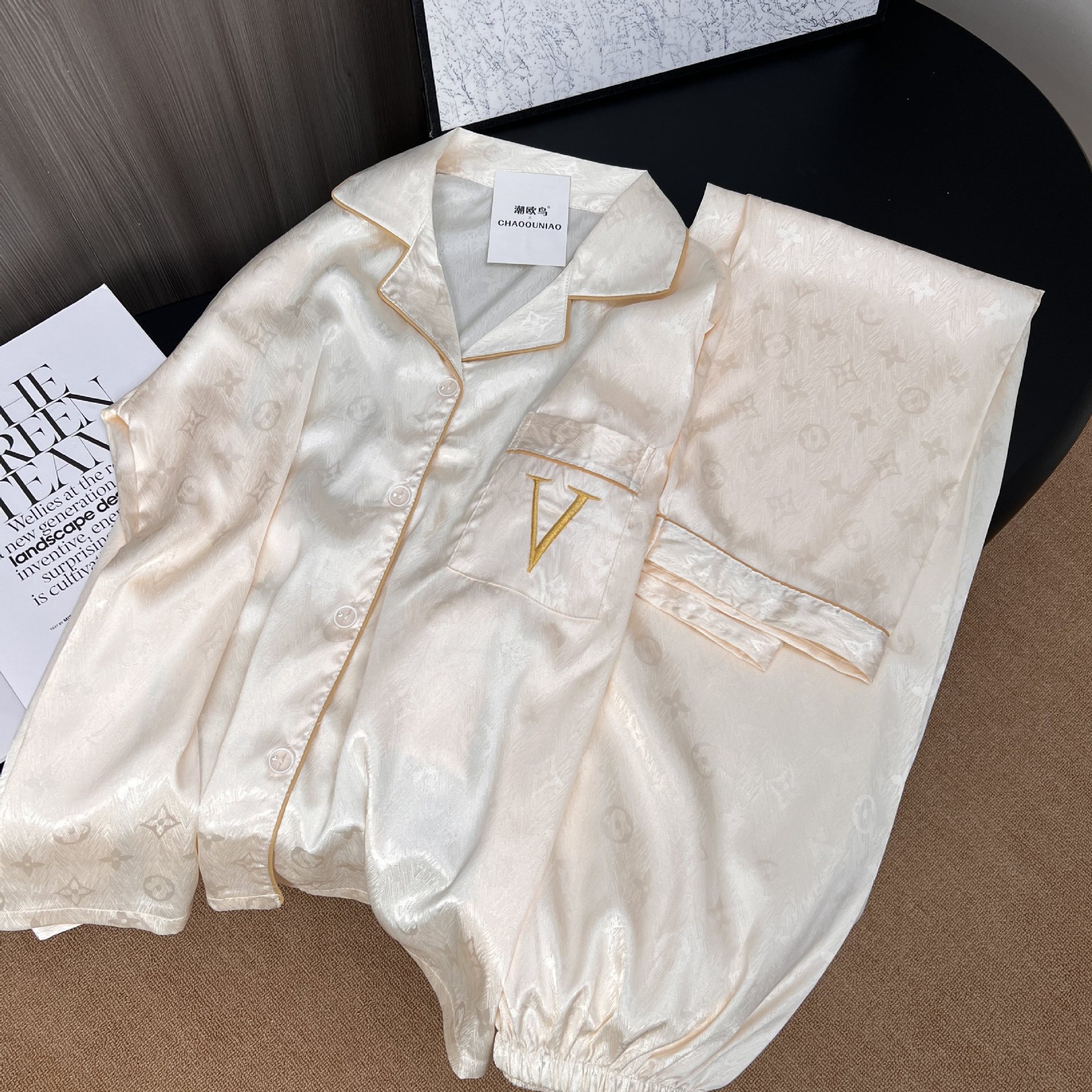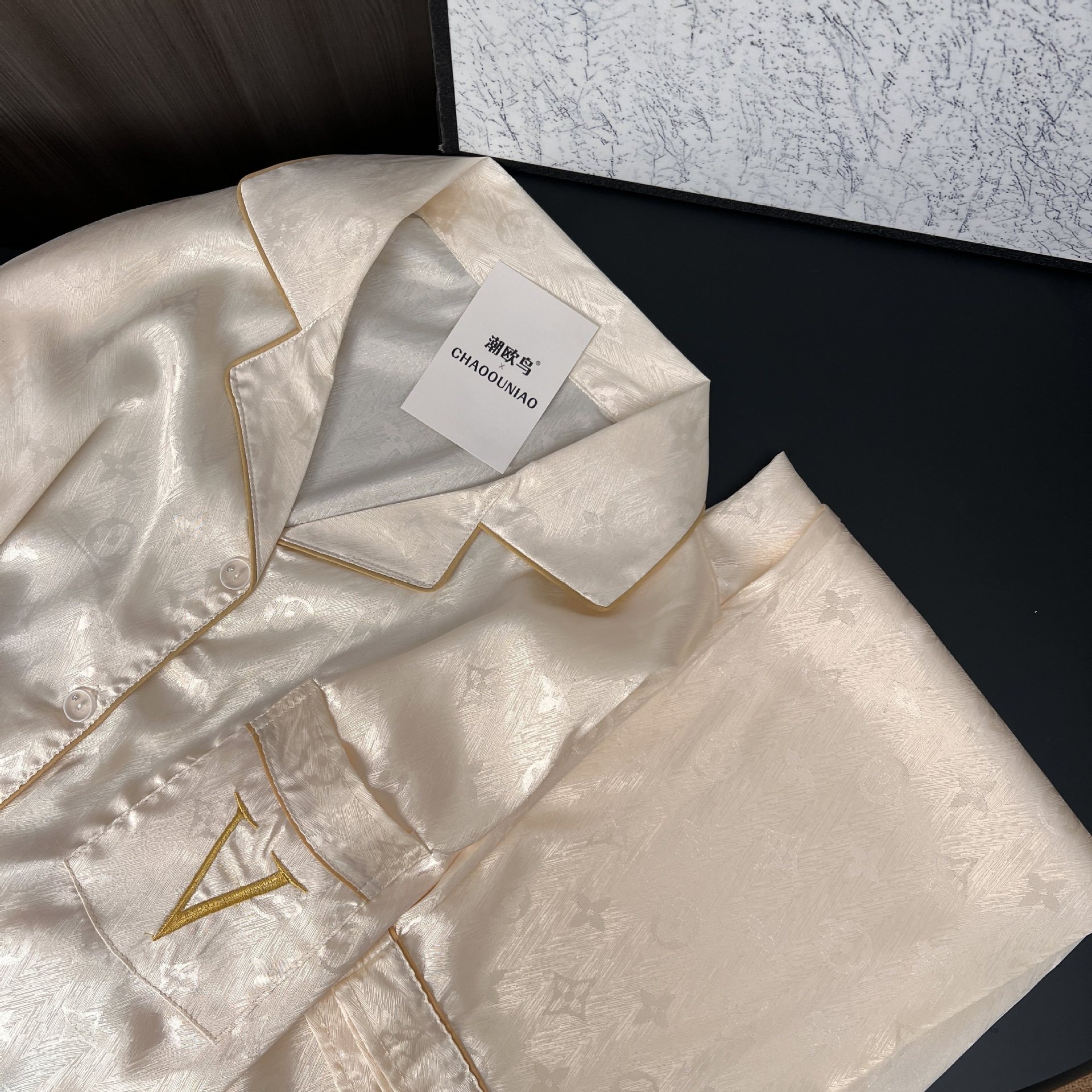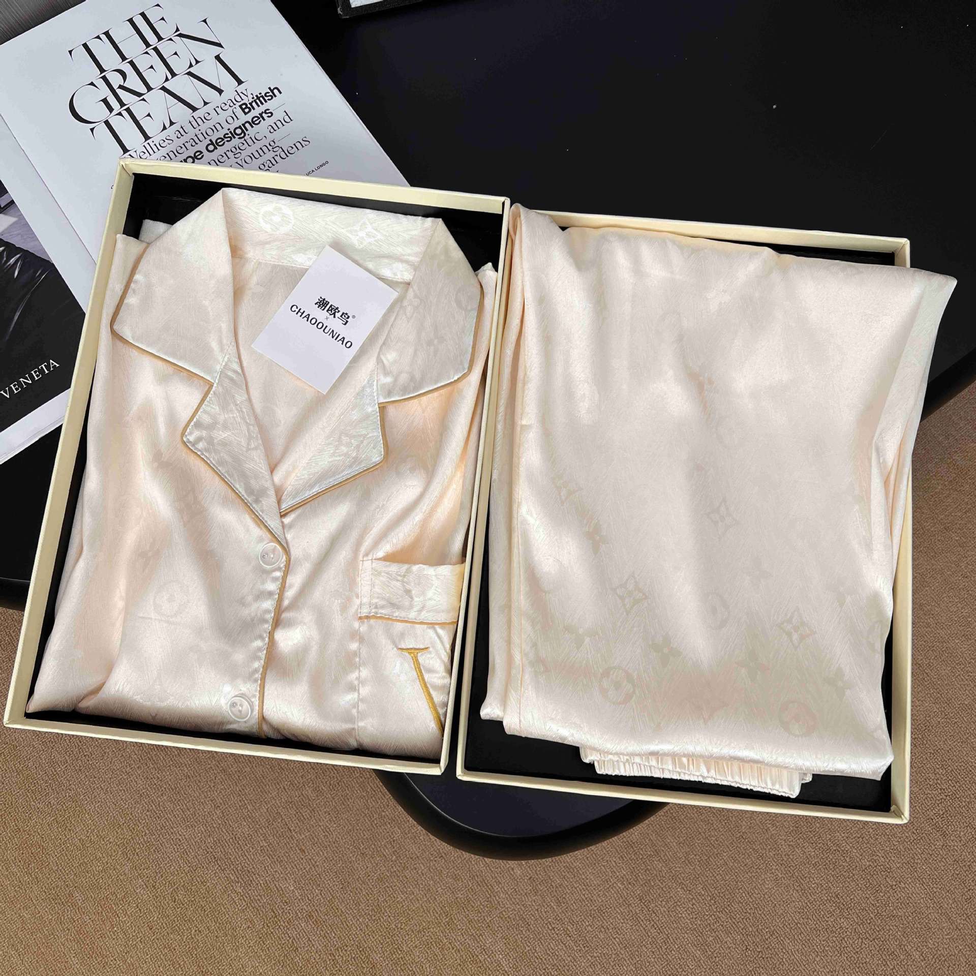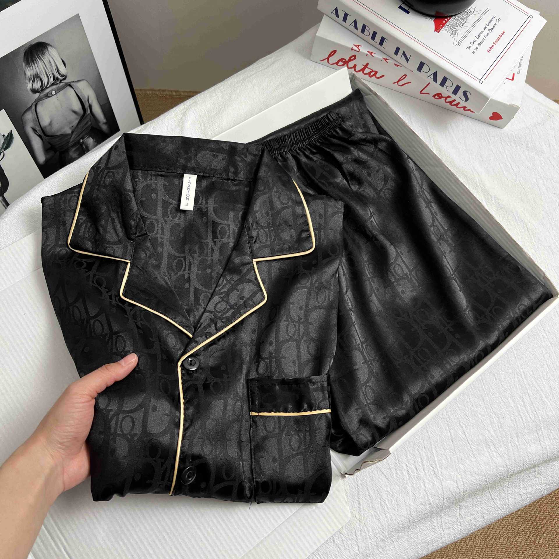 하이 엔드 봄과 여름 자카드 실크 파자마 남성용 카디건 긴팔 바지 라이트 럭셔리 홈 의류 세트스토어 가기