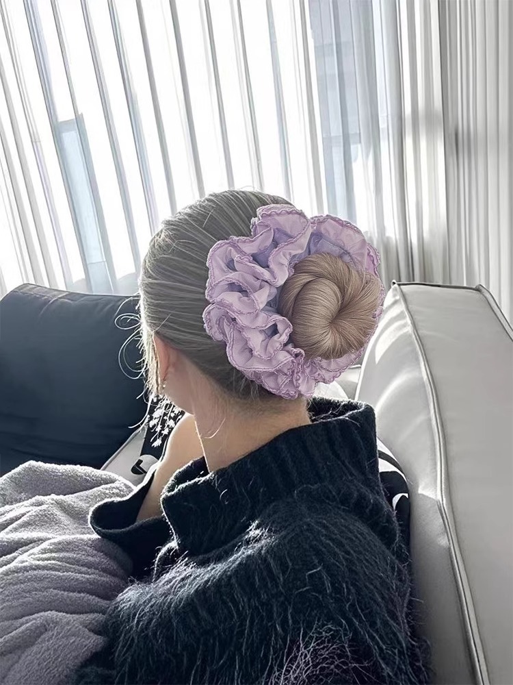 프랑스 중공업 보라색 주름 대형 직감 헤어 링 레트로 하이 엔드 느낌 우아한 헤어 로프 2025 여성을위한 새로운 헤어 액세서리스토어 가기