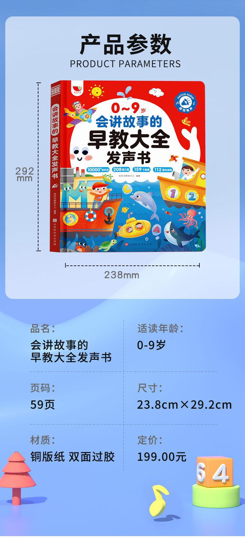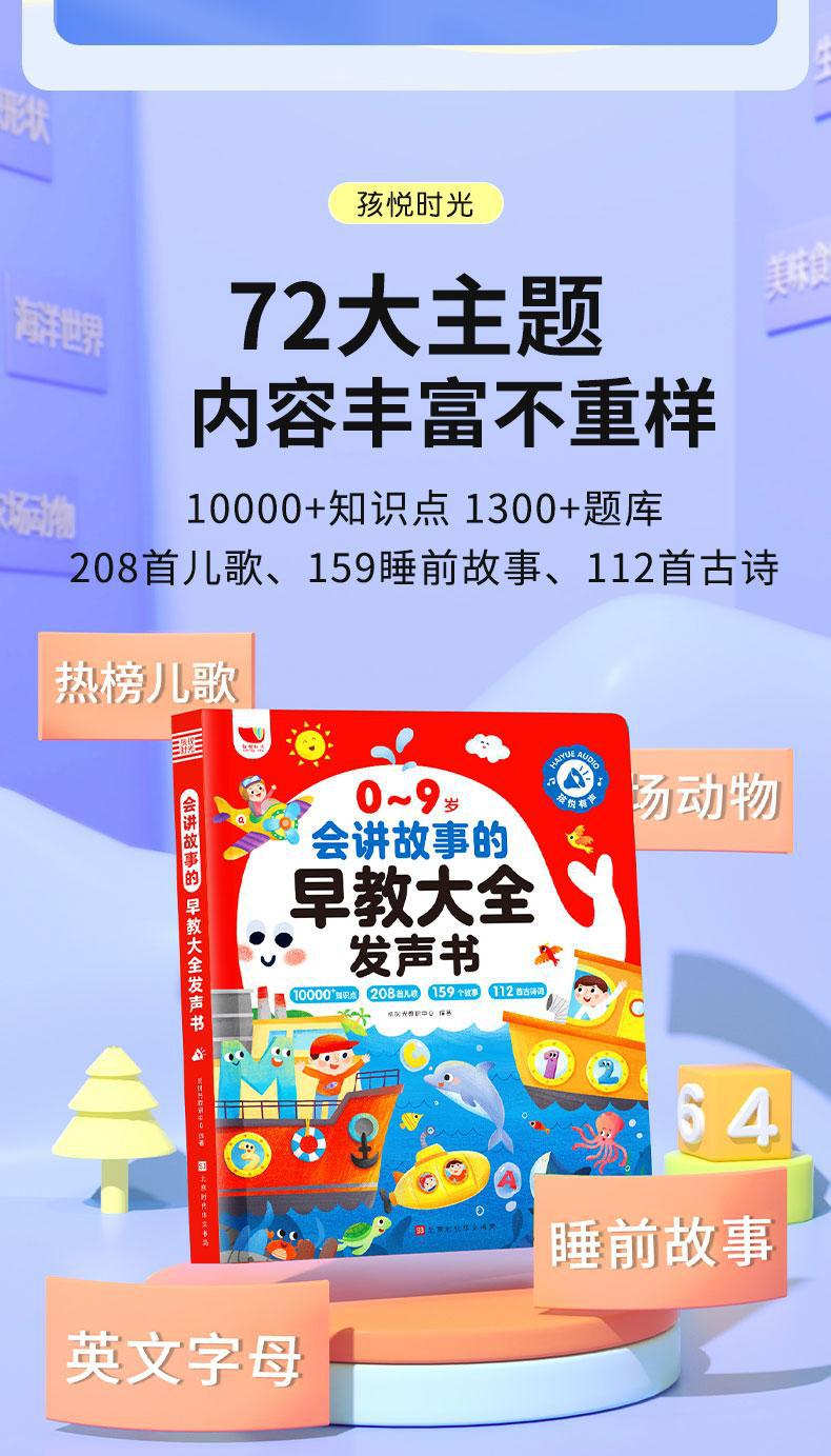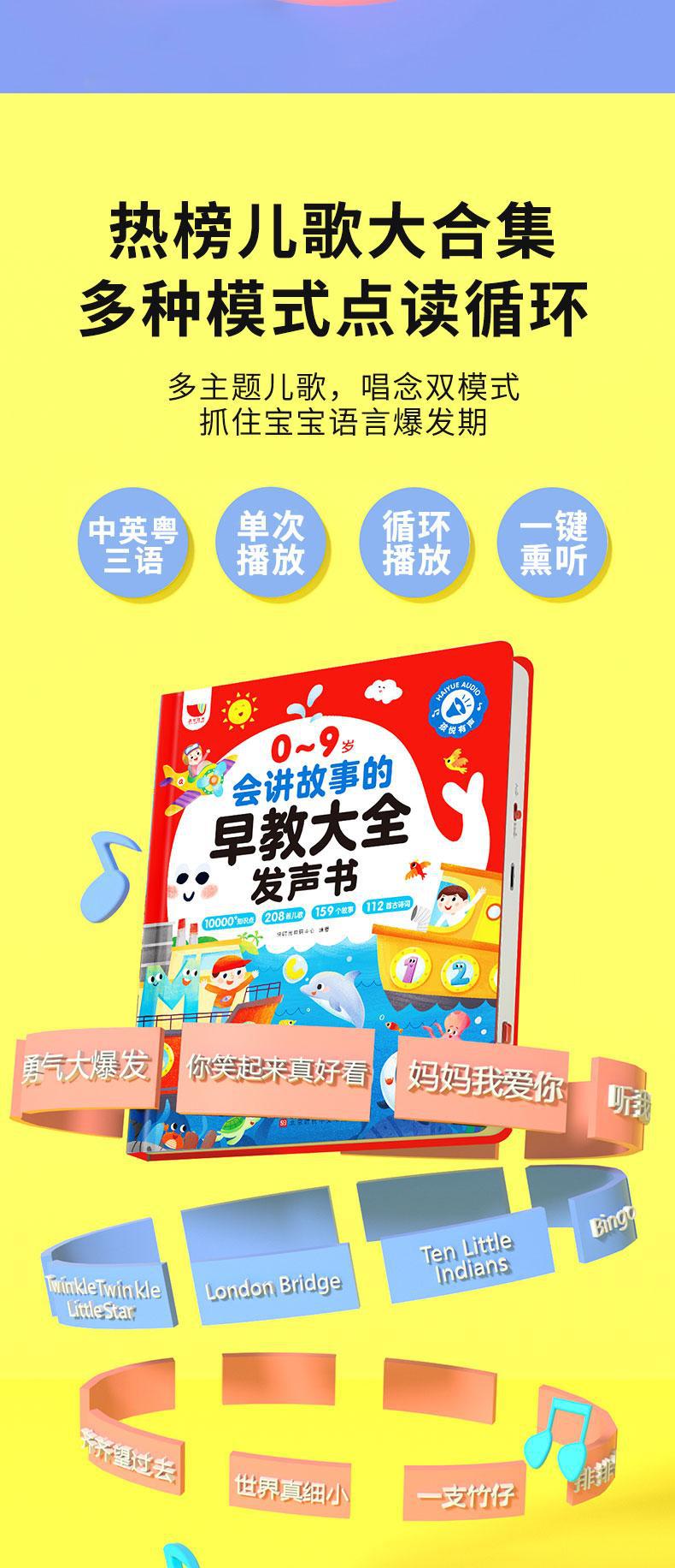 0-9 세, 어린이 노래 208 개, 이야기 159 개, 고대시 112 개, 이야기를 전하는 유아 교육의 완전한 책.
