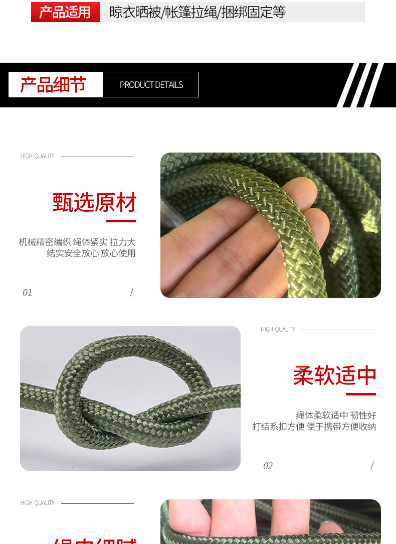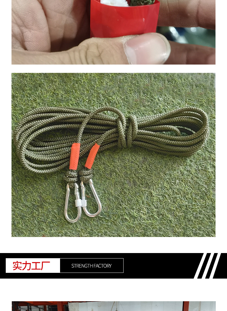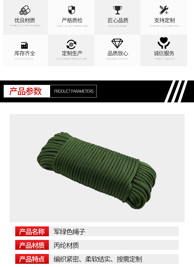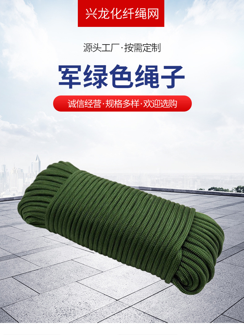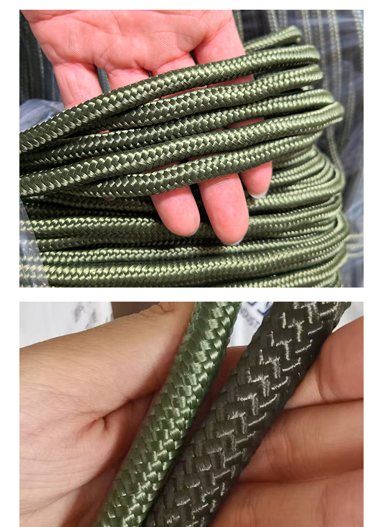 육군 녹색 로프 흰색 코어 나일론 로프 땋은 육군 녹색 폴리프로필렌 로프 텐트 방풍 번들 나일론 로프