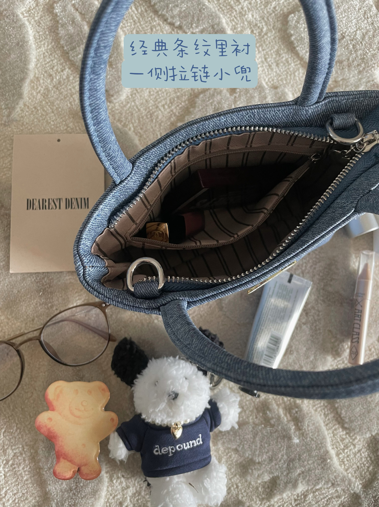 도매 모방 데님 작은 핸드백! 봄과 여름 2025 새로운 한국 Ins 틈새 올 매치 어깨 핸드 크로스 바디 백스토어 가기